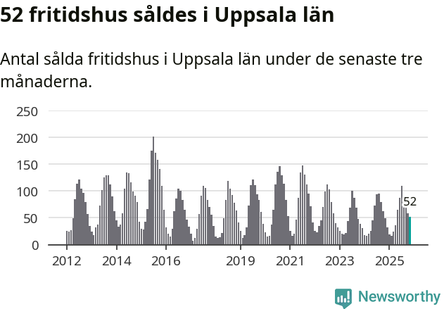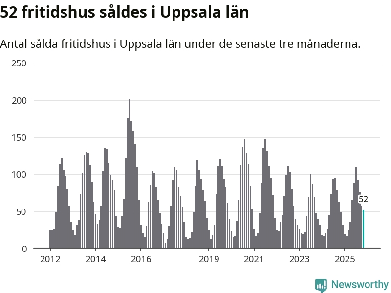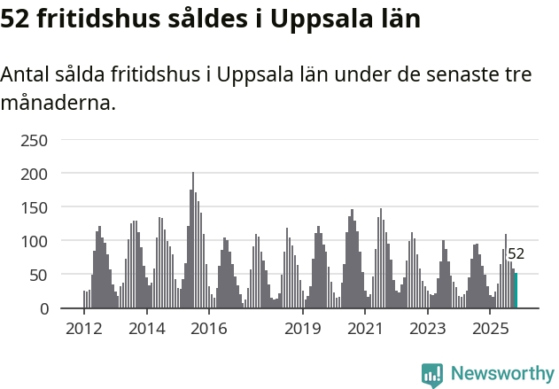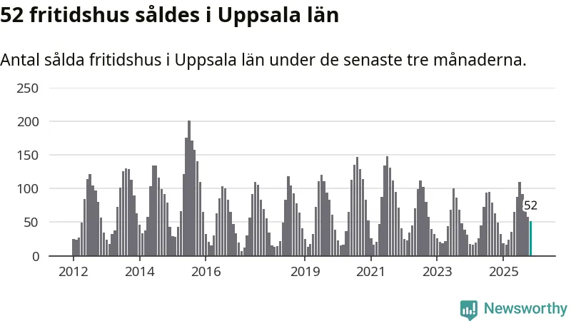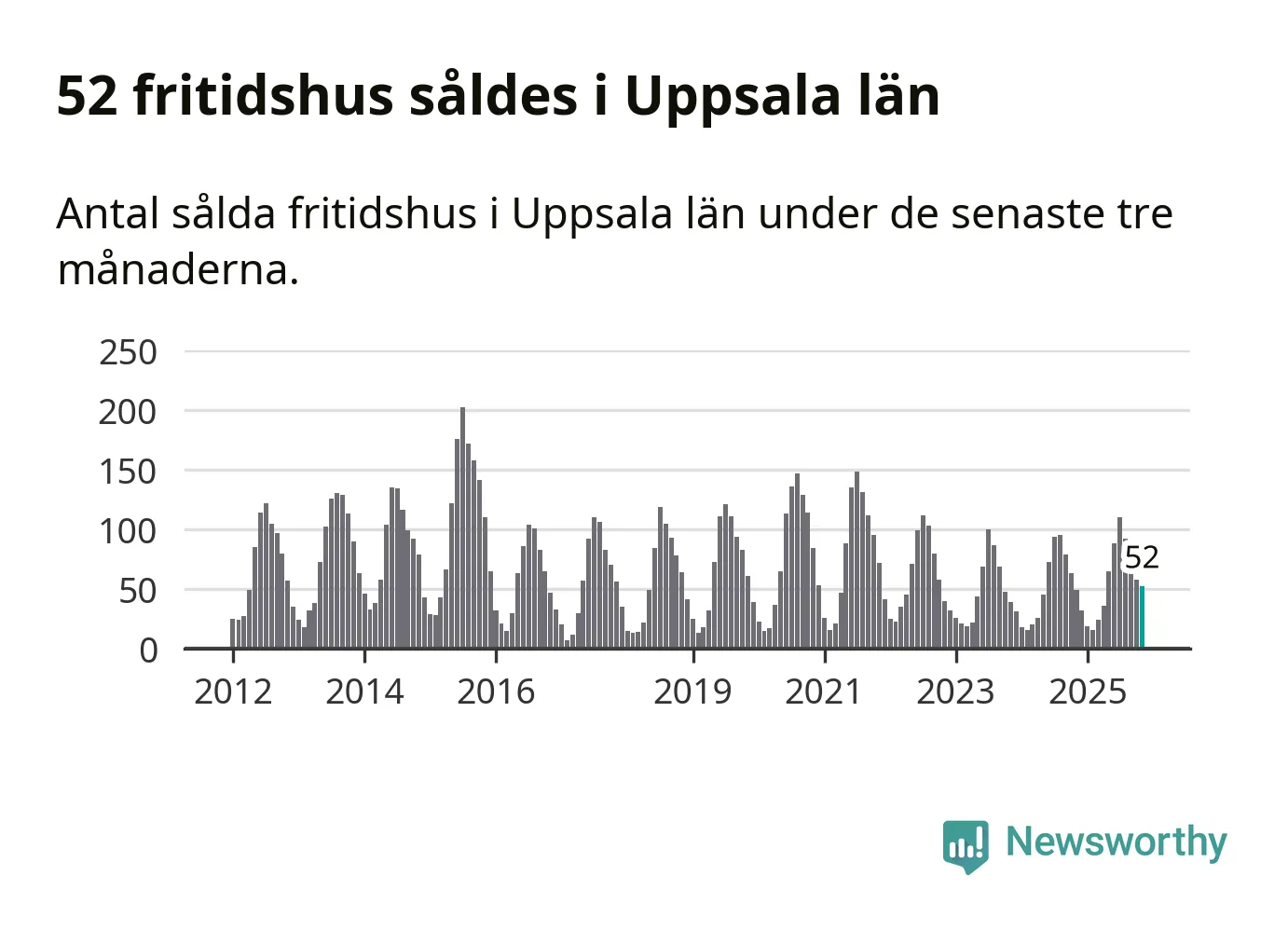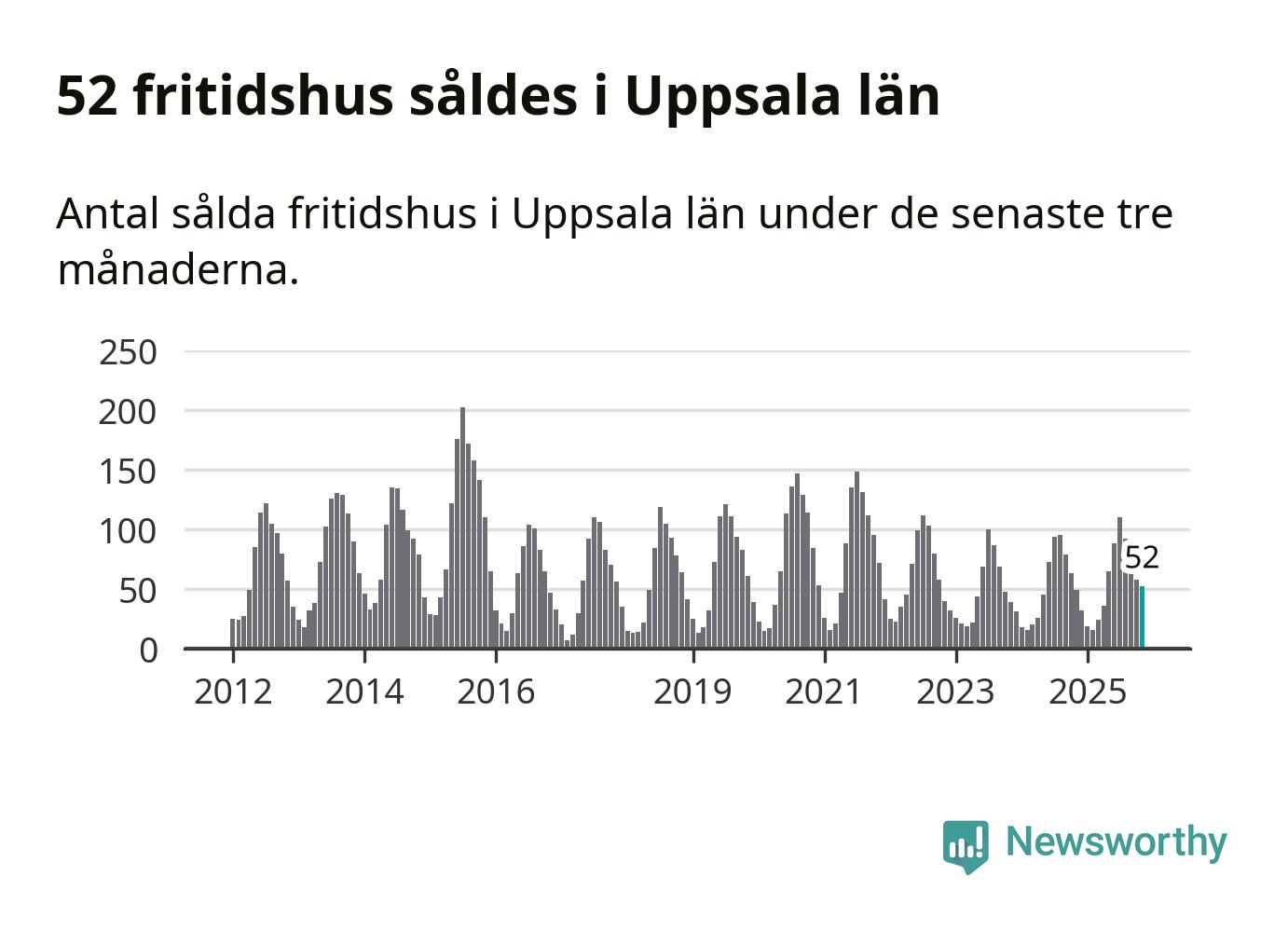 Sammanlagt såldes 52 fritidshus i Uppsala län mellan september och november till ett genomsnittligt pris på 1,8 miljoner kronor. I fjol gjordes 49 affärer vid den här tiden på året.