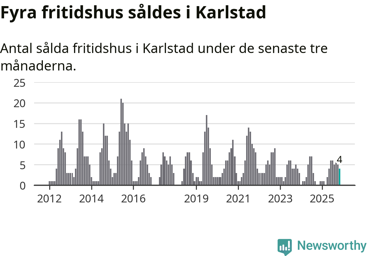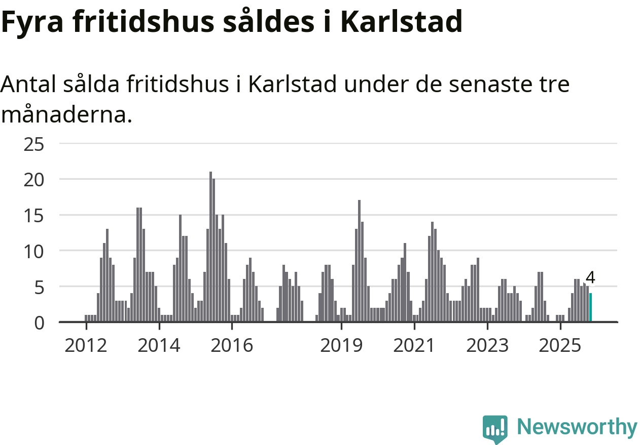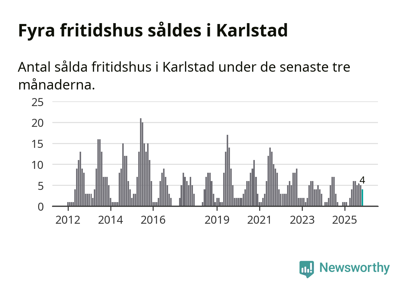 Mellan september och november gjordes sammanlagt fyra affärer med fritidshus i Karlstads kommun.