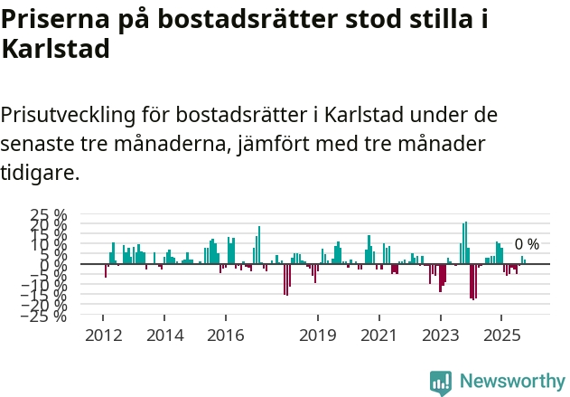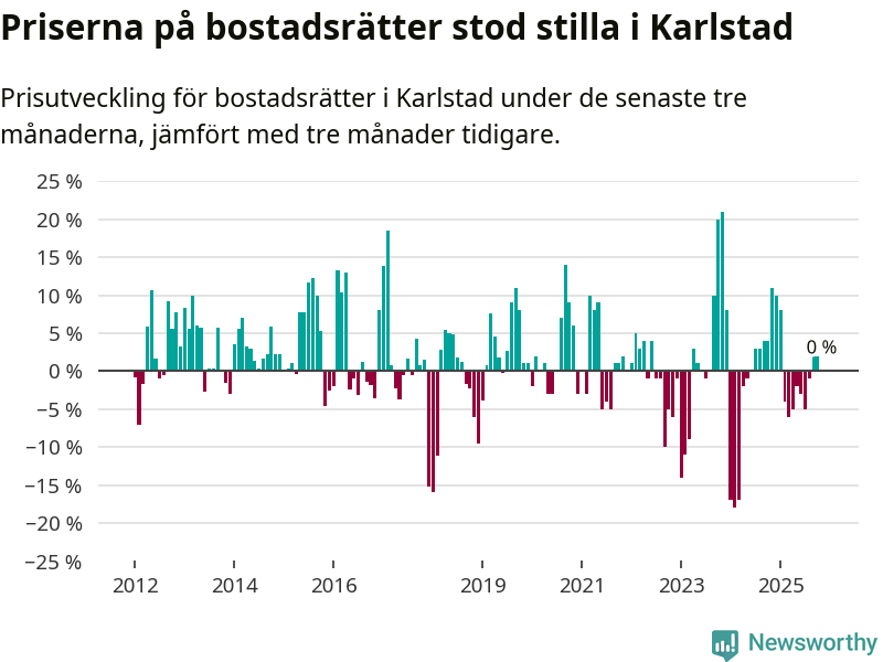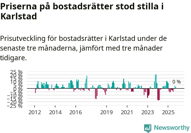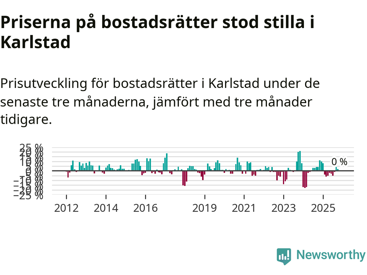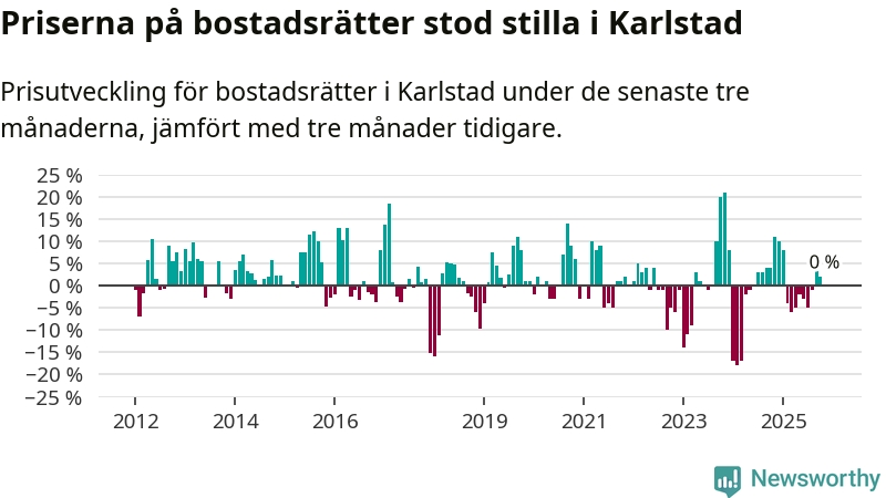 I hela Värmland däremot sjunker priserna på bostadsrätter. I hela länet noterades en prisnedgång på 1 procent.