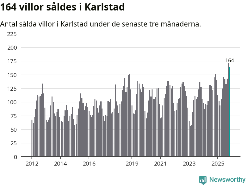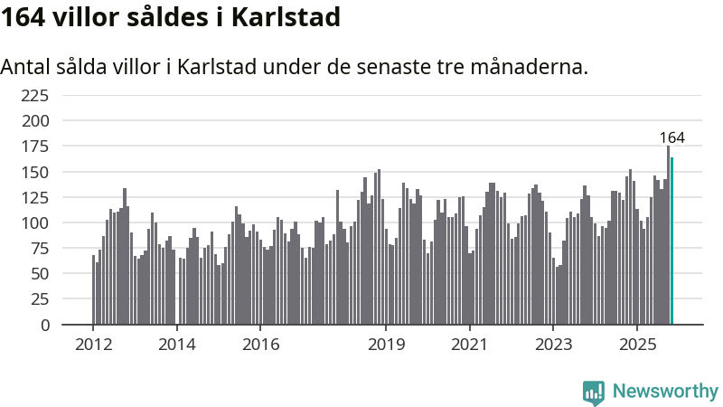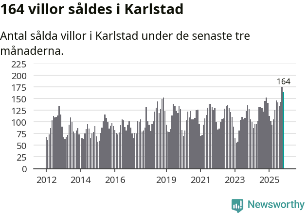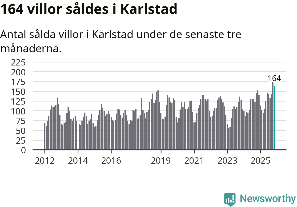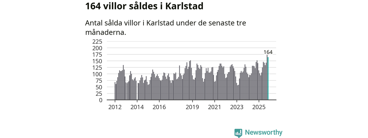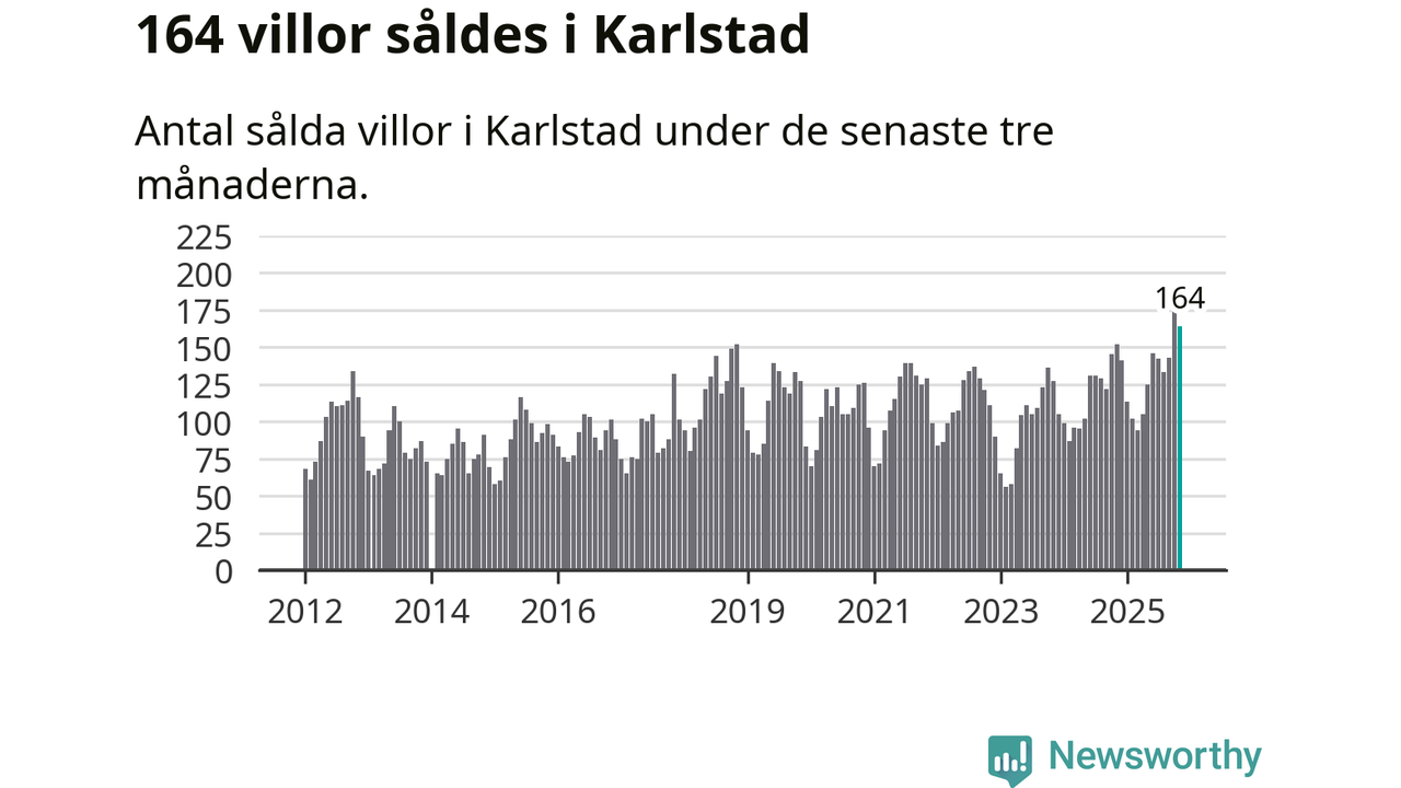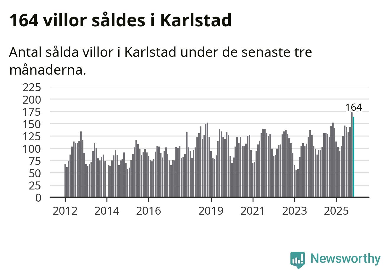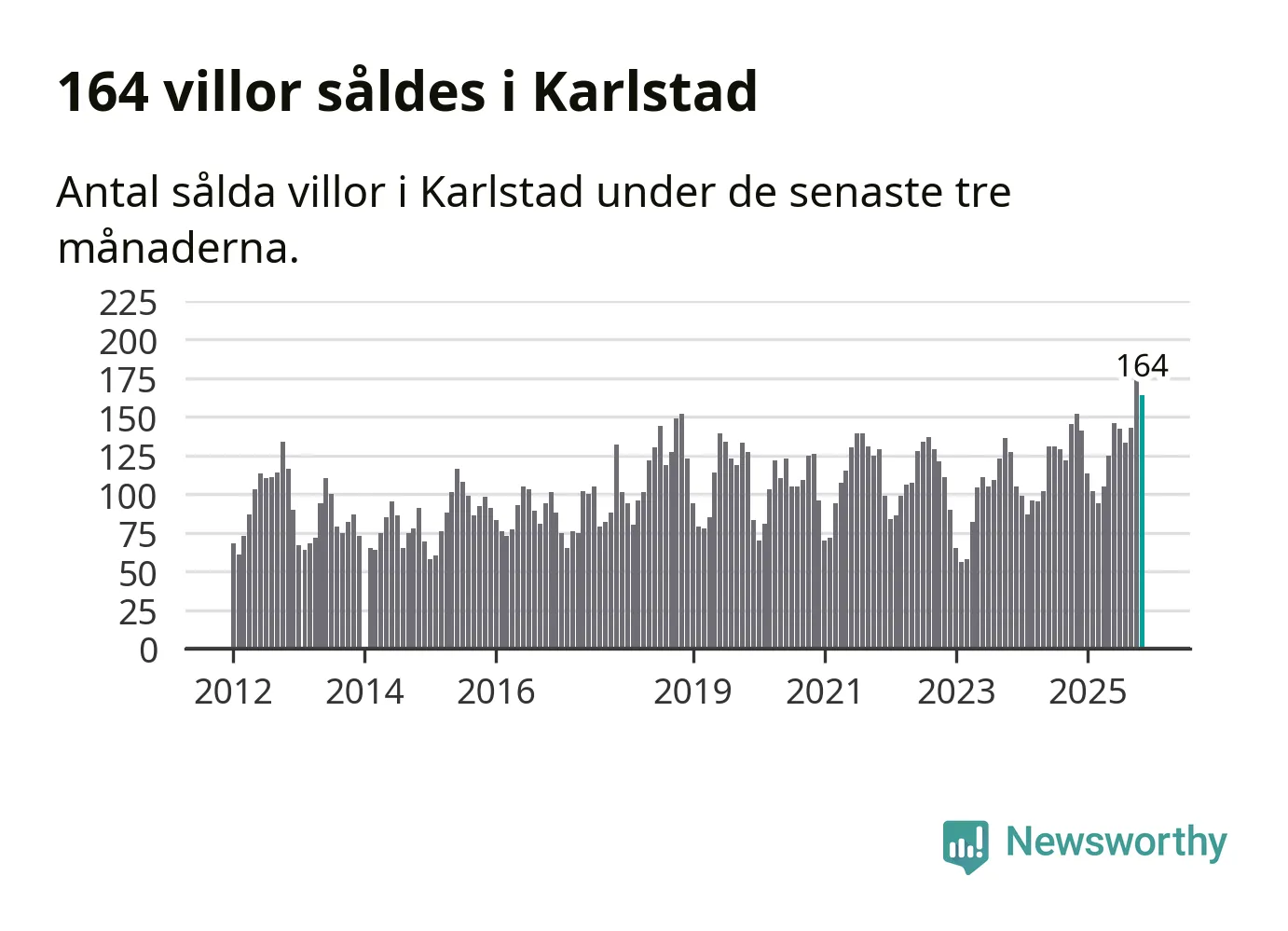 Sammanlagt såldes 164 villor i Karlstads kommun mellan september och november till ett genomsnittligt pris på 3,6 miljoner kronor. I fjol gjordes 152 affärer vid den här tiden på året.