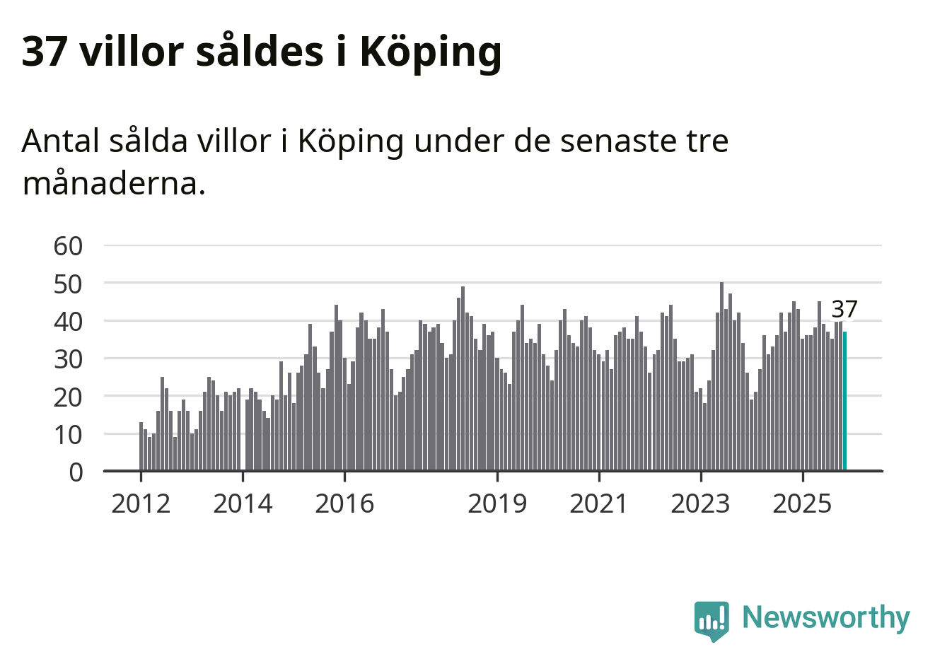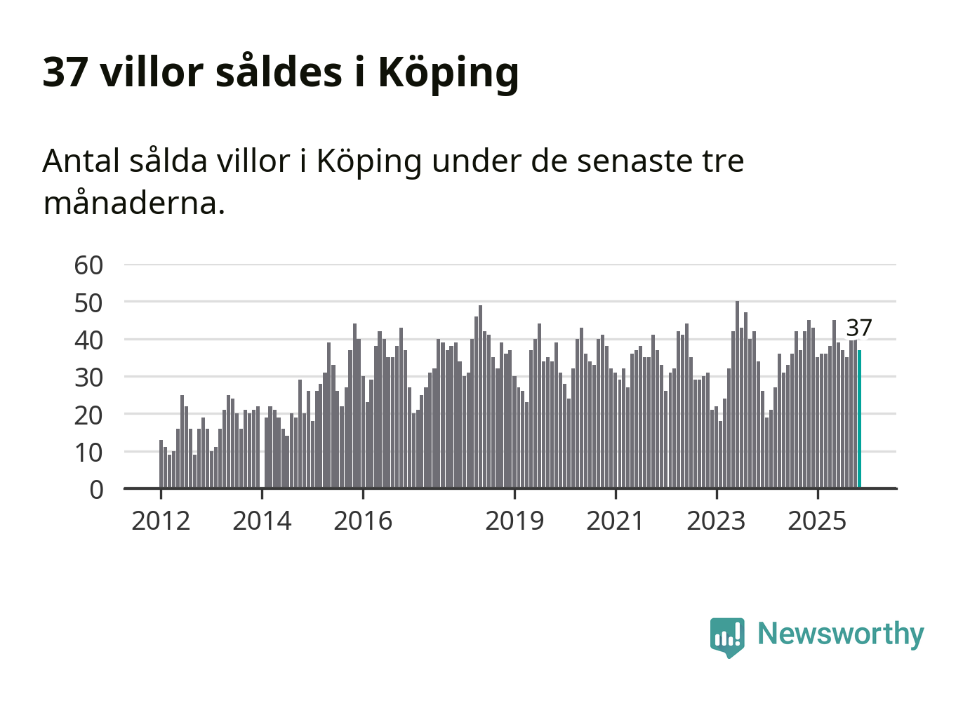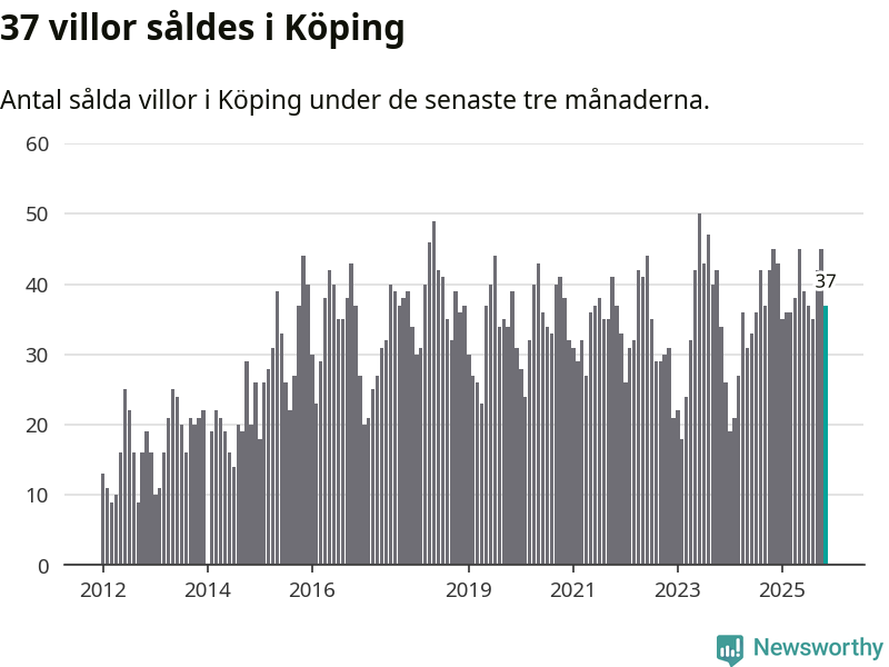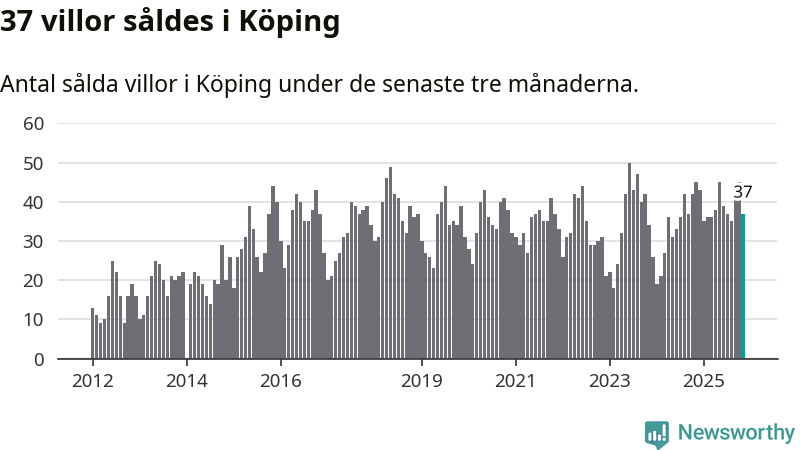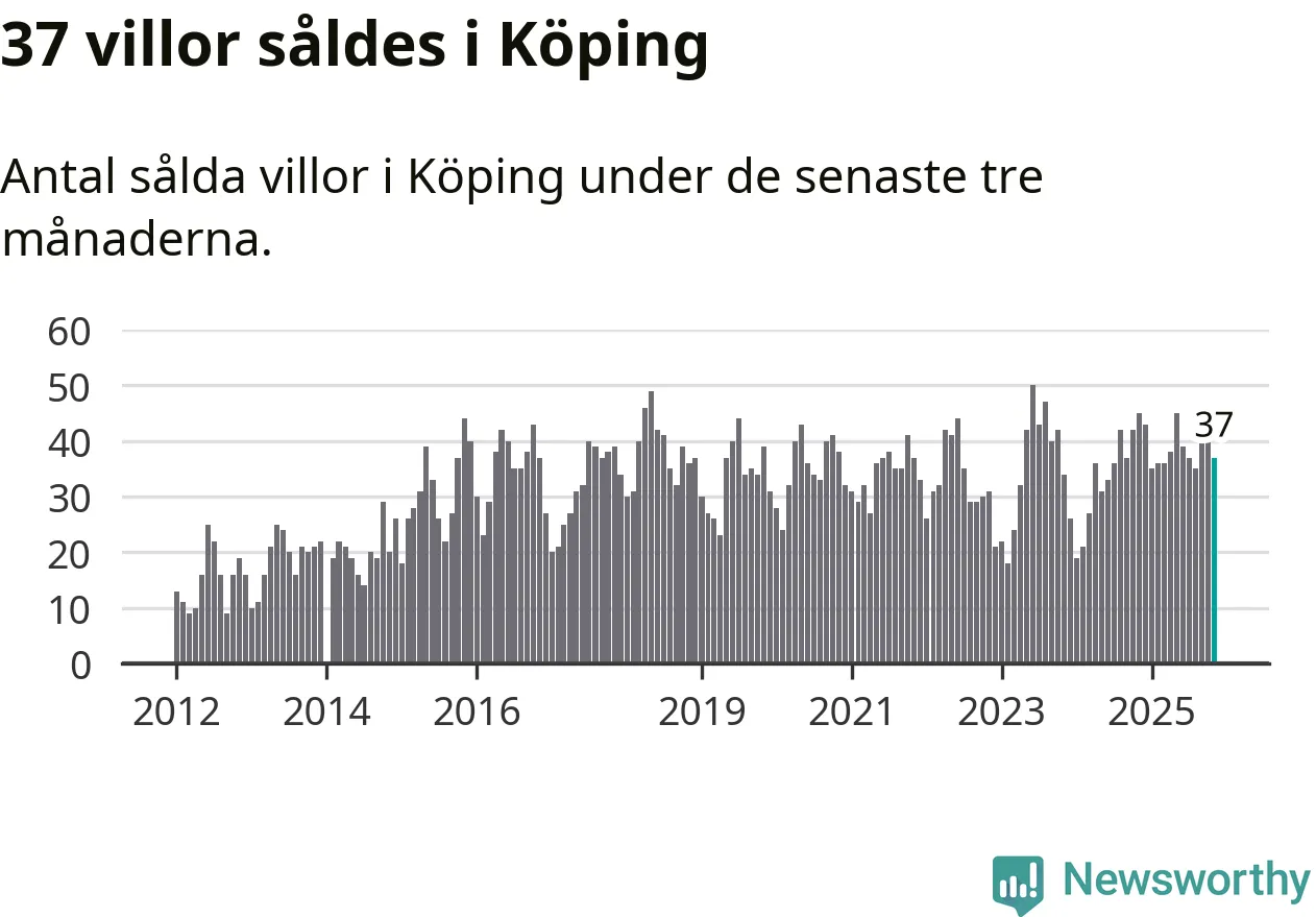 Graf: Antal sålda villor i Köpings kommun