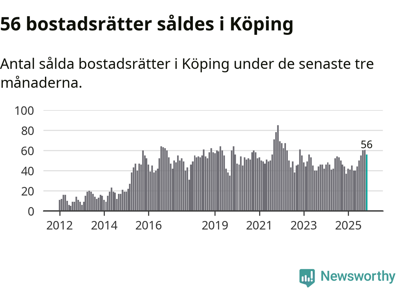 Graf: Antal sålda bostadsrätter i Köpings kommun