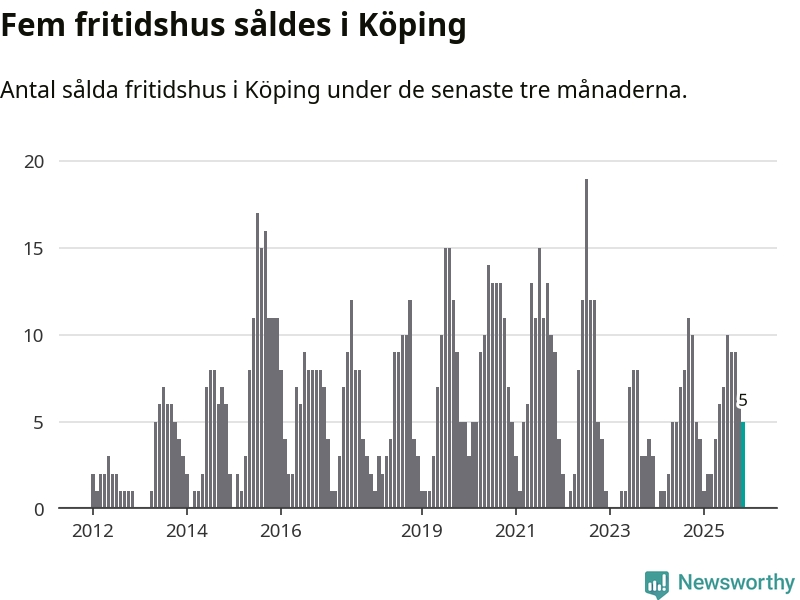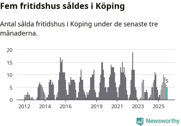 Mellan september och november gjordes sammanlagt fem affärer med fritidshus i Köpings kommun. Det är lika många affärer som vid motsvarande tid i fjol.