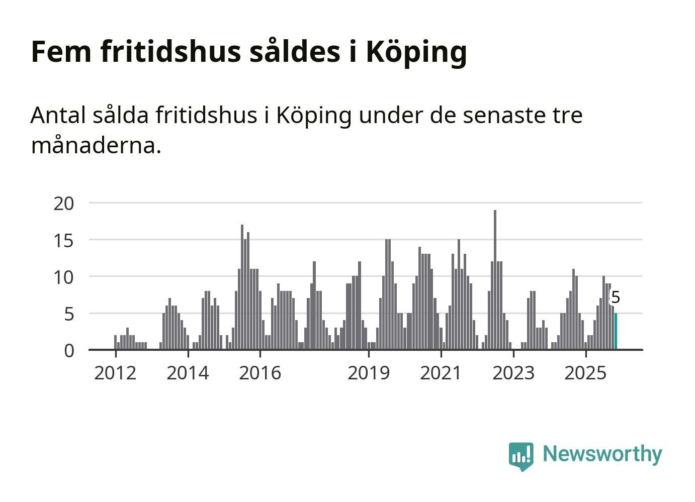 Graf: Antal sålda fritidshus i Köpings kommun