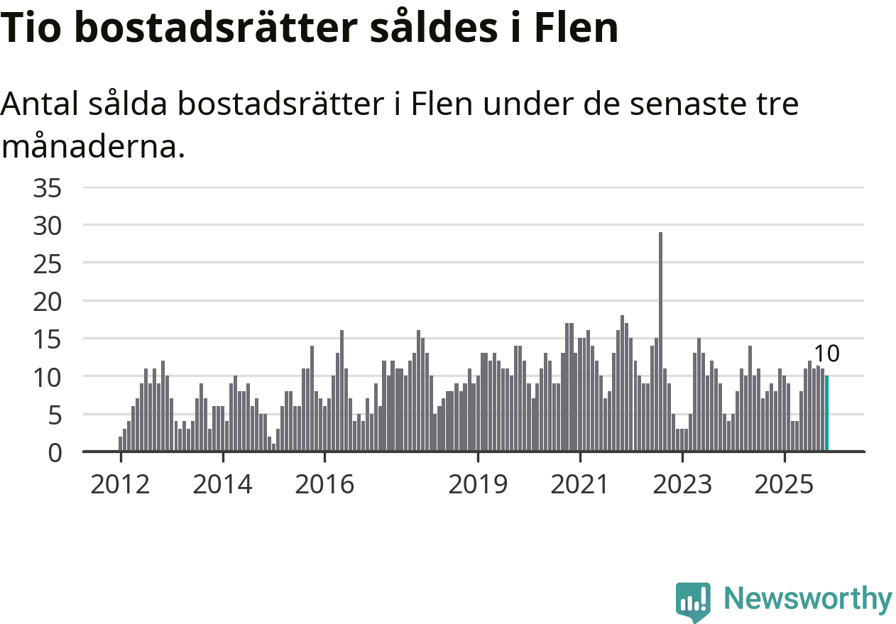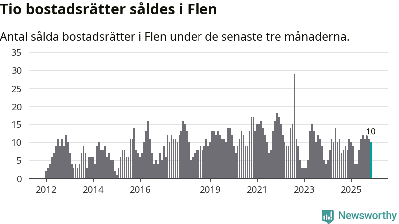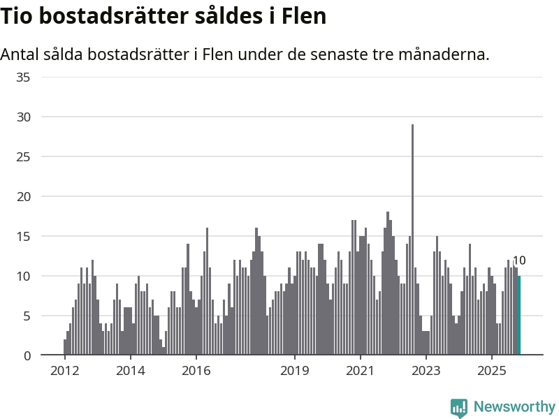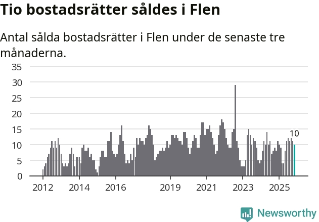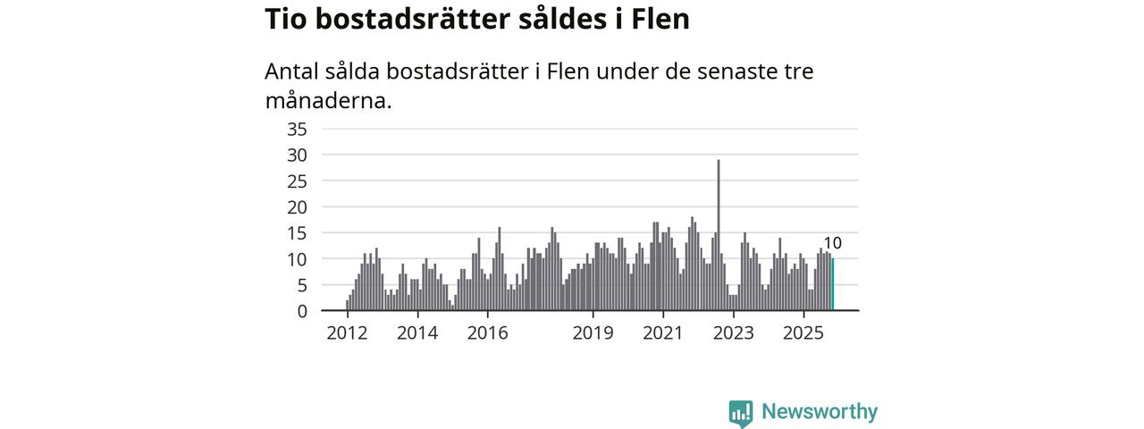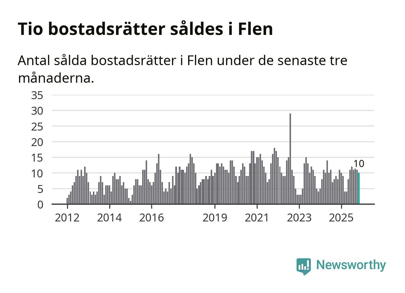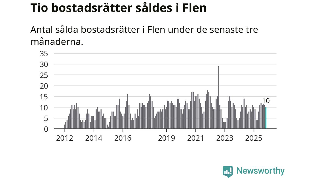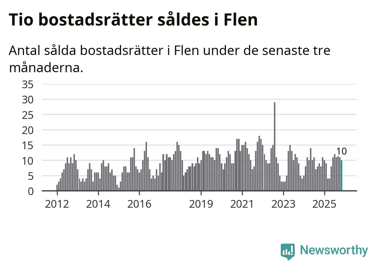 Mellan september och november gjordes sammanlagt tio affärer med bostadsrätter i Flens kommun. Det kan jämföras med åtta vid motsvarande tid i fjol.