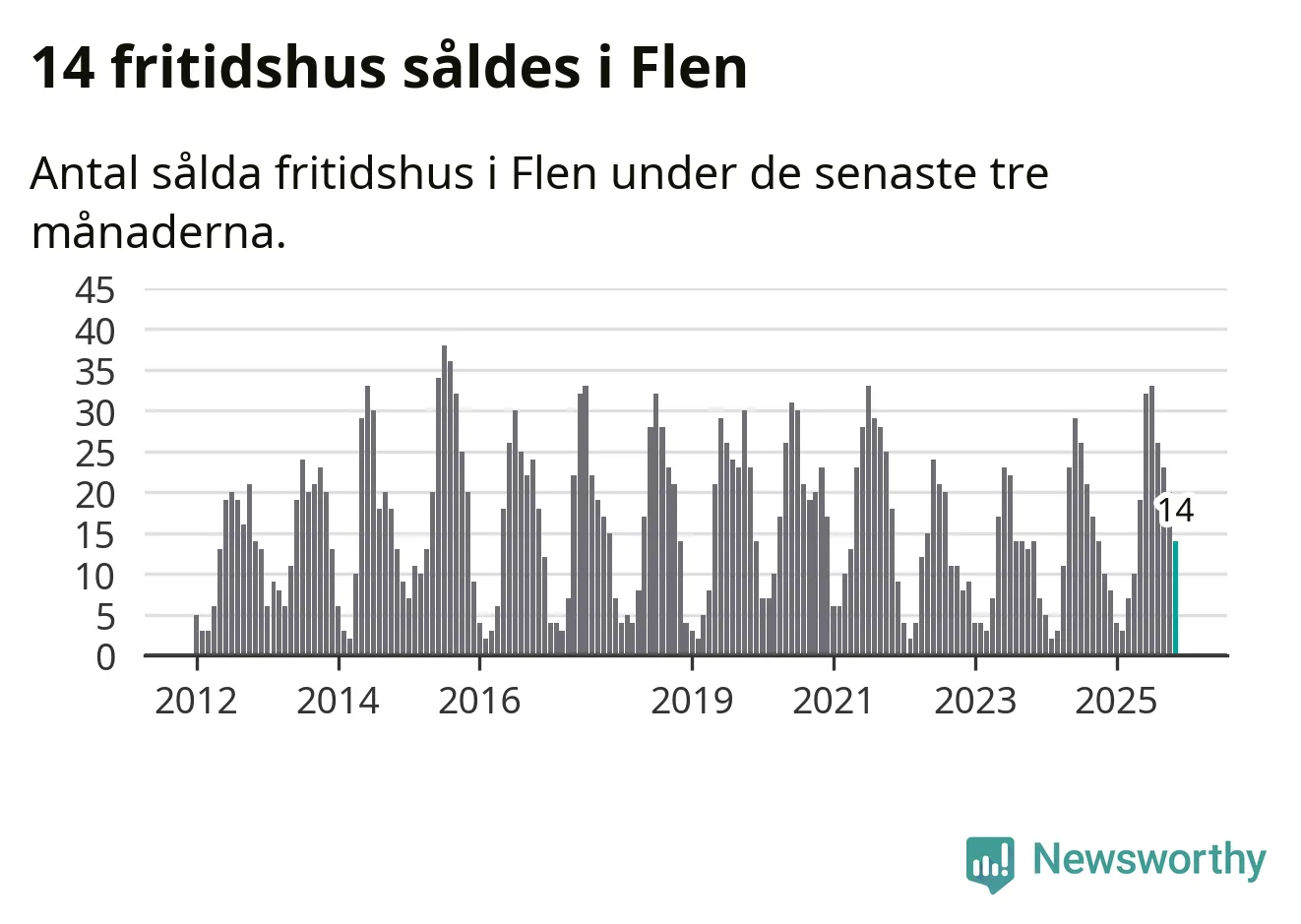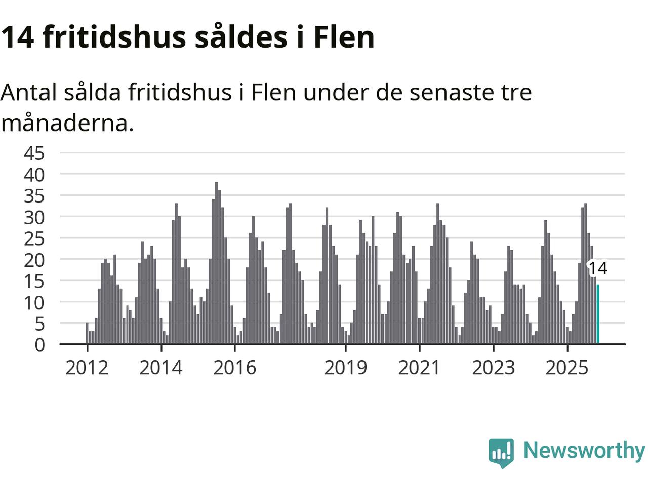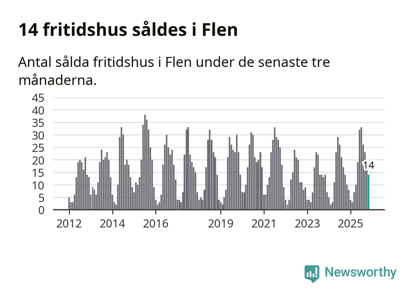 Sammanlagt såldes 14 fritidshus i Flens kommun mellan september och november till ett genomsnittligt pris på 2,1 miljoner kronor. I fjol gjordes tio affärer vid den här tiden på året.