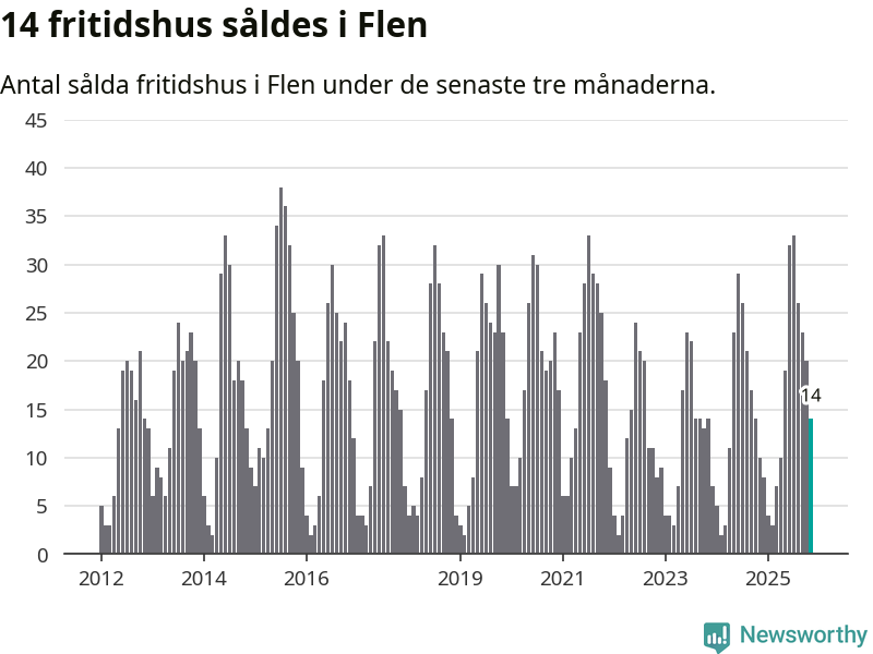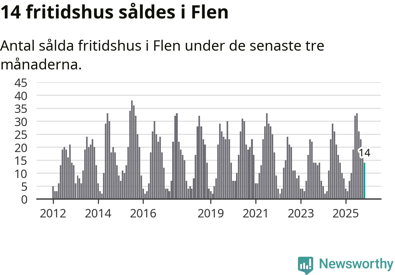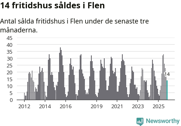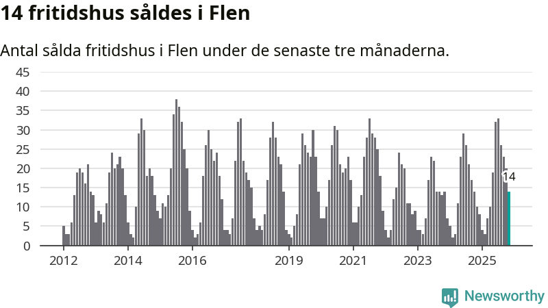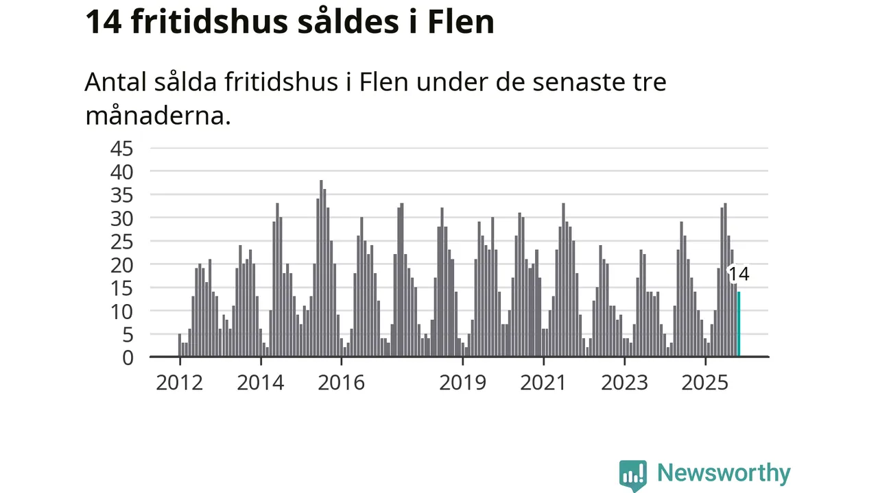 Sammanlagt såldes 14 fritidshus i Flens kommun mellan september och november till ett genomsnittligt pris på 2,1 miljoner kronor. I fjol gjordes tio affärer vid den här tiden på året.