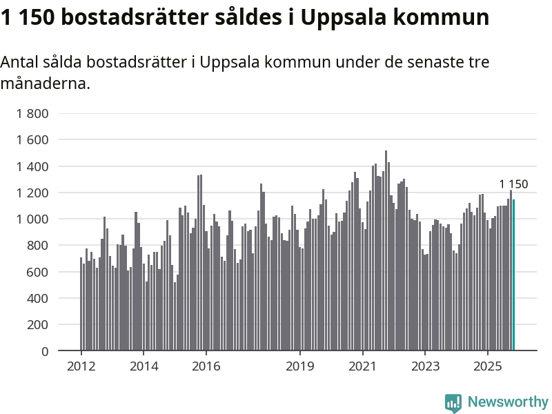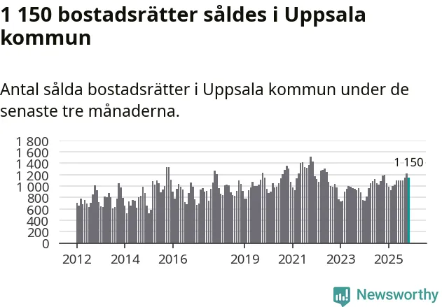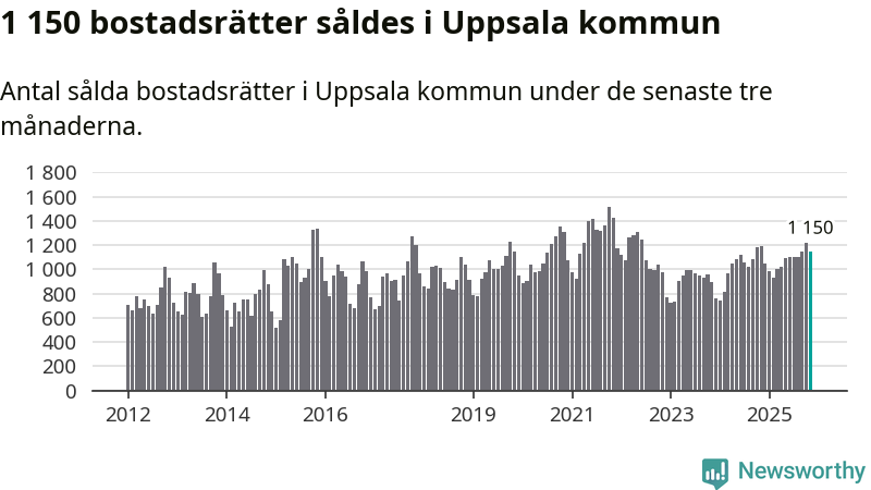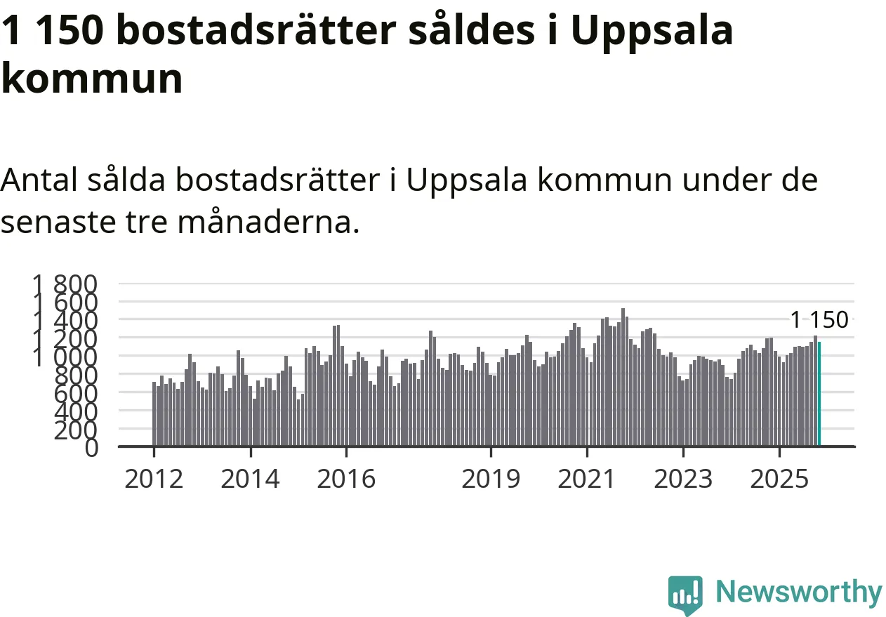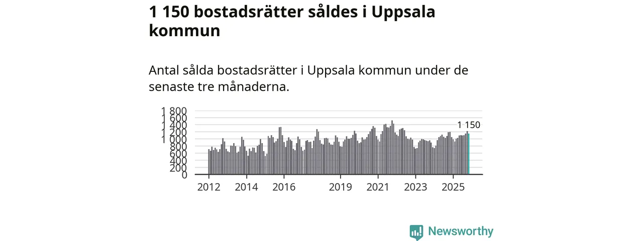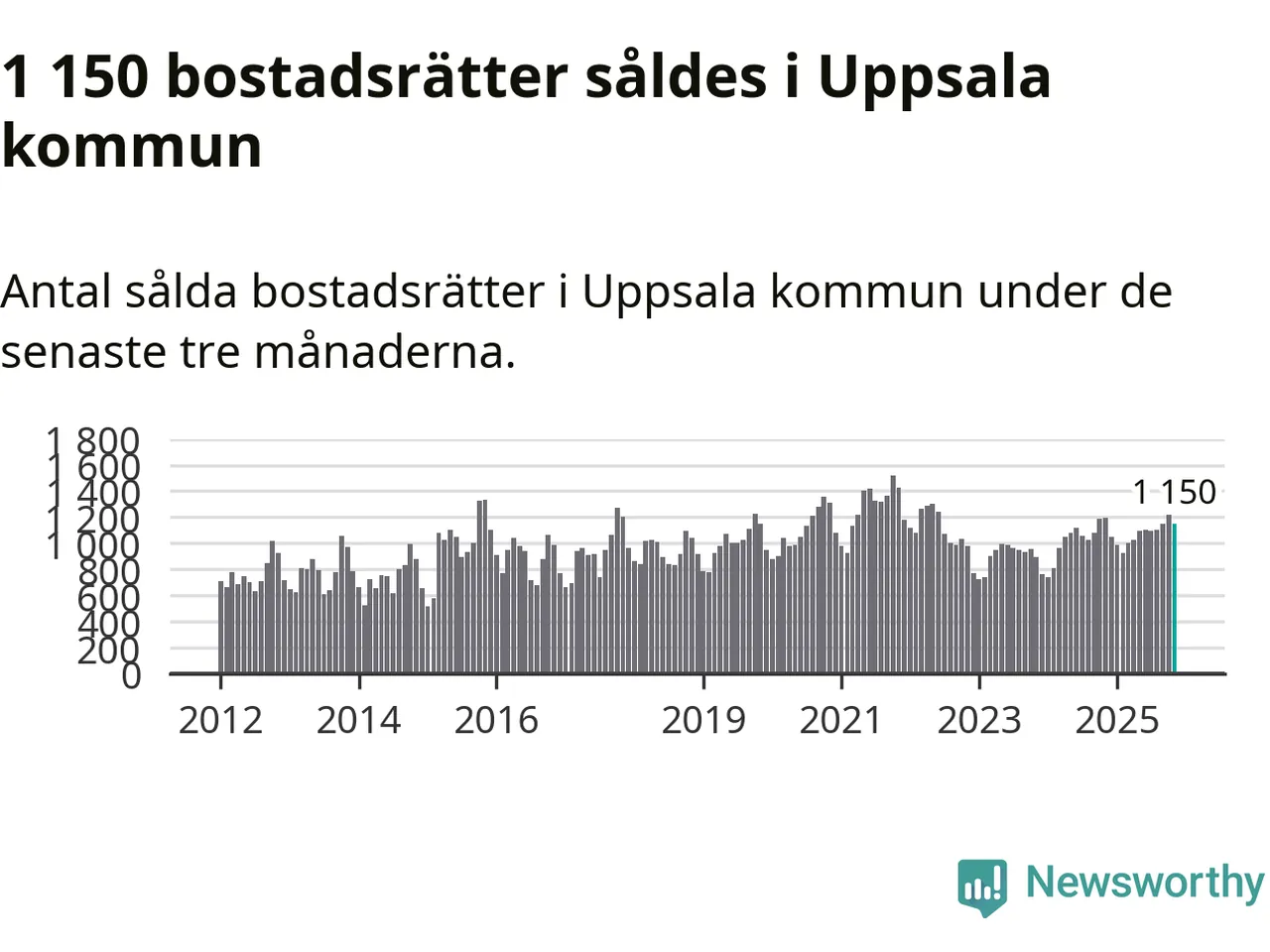 Sammanlagt såldes 1 150 bostadsrätter i Uppsala kommun mellan september och november till ett genomsnittligt pris på 2,7 miljoner kronor. I fjol gjordes 1 192 affärer vid den här tiden på året.