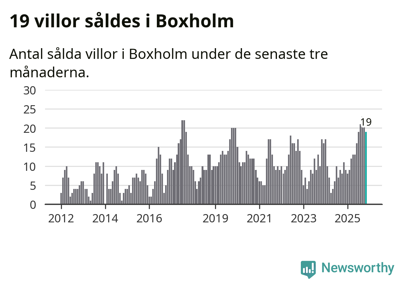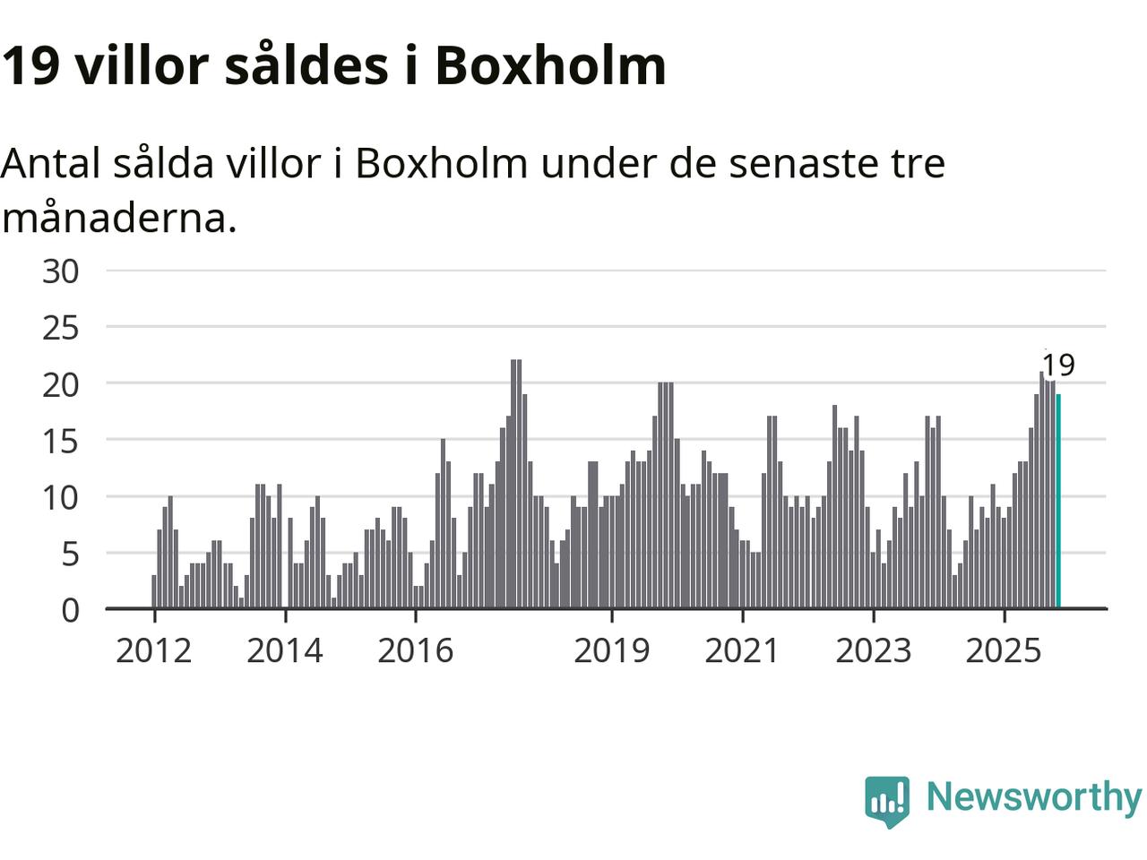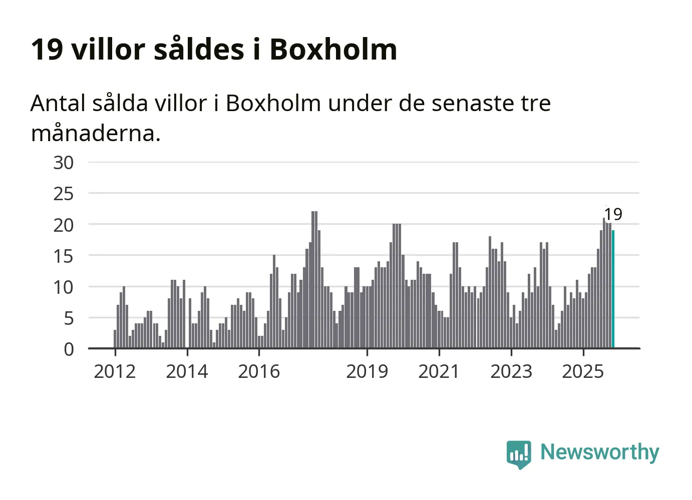 Mellan september och november gjordes sammanlagt 19 affärer med villor i Boxholms kommun. Det kan jämföras med elva vid motsvarande tid i fjol.