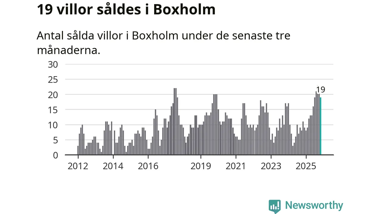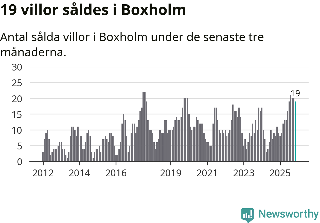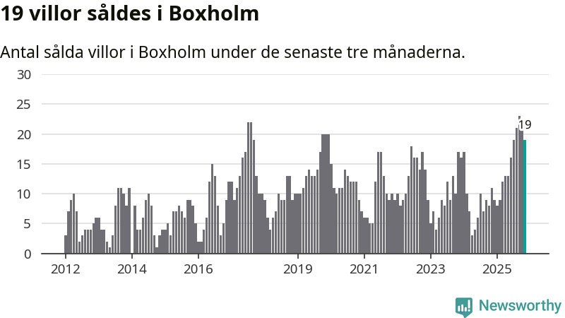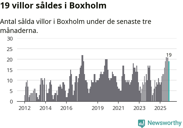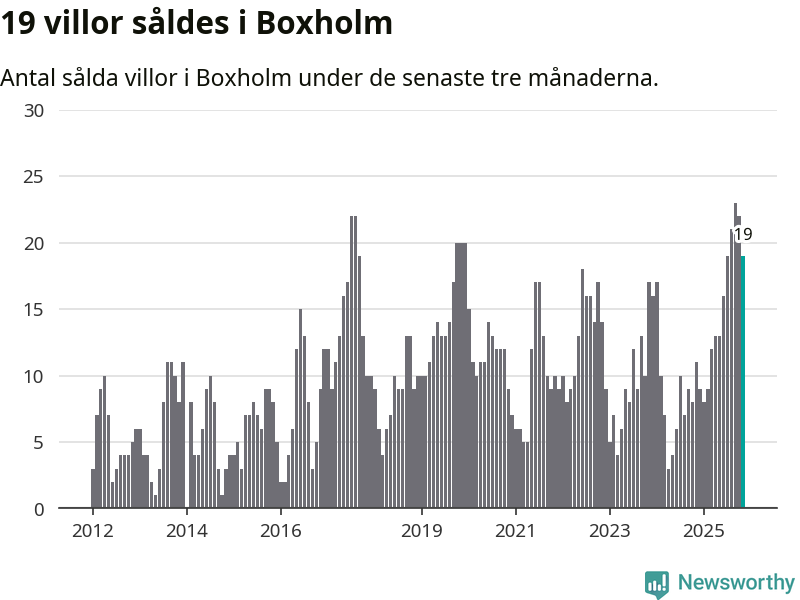Mellan september och november gjordes sammanlagt 19 affärer med villor i Boxholms kommun. Det kan jämföras med elva vid motsvarande tid i fjol.