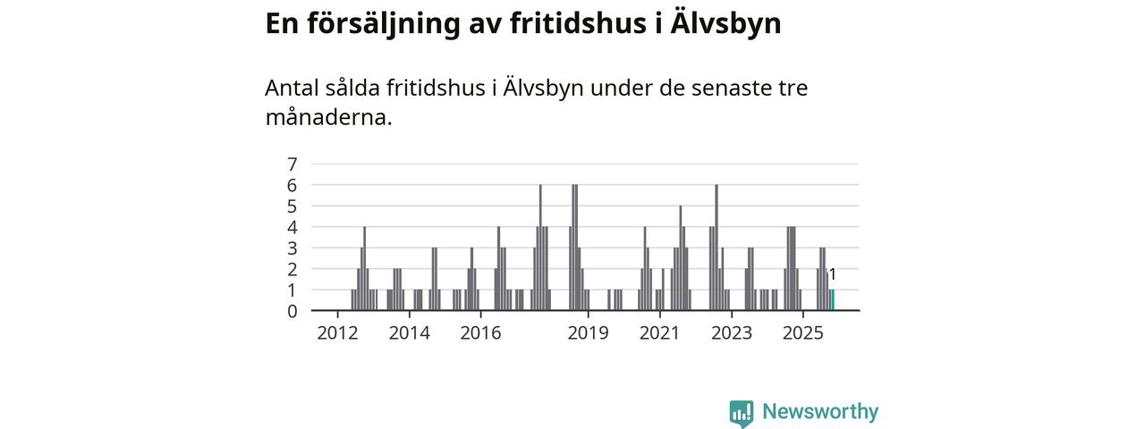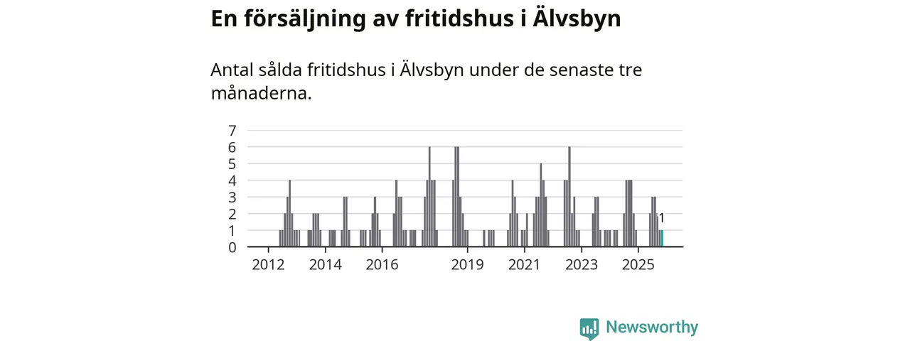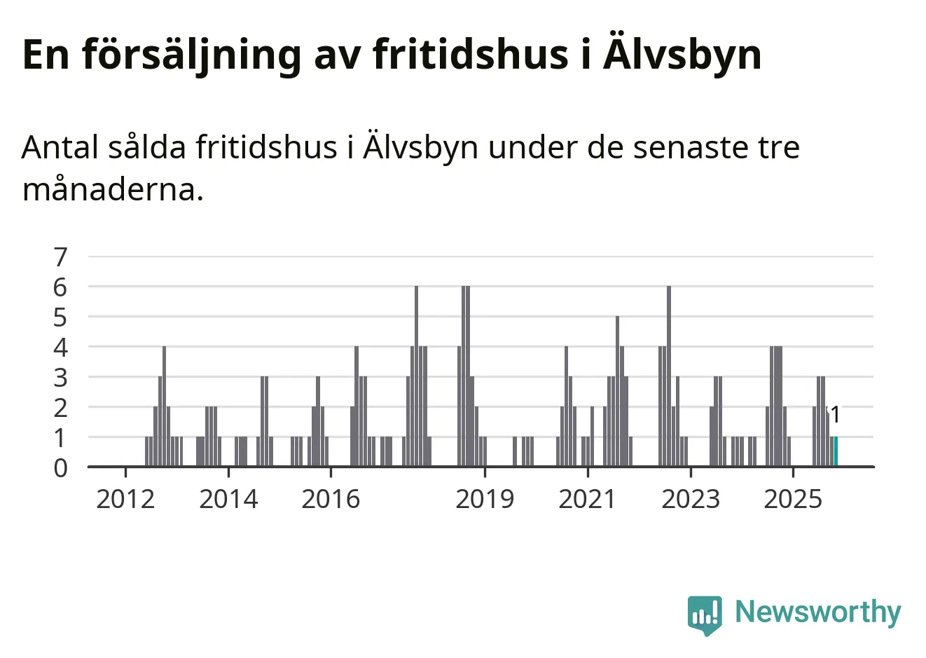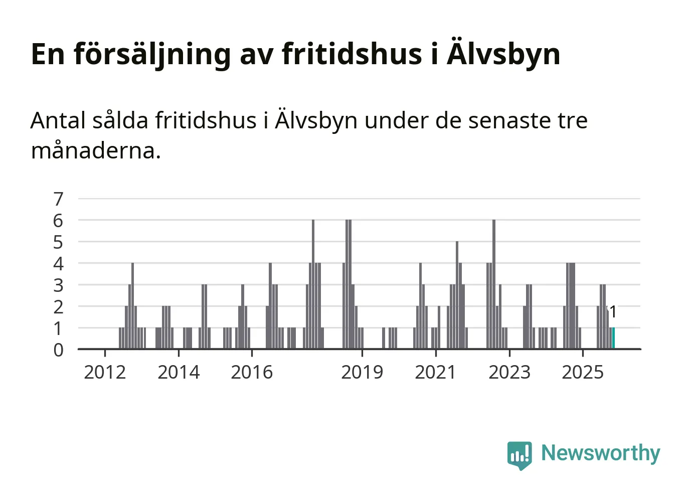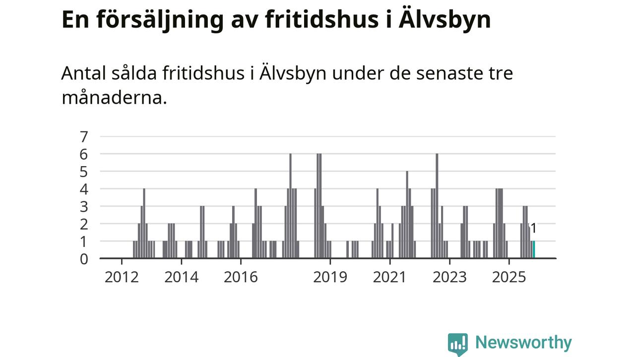 Mellan september och november gjordes sammanlagt en affär med fritidshus i Älvsbyns kommun. Det kan jämföras med två vid motsvarande tid i fjol.
