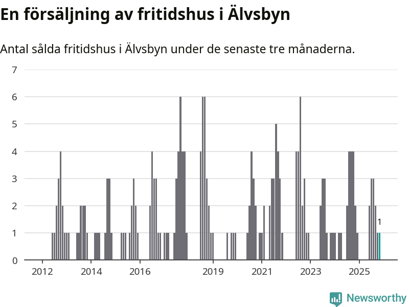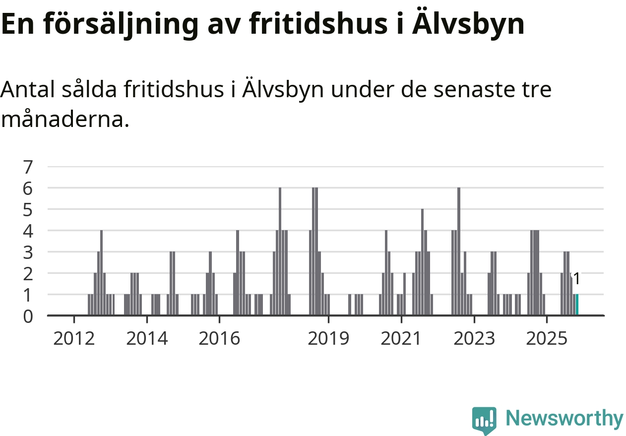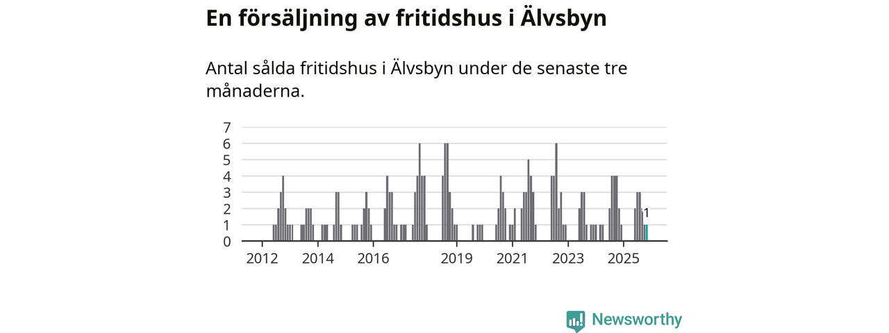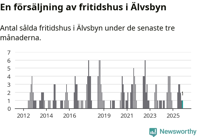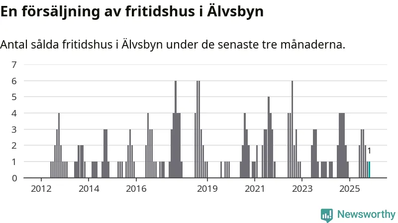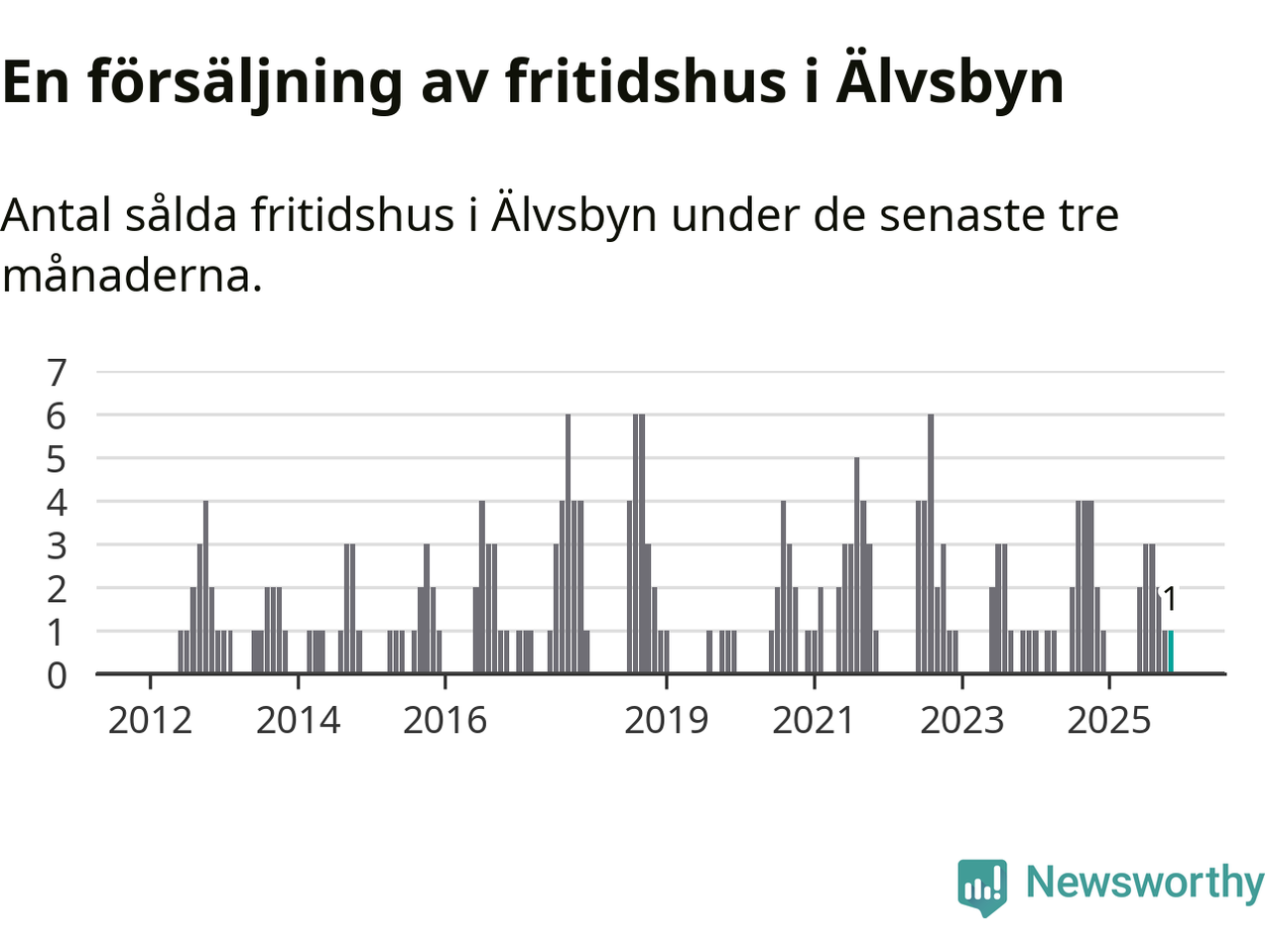 Mellan september och november gjordes sammanlagt en affär med fritidshus i Älvsbyns kommun. Det kan jämföras med två vid motsvarande tid i fjol.