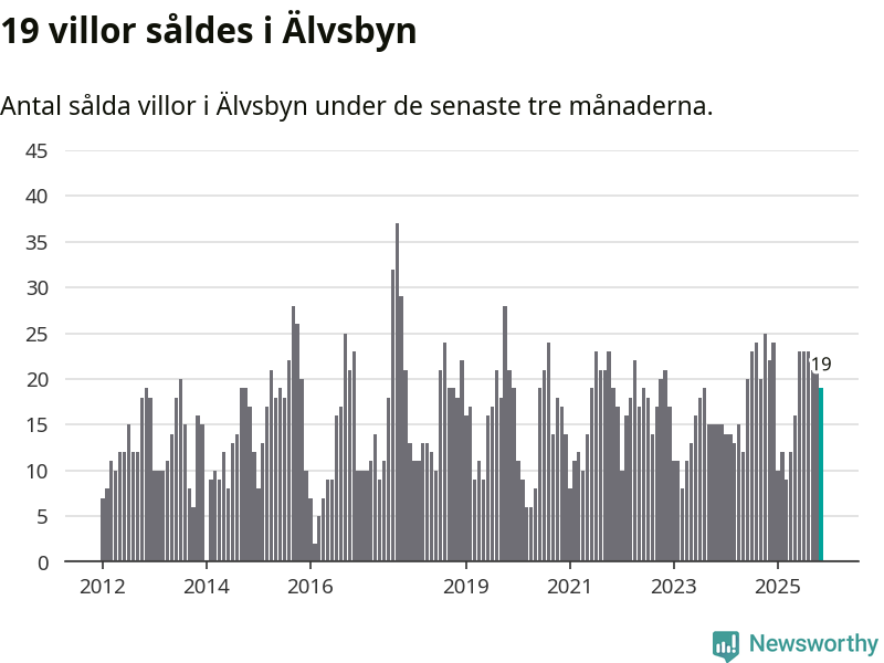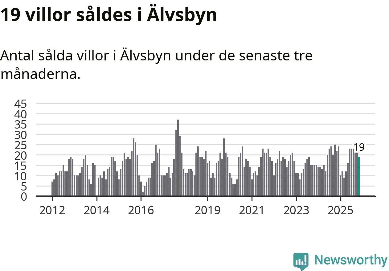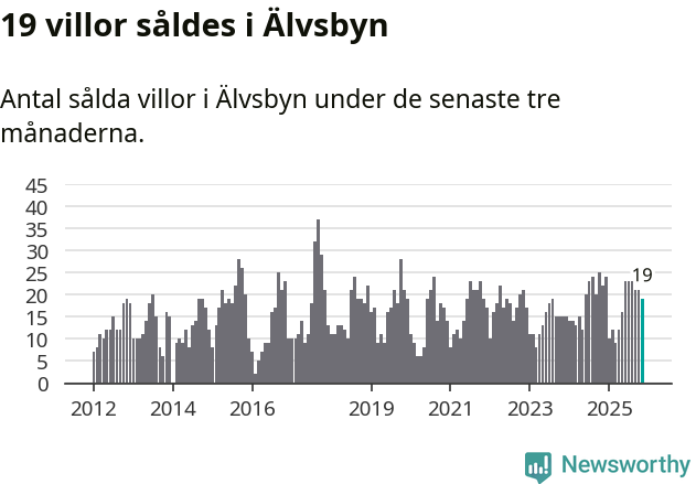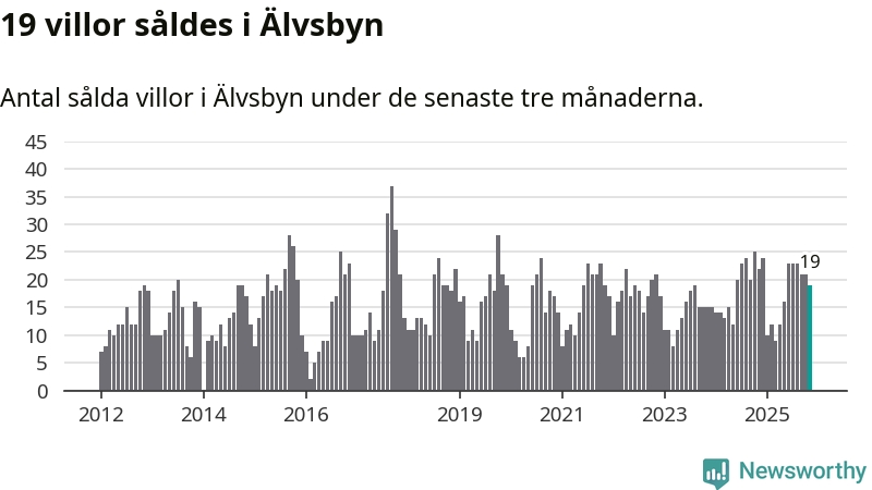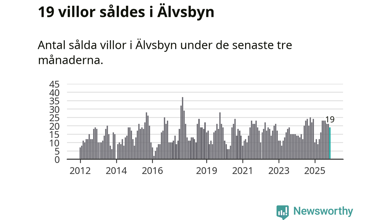 Mellan september och november gjordes sammanlagt 19 affärer med villor i Älvsbyns kommun. Det kan jämföras med 22 vid motsvarande tid i fjol.