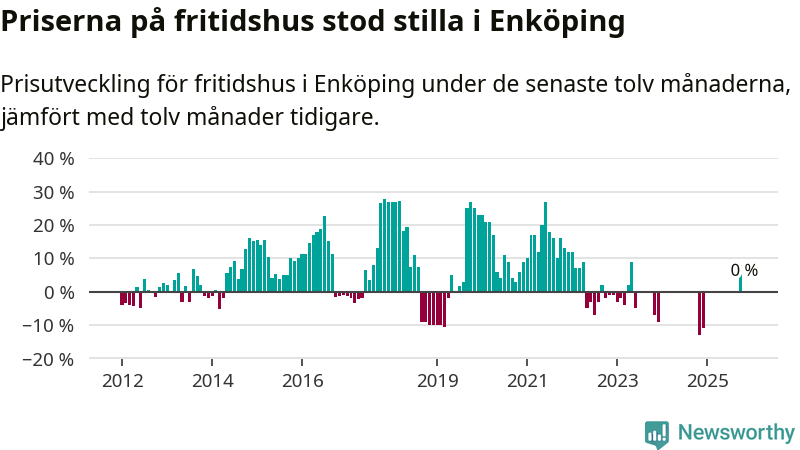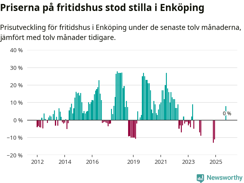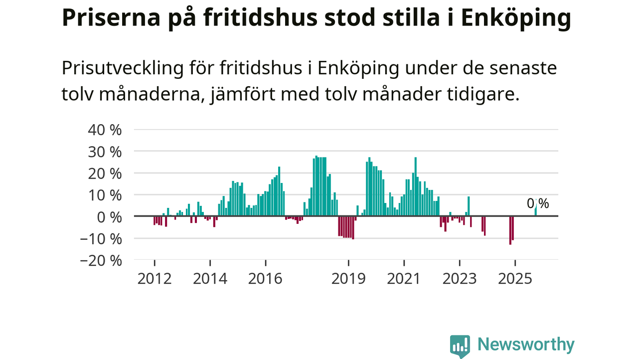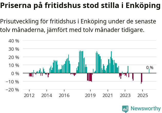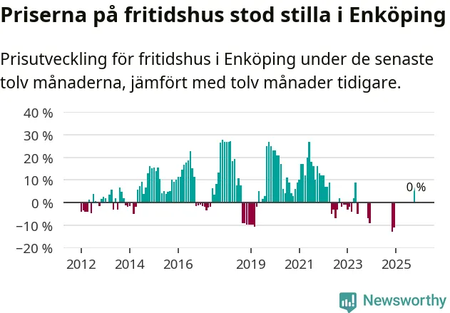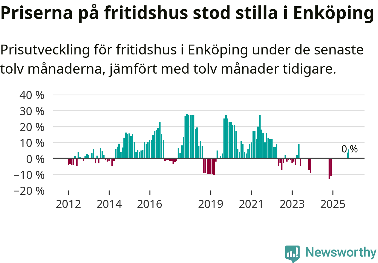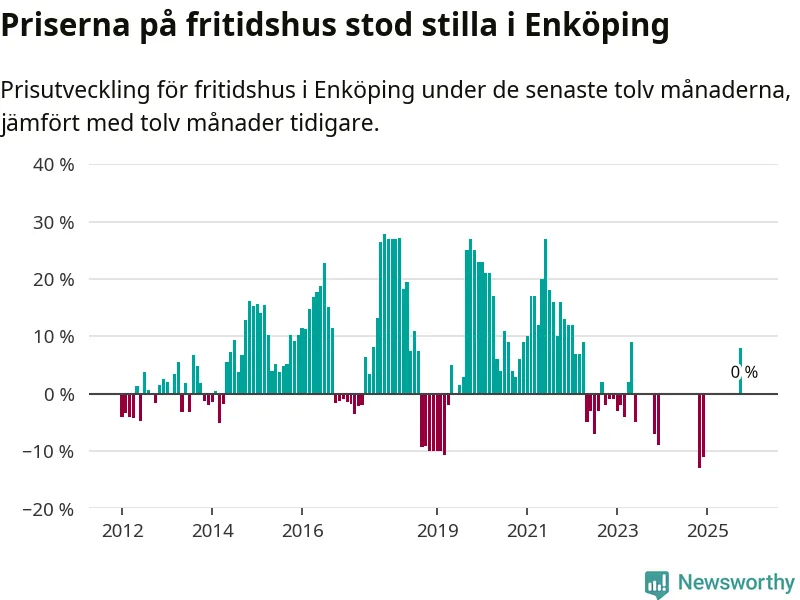 Priserna på fritidshus står i stort sett stilla i Enköpings kommun. Medelpriset på de på försäljningarna under de senaste tolv månaderna låg på samma nivå som för ett år sedan.
