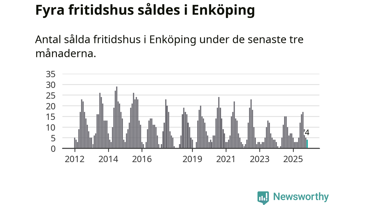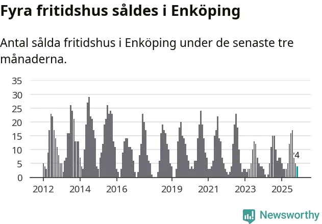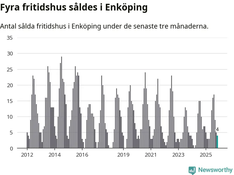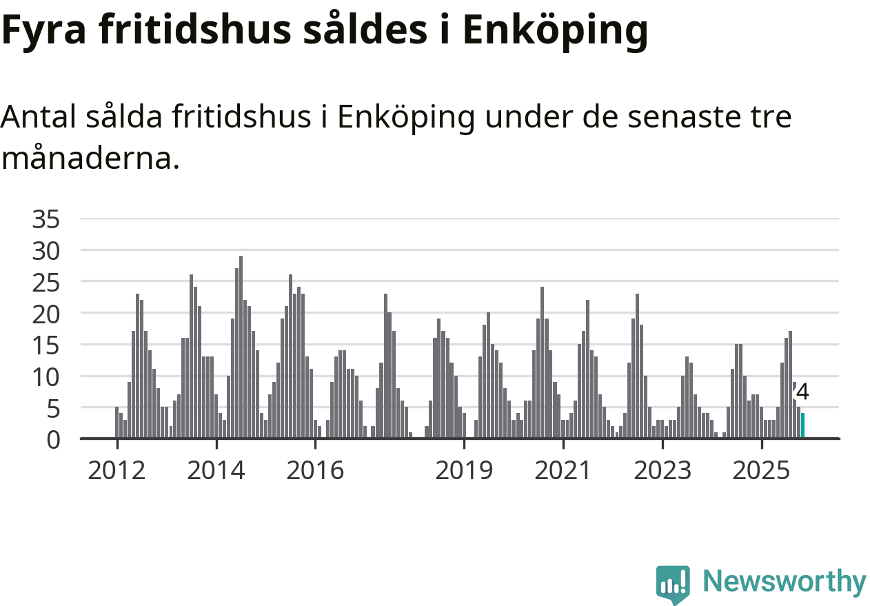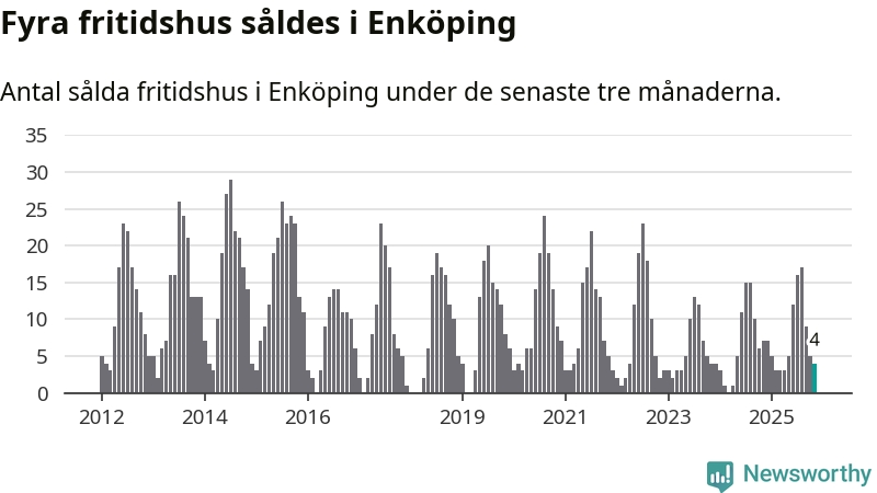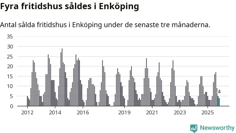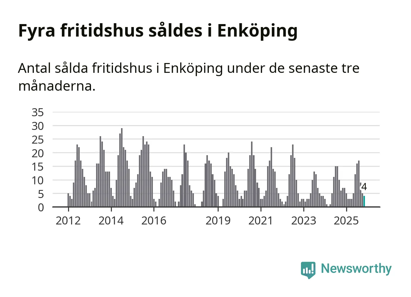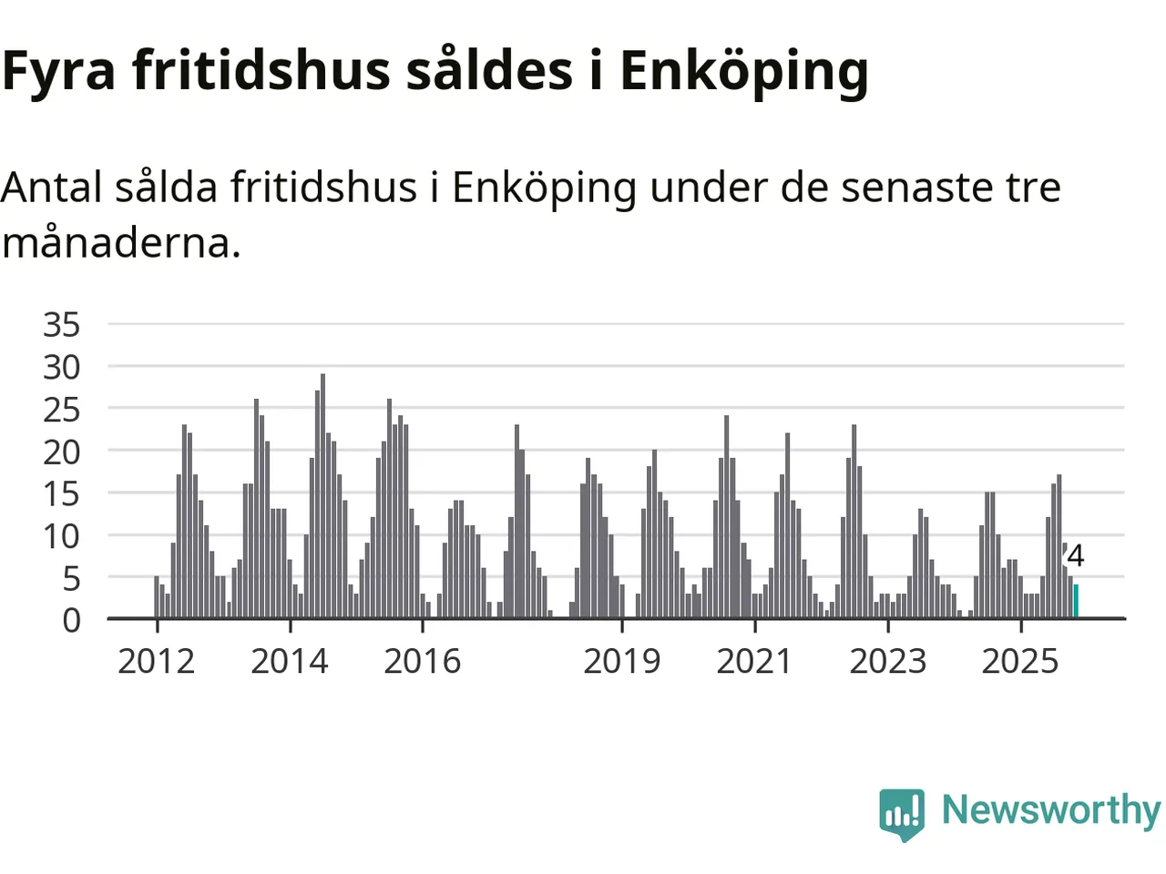 Sammanlagt såldes fyra fritidshus i Enköpings kommun mellan september och november till ett genomsnittligt pris på 1,7 miljoner kronor. I fjol gjordes sju affärer vid den här tiden på året.