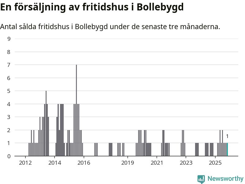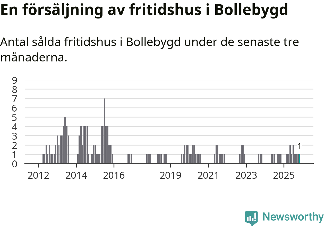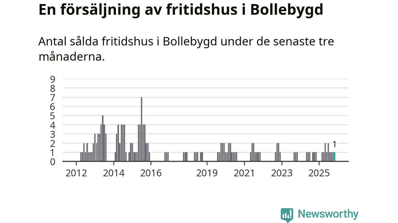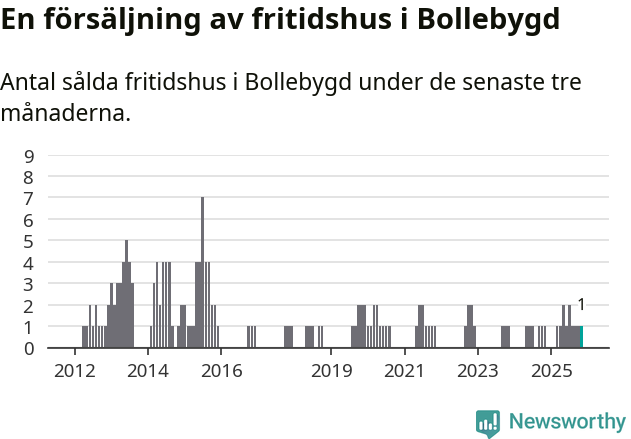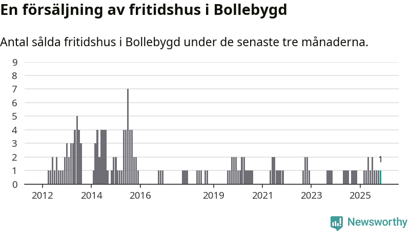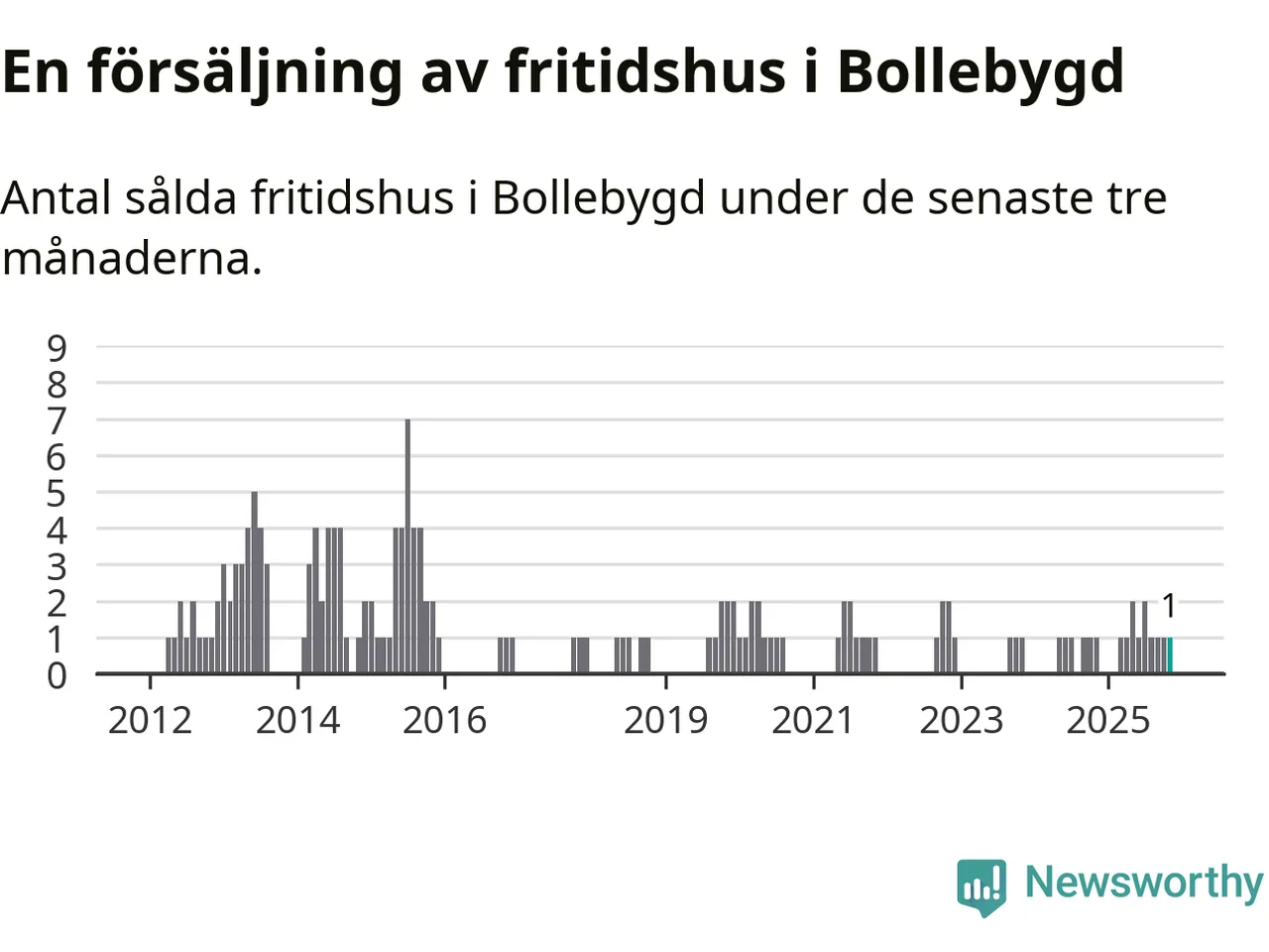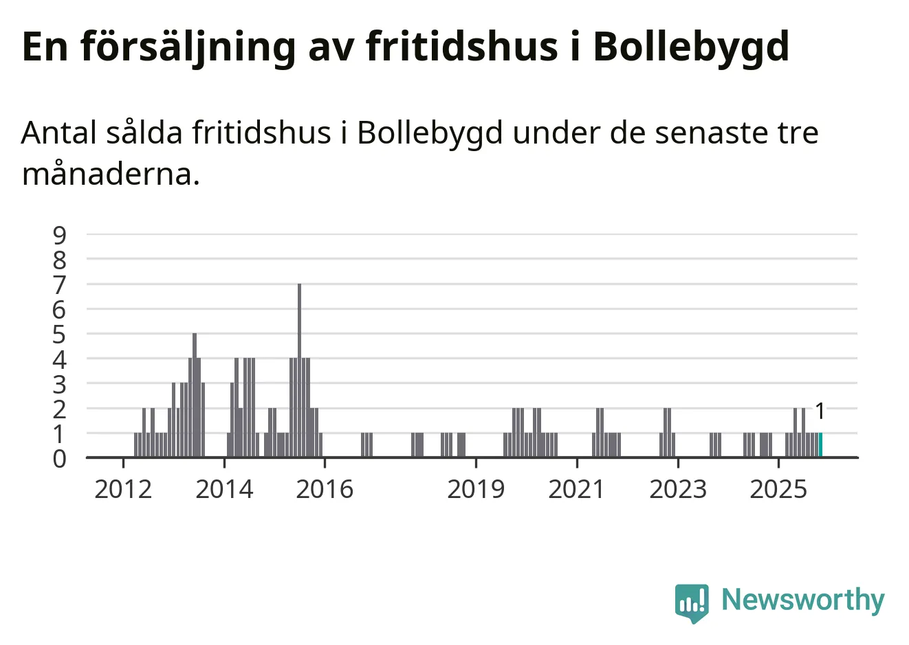 Mellan september och november gjordes sammanlagt en affär med fritidshus i Bollebygds kommun. Det är lika många affärer som vid motsvarande tid i fjol.