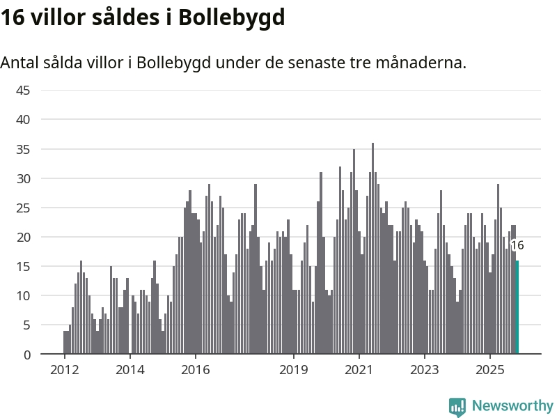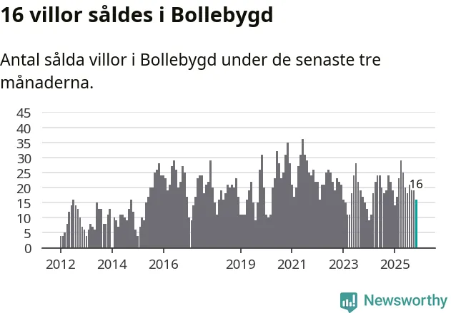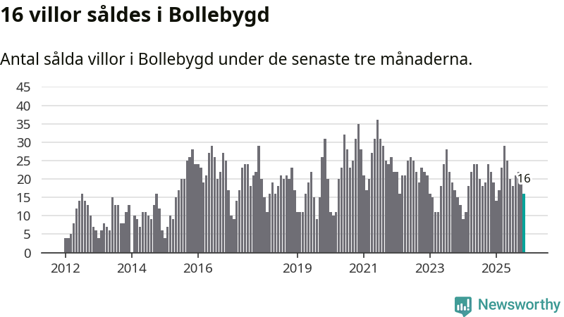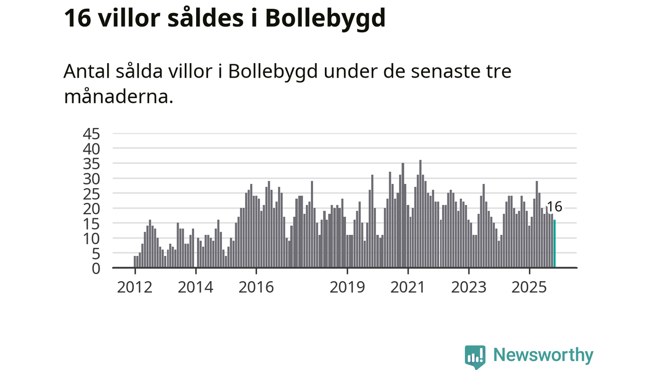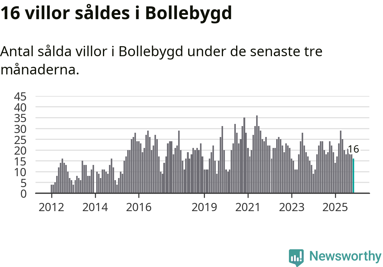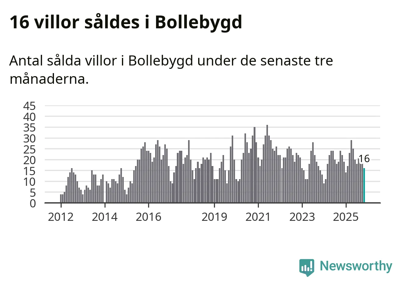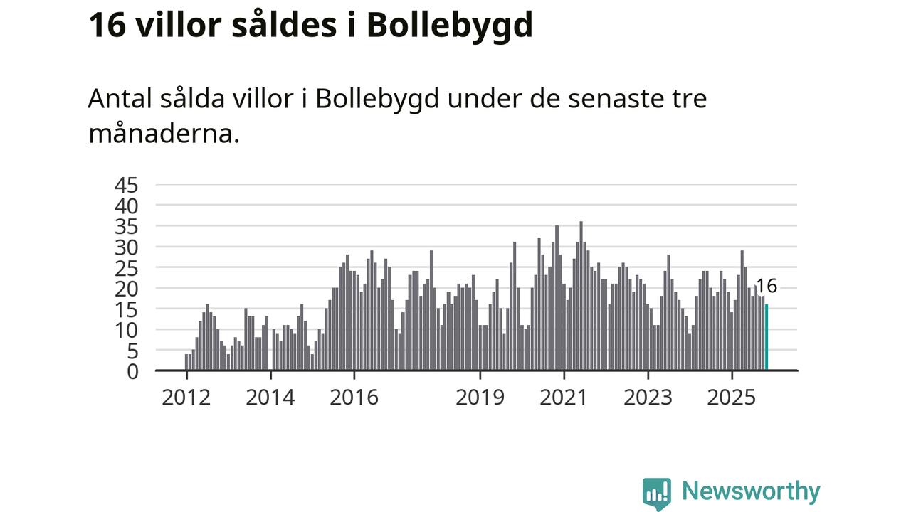 Mellan september och november gjordes sammanlagt 16 affärer med villor i Bollebygds kommun. Det kan jämföras med 22 vid motsvarande tid i fjol.