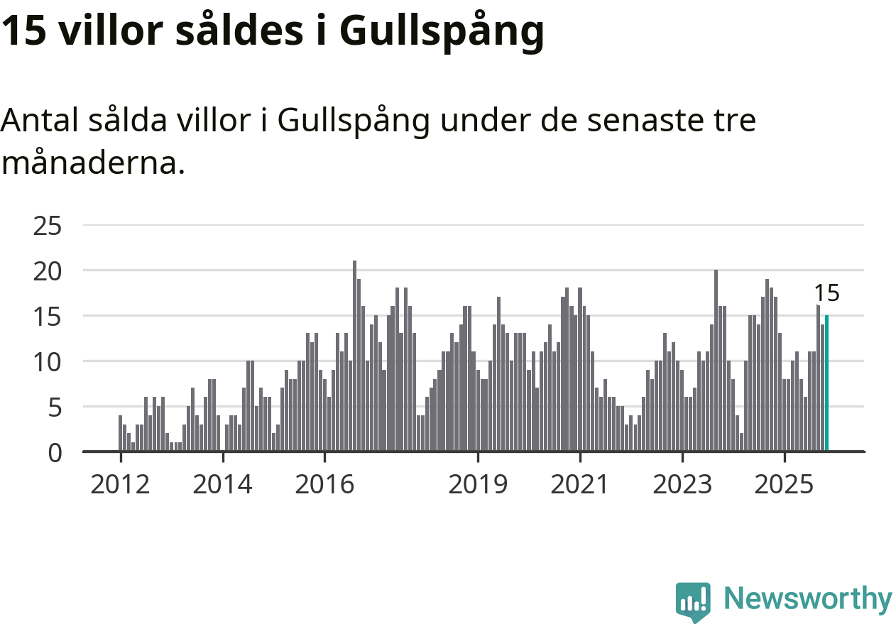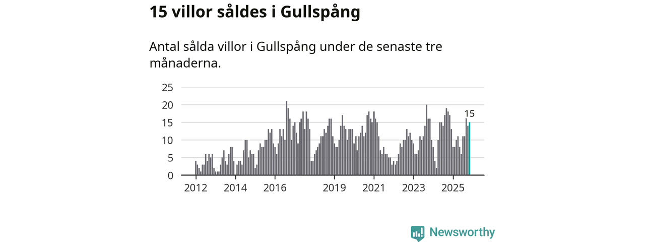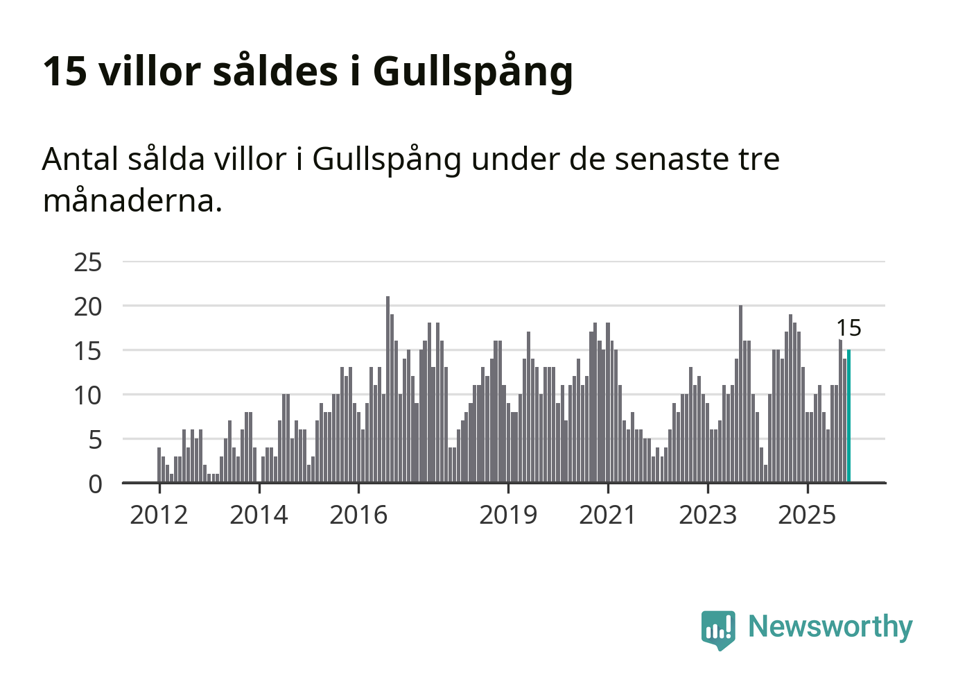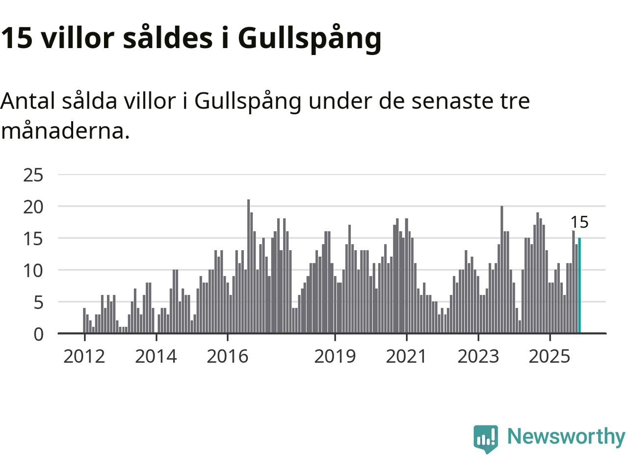 Mellan september och november gjordes sammanlagt 15 affärer med villor i Gullspångs kommun. Det kan jämföras med 17 vid motsvarande tid i fjol.