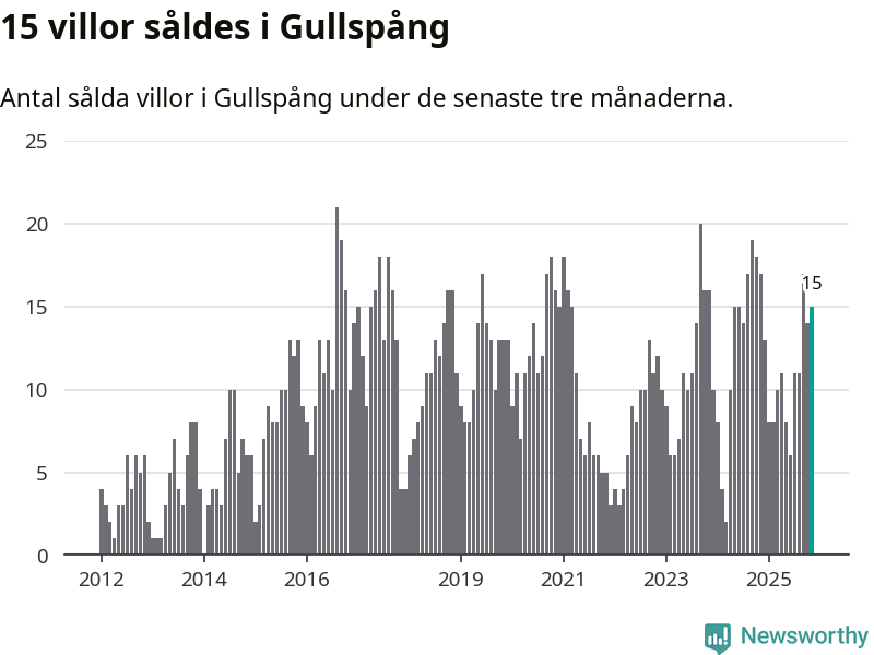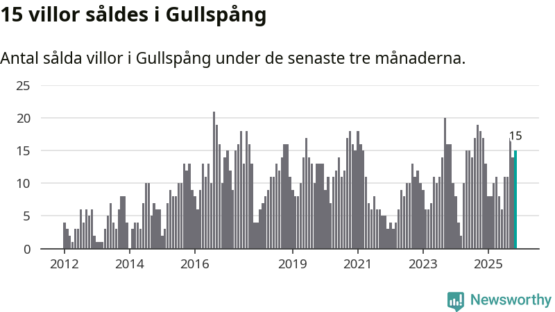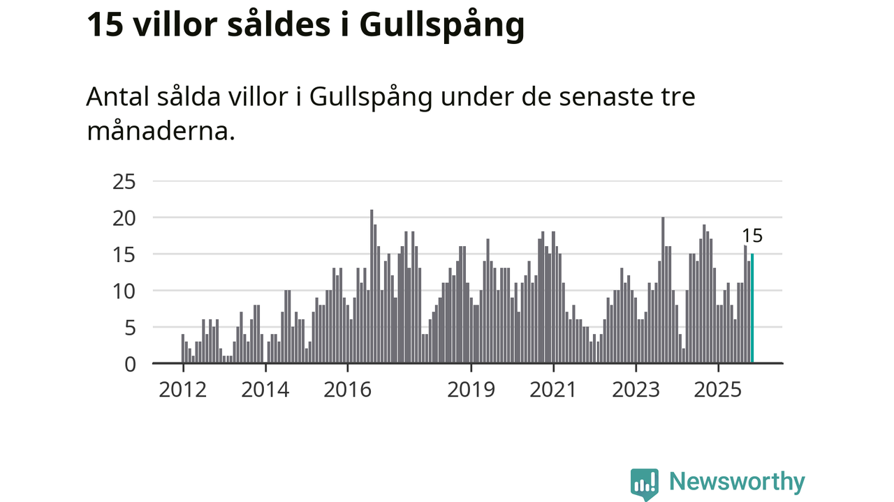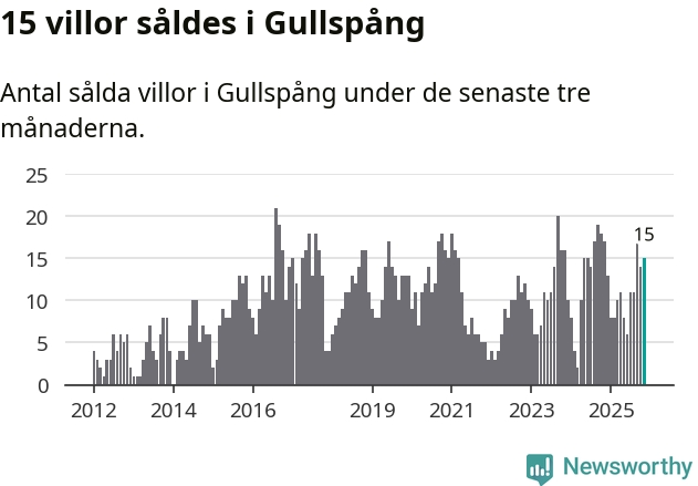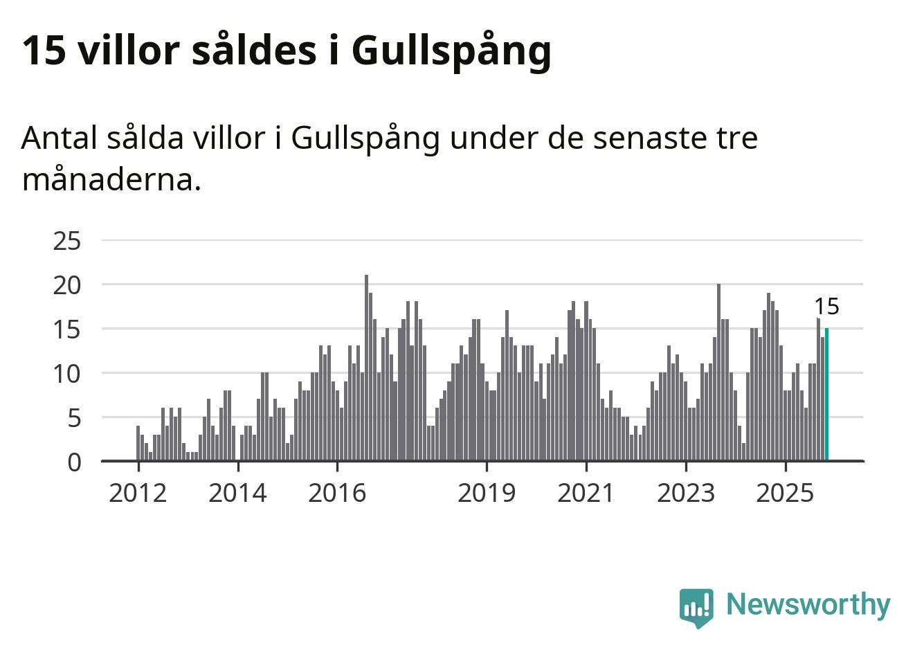 Mellan september och november gjordes sammanlagt 15 affärer med villor i Gullspångs kommun. Det kan jämföras med 17 vid motsvarande tid i fjol.