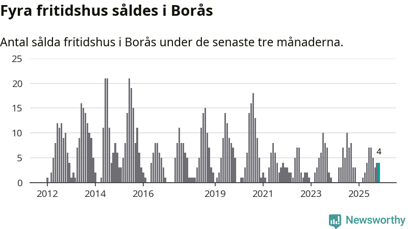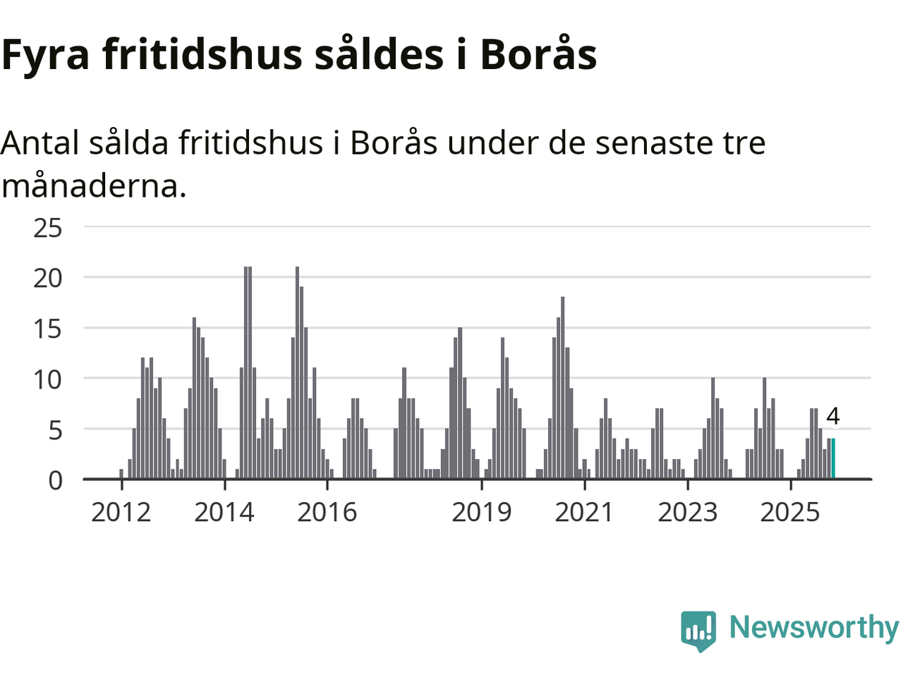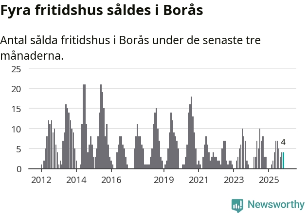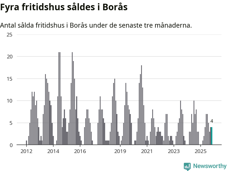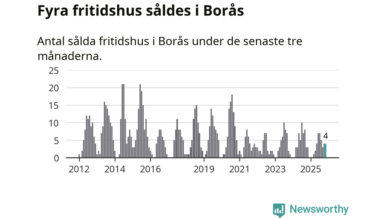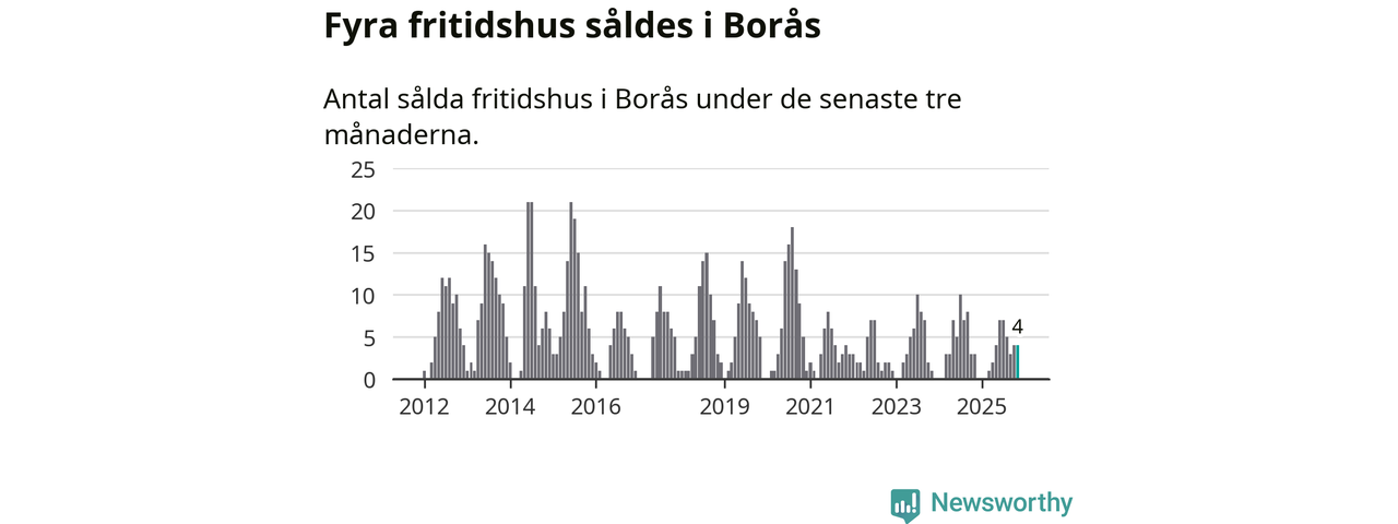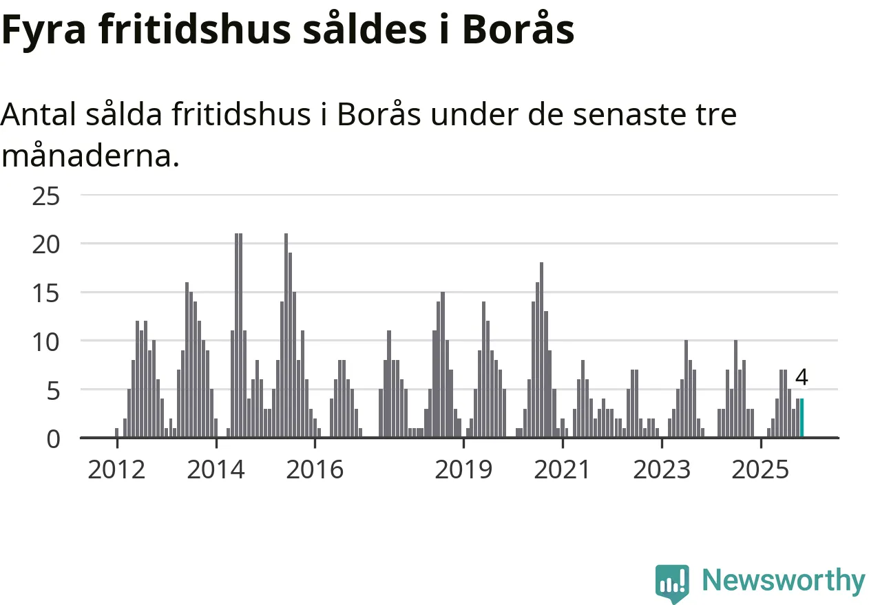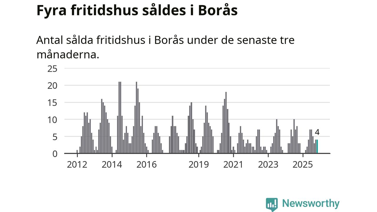 Mellan september och november gjordes sammanlagt fyra affärer med fritidshus i Borås kommun. Det kan jämföras med tre vid motsvarande tid i fjol.