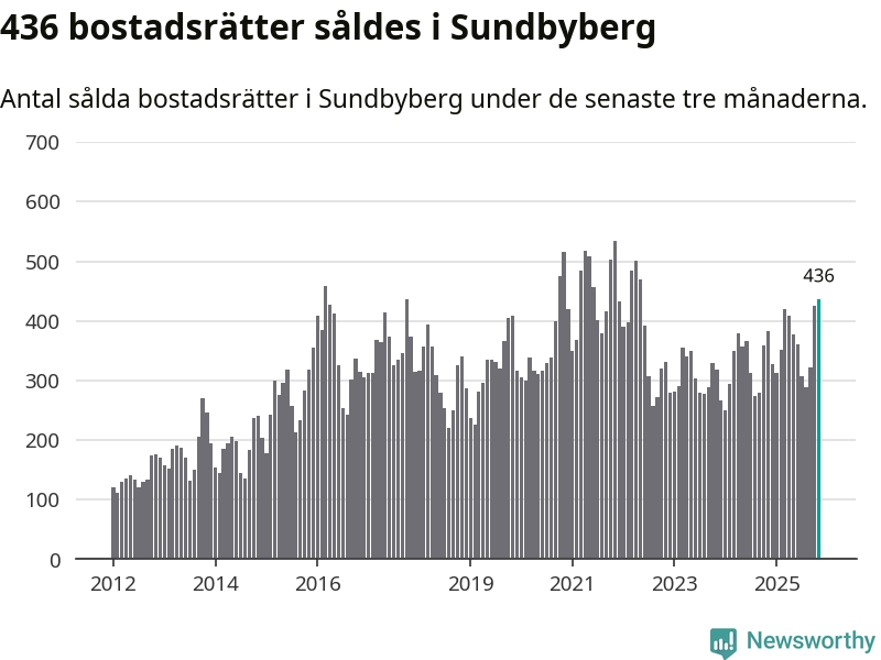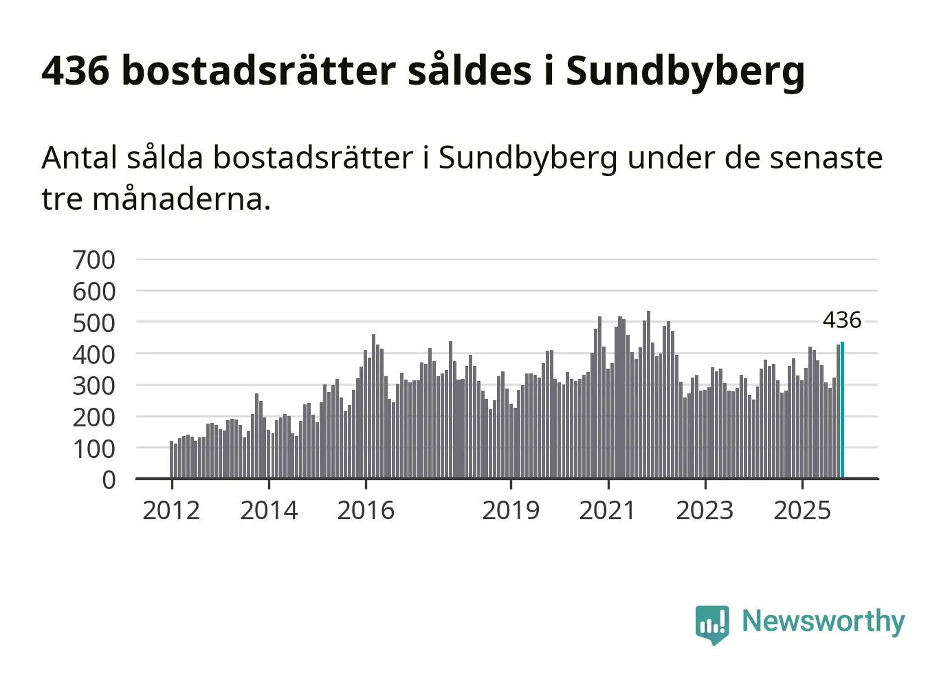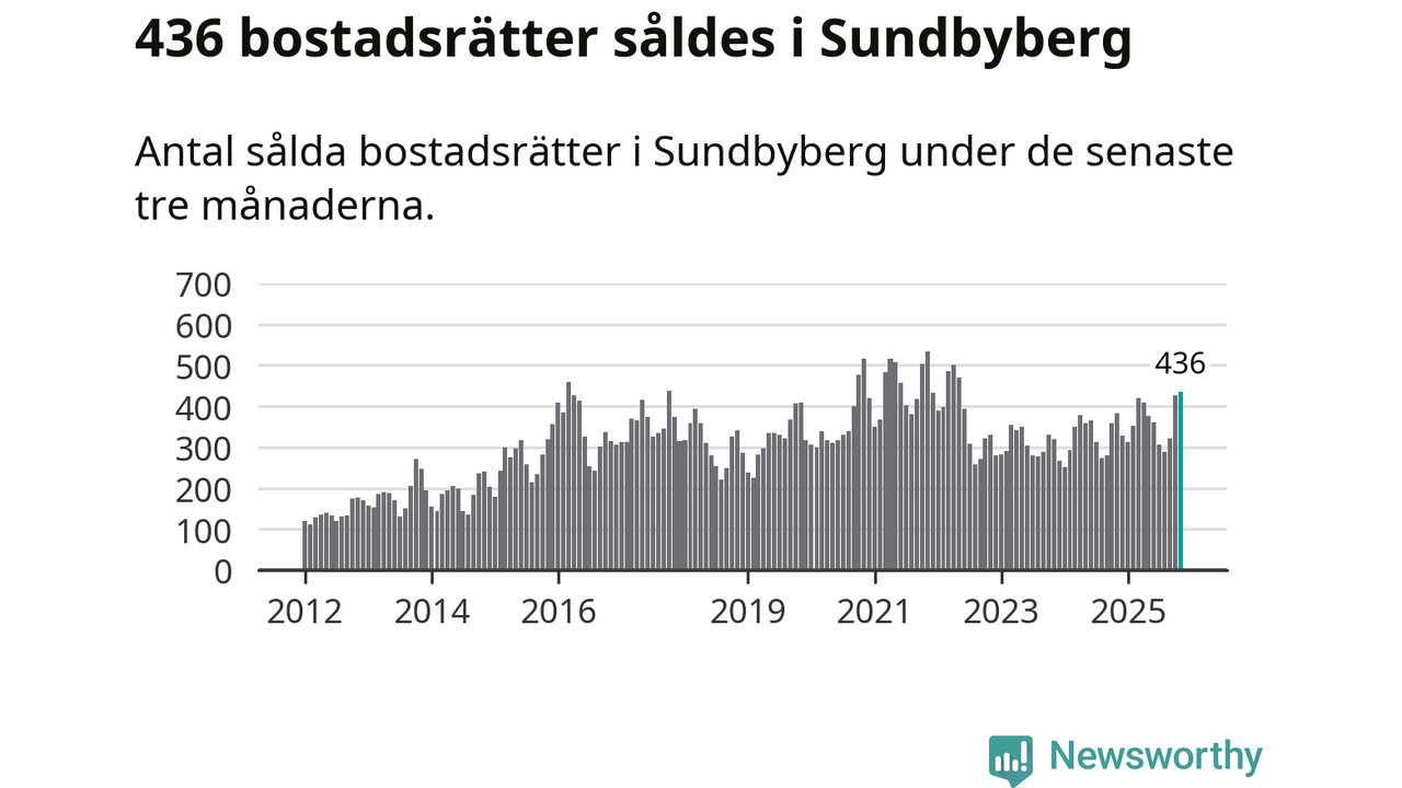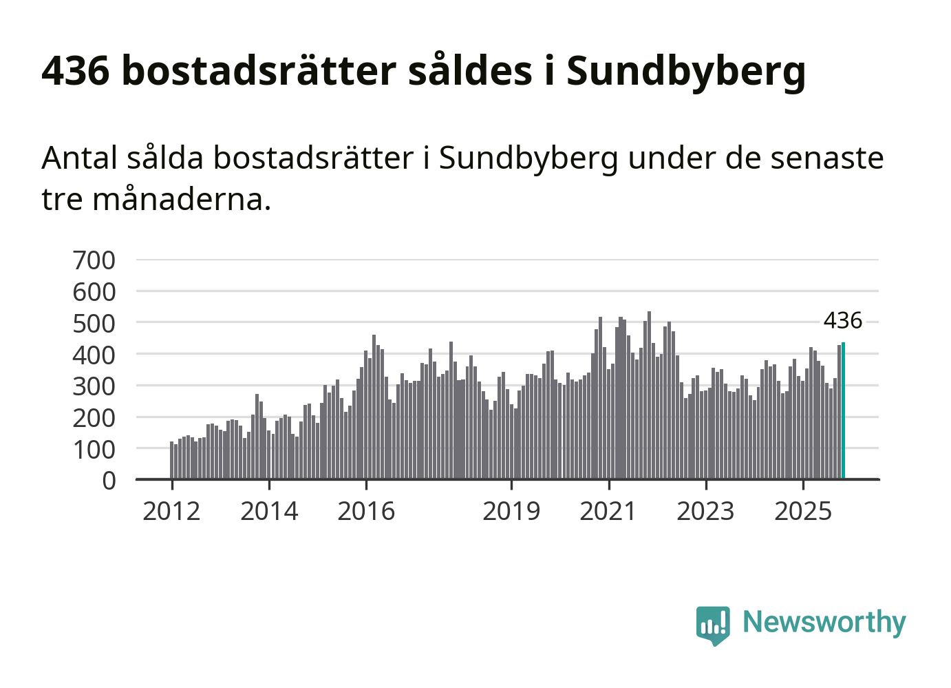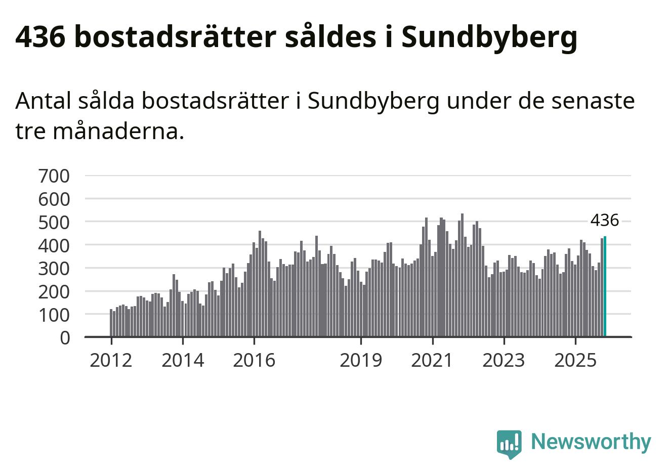 Mellan september och november såldes 436 bostadsrätter i Sundbybergs kommun. Det är fler än någon tremånadersperiod sedan 2022.