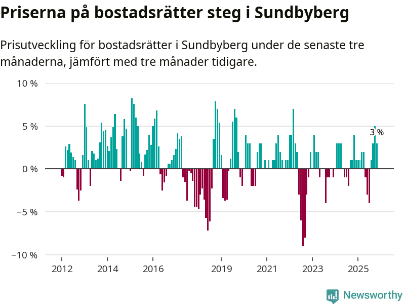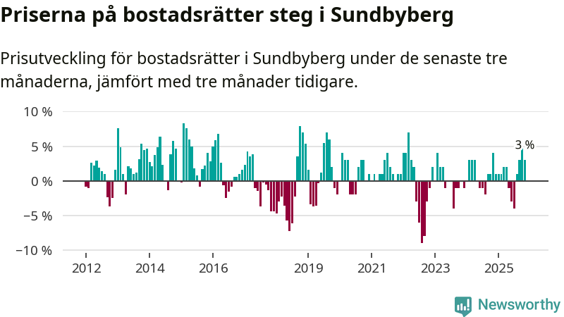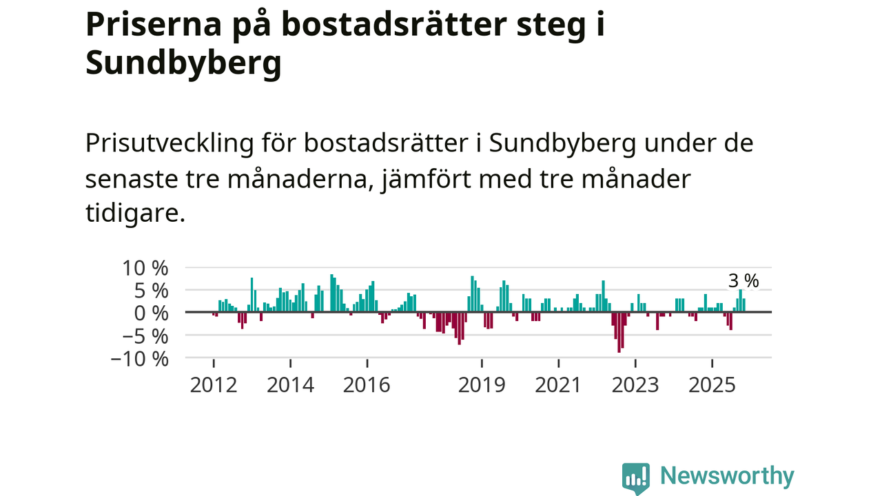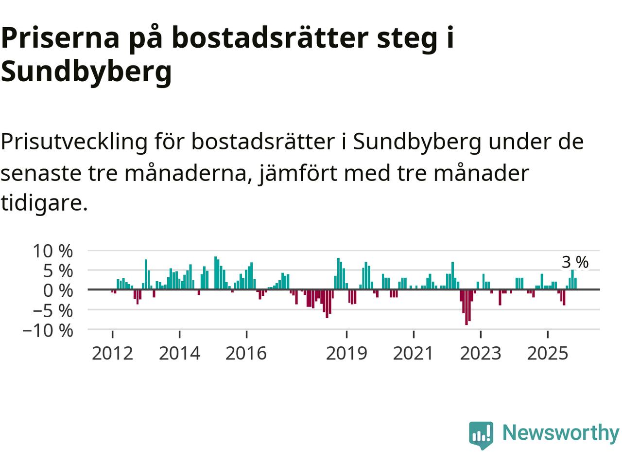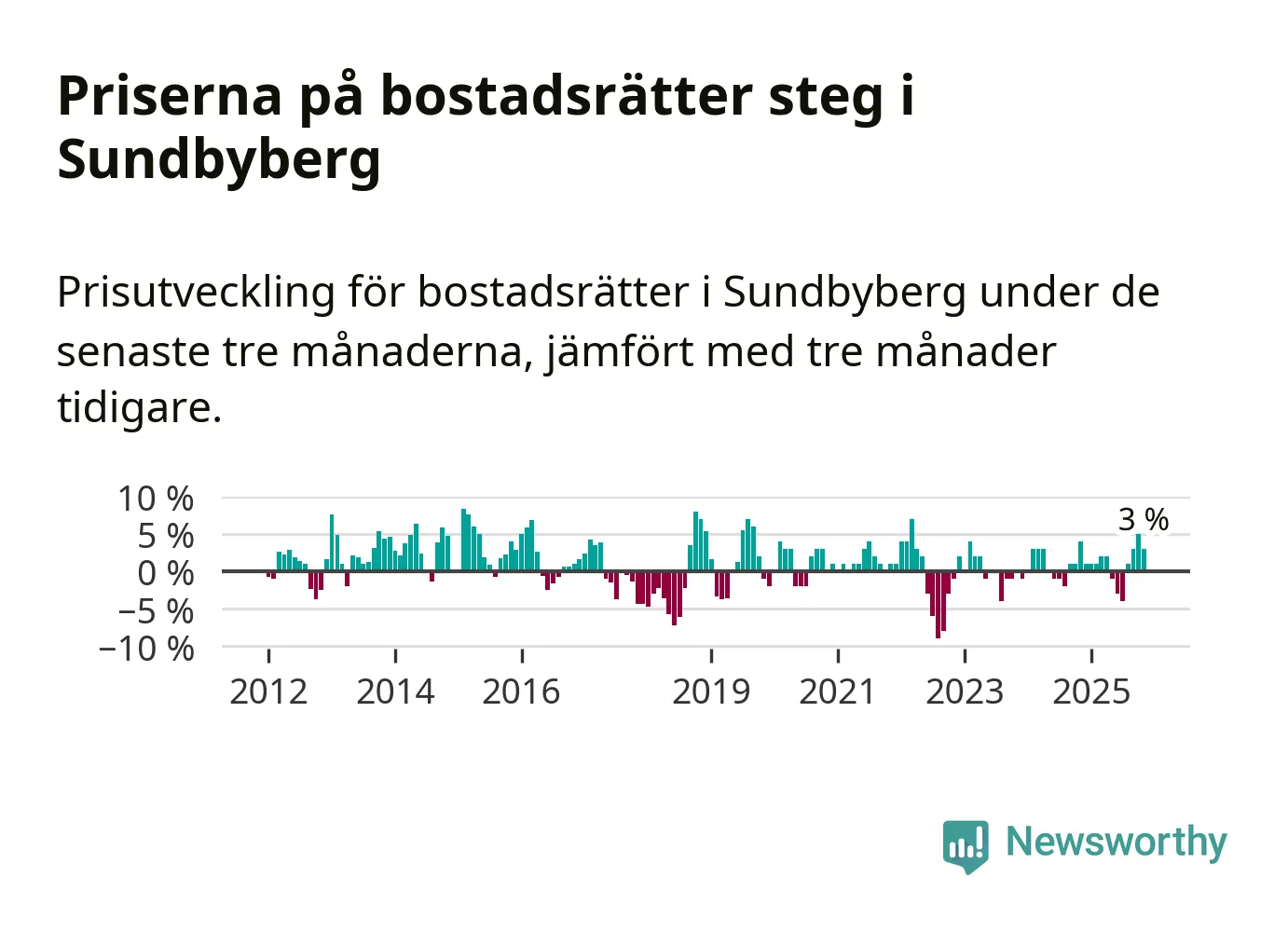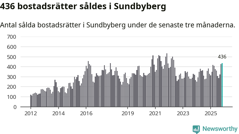 Mellan september och november såldes 436 bostadsrätter i Sundbybergs kommun. Det är fler än någon tremånadersperiod sedan 2022.