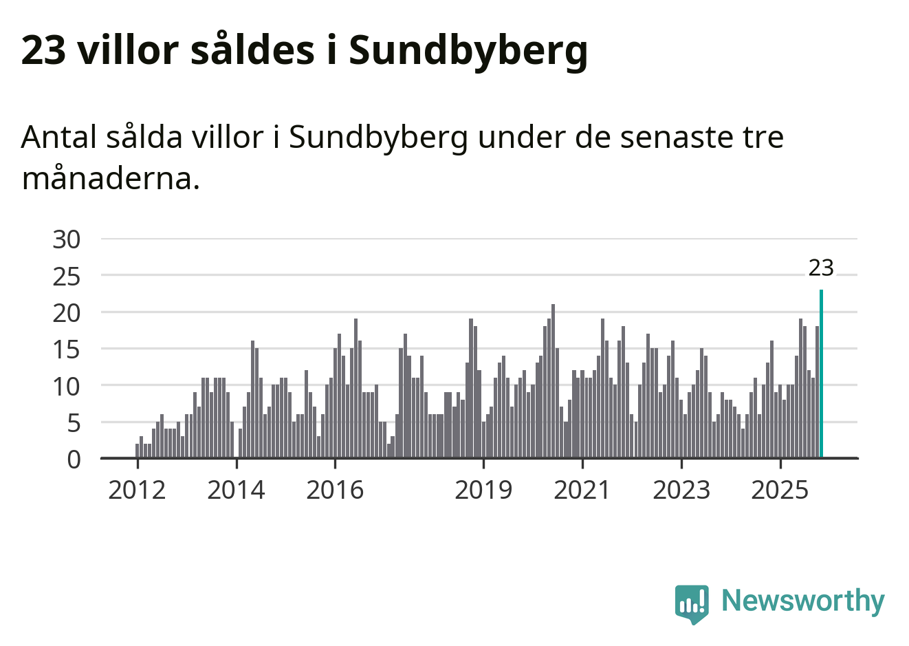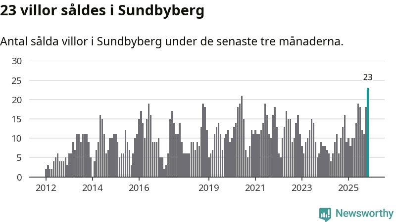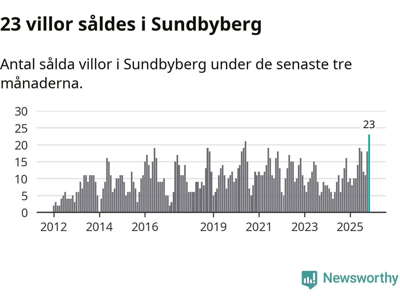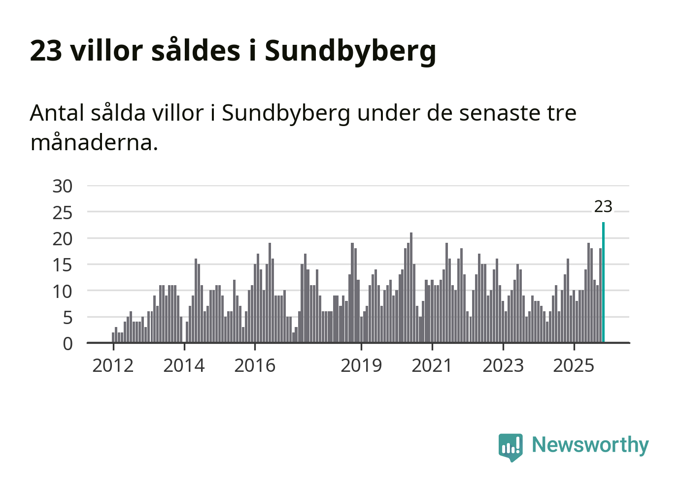 Mellan september och november såldes 23 villor i Sundbybergs kommun. Det är fler än någon tremånadersperiod sedan 2012.