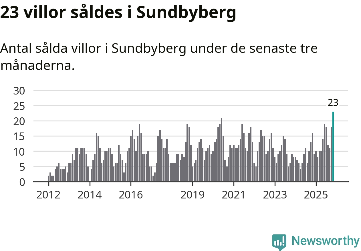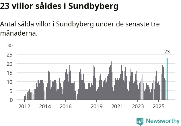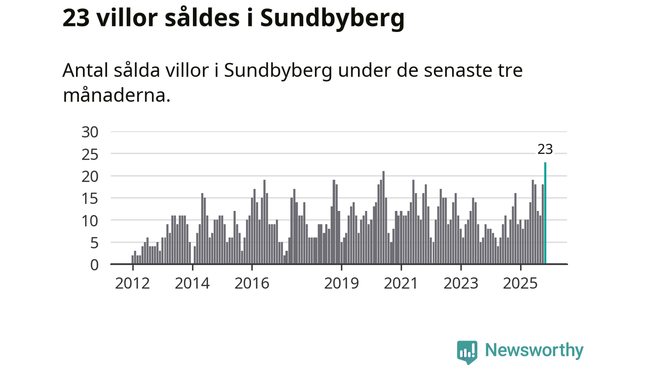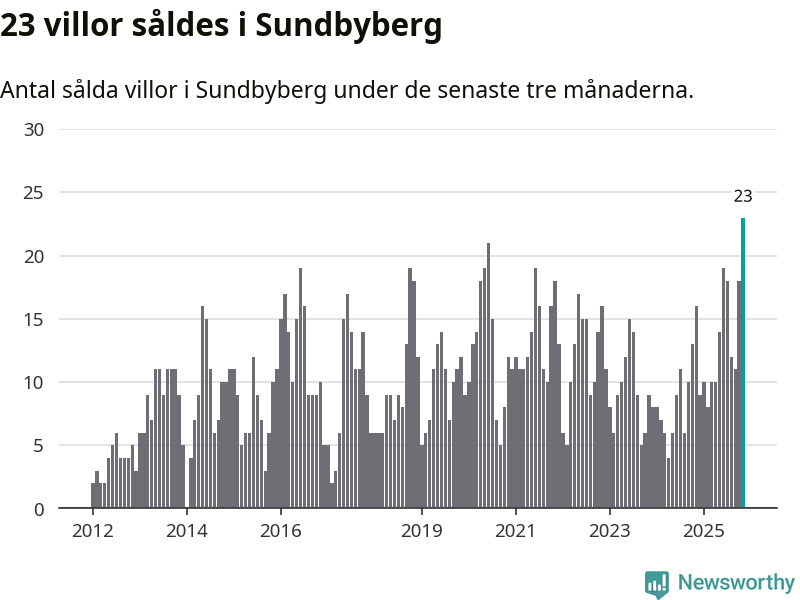 Mellan september och november såldes 23 villor i Sundbybergs kommun. Det är fler än någon tremånadersperiod sedan 2012.
