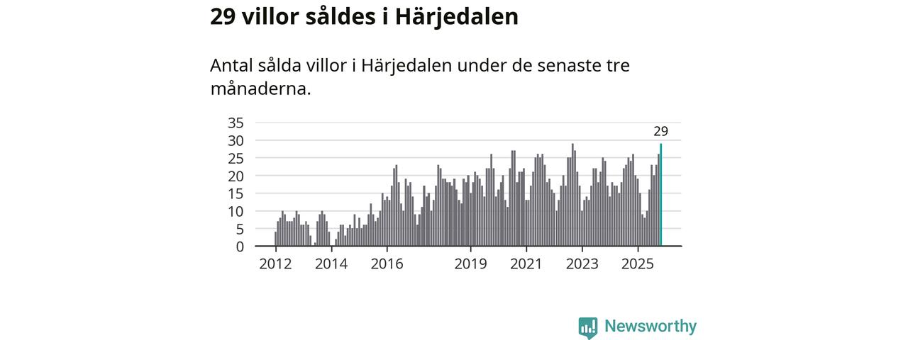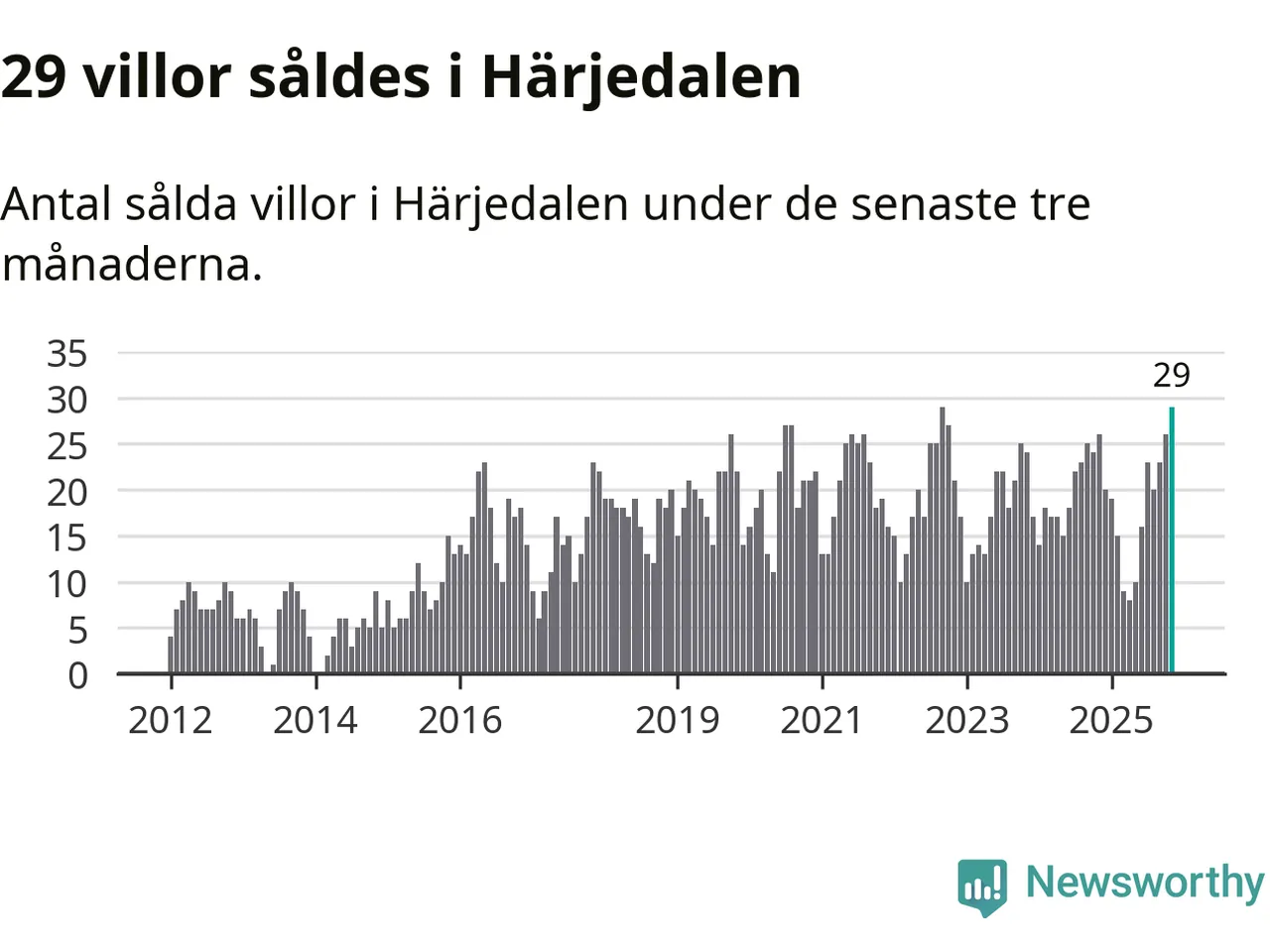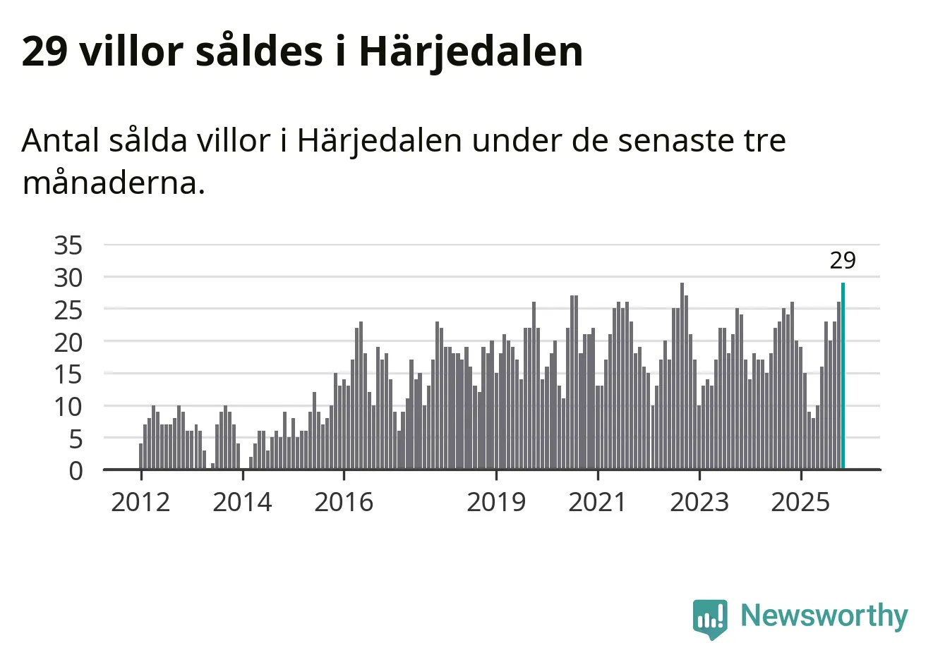 Mellan september och november såldes 29 villor i Härjedalens kommun. Det är fler än någon tremånadersperiod sedan 2022.
