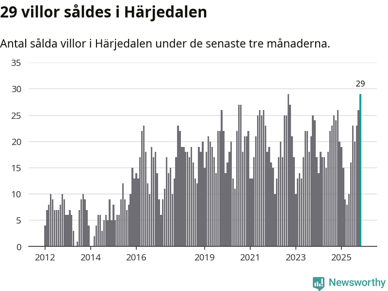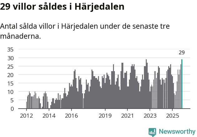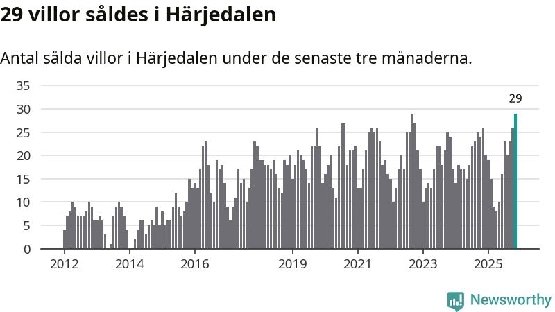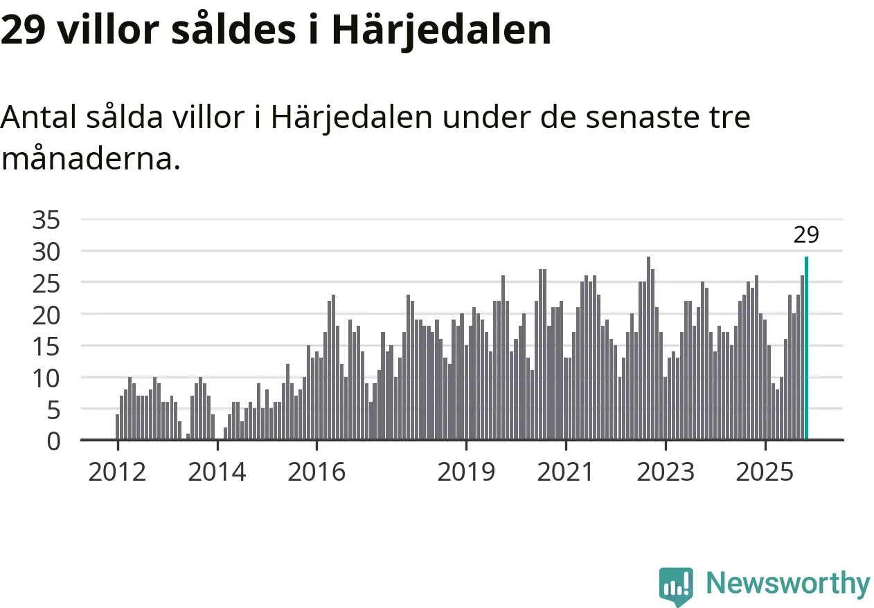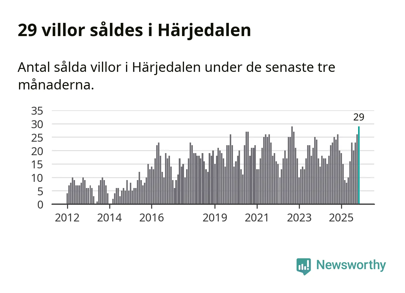 Mellan september och november såldes 29 villor i Härjedalens kommun. Det är fler än någon tremånadersperiod sedan 2022.