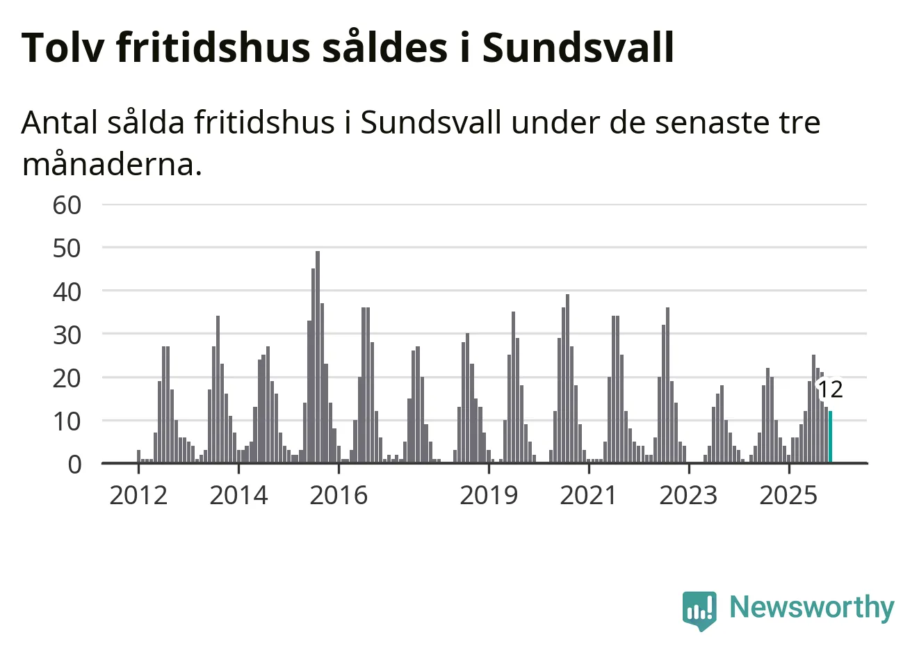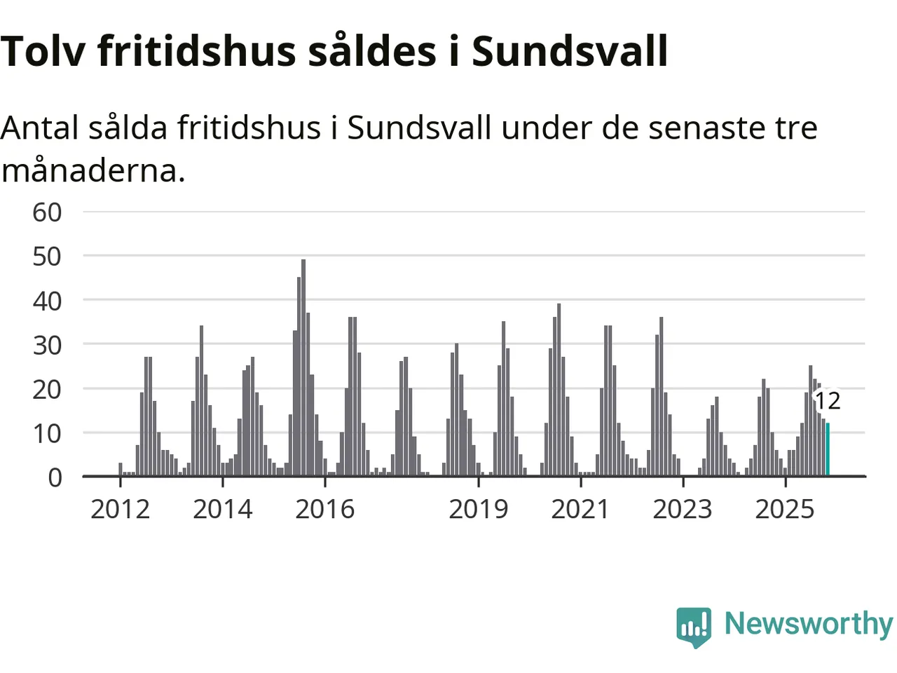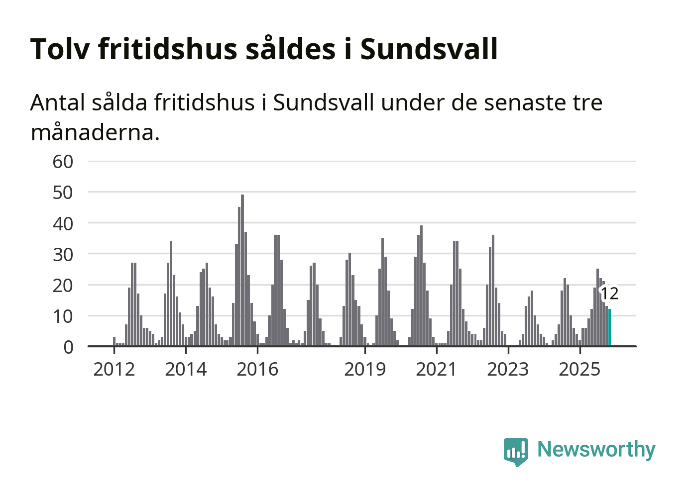 Sammanlagt såldes tolv fritidshus i Sundsvalls kommun mellan september och november till ett genomsnittligt pris på 1,6 miljoner kronor. I fjol gjordes sex affärer vid den här tiden på året.