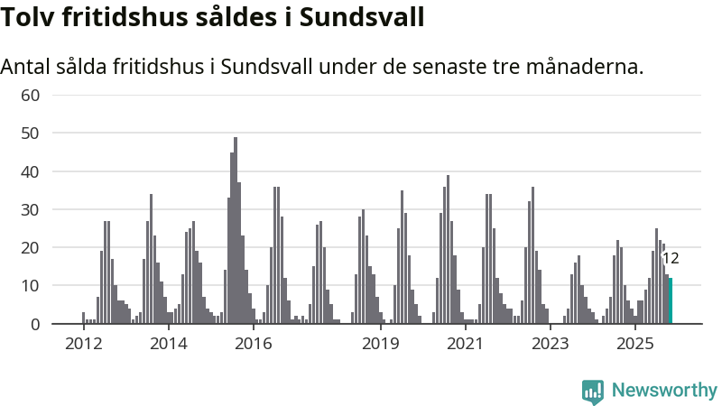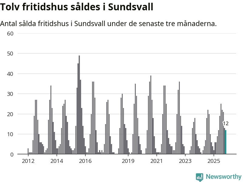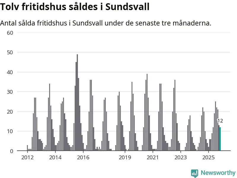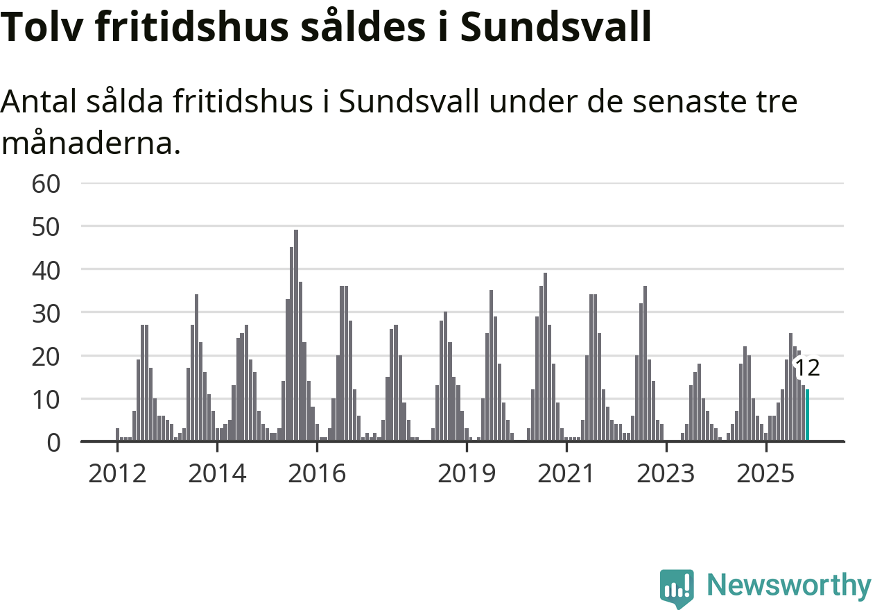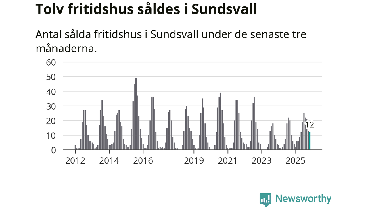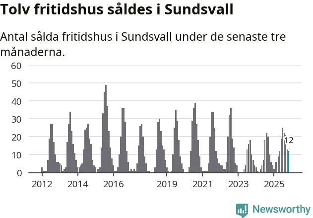 Sammanlagt såldes tolv fritidshus i Sundsvalls kommun mellan september och november till ett genomsnittligt pris på 1,6 miljoner kronor. I fjol gjordes sex affärer vid den här tiden på året.