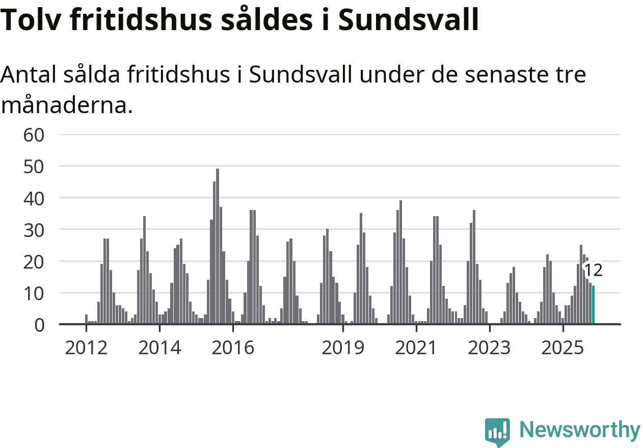 Graf: Antal sålda fritidshus i Sundsvalls kommun