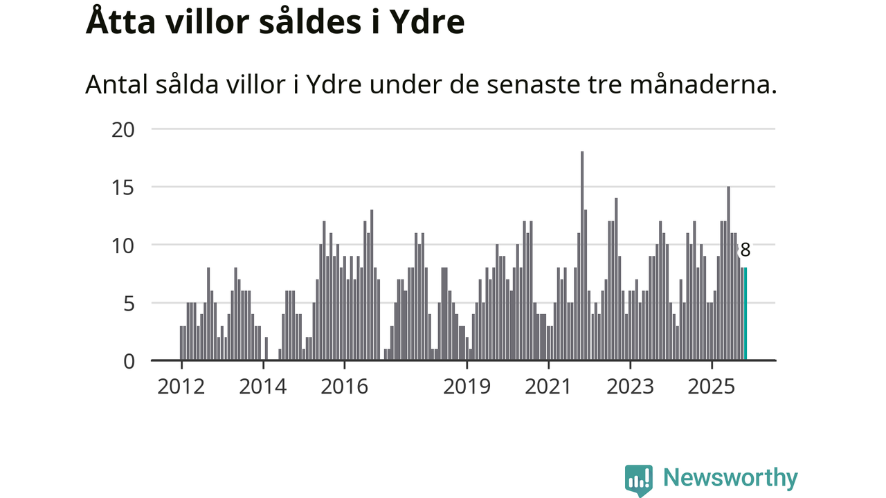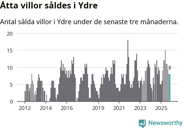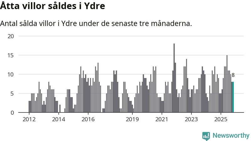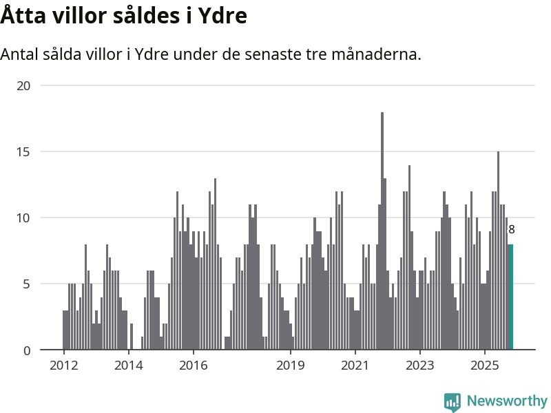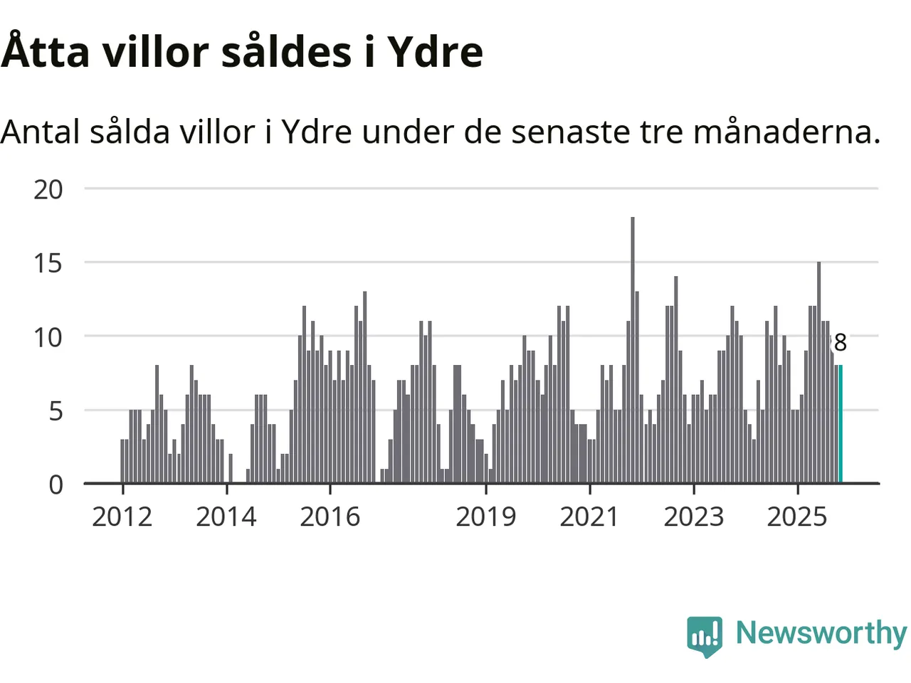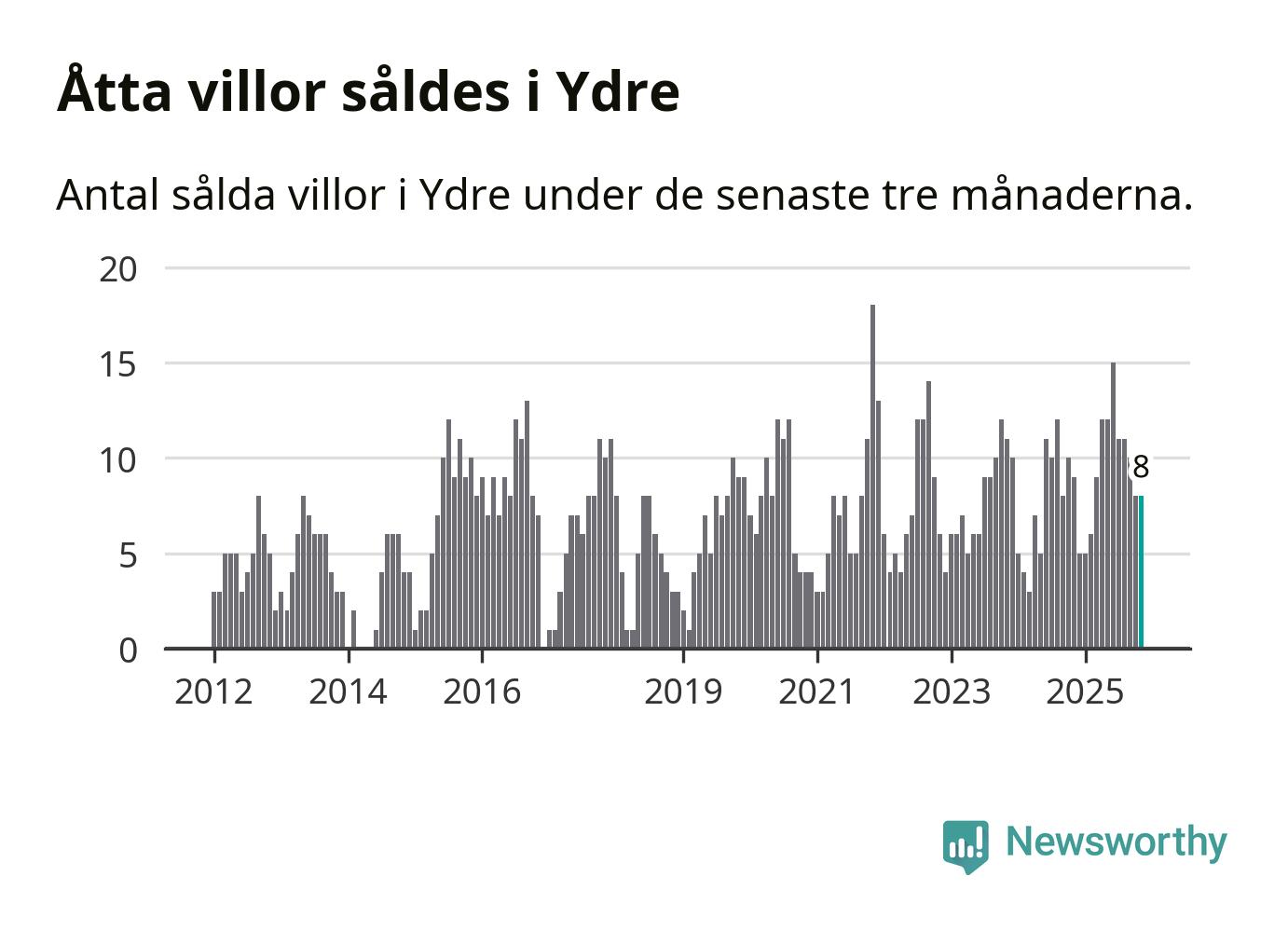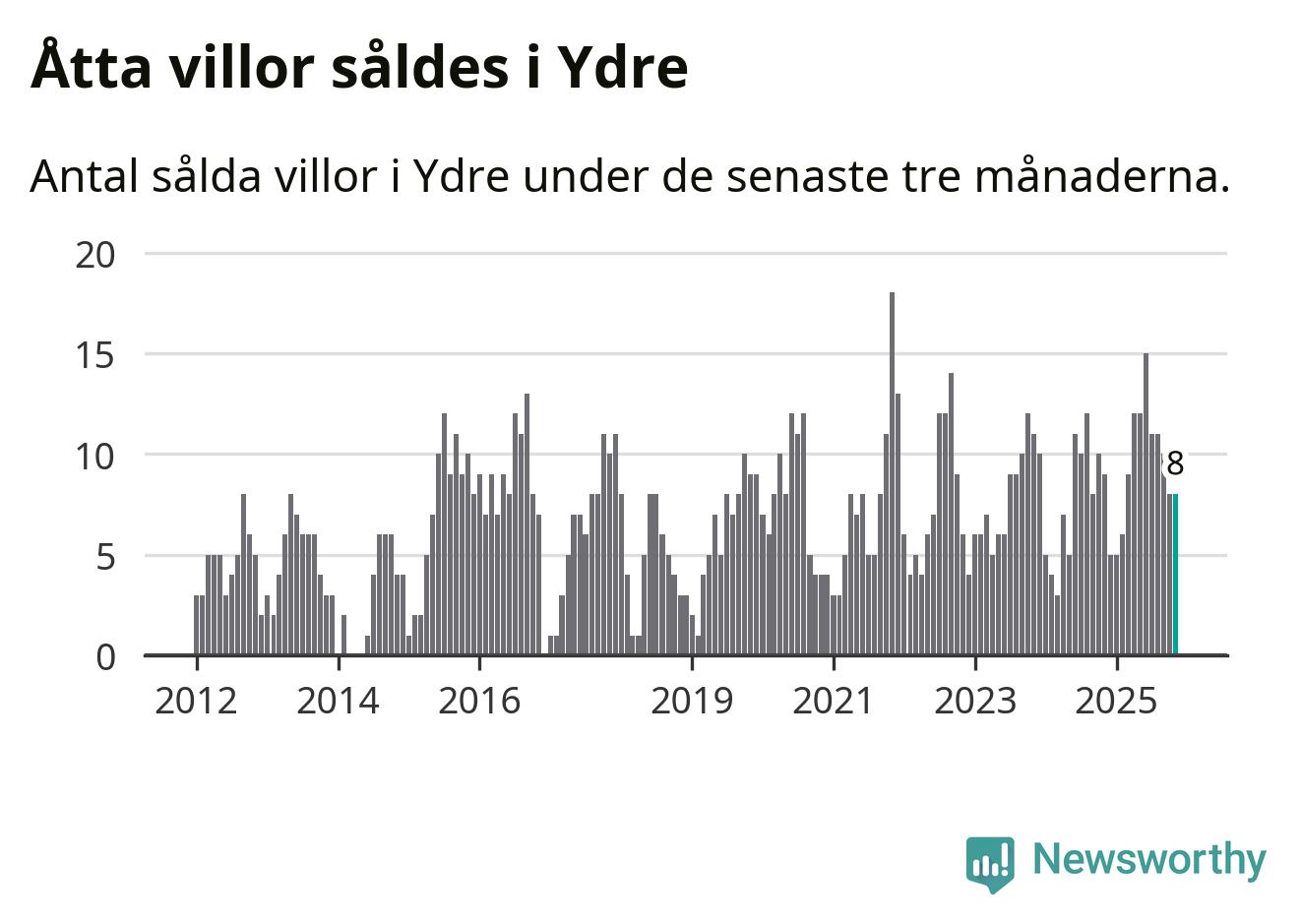 Mellan september och november gjordes sammanlagt åtta affärer med villor i Ydre kommun. Det kan jämföras med nio vid motsvarande tid i fjol.