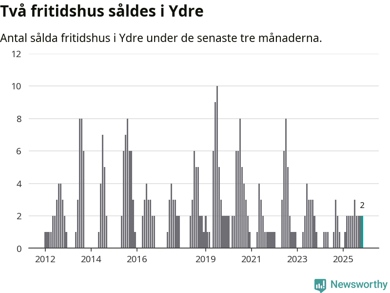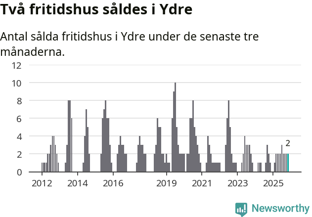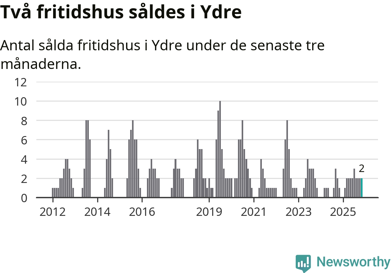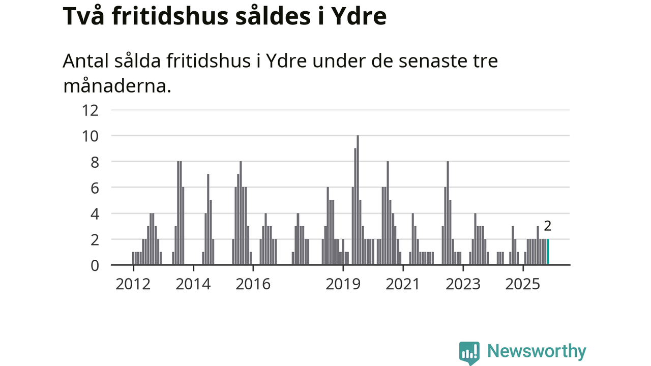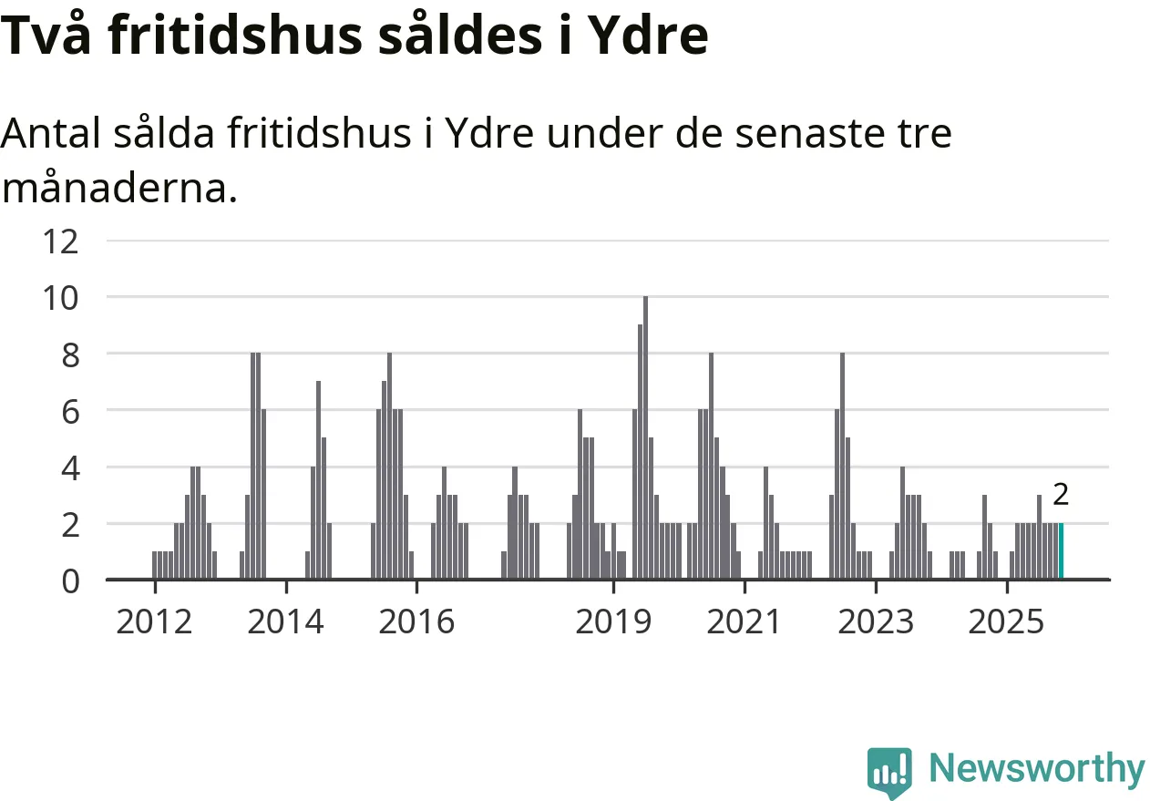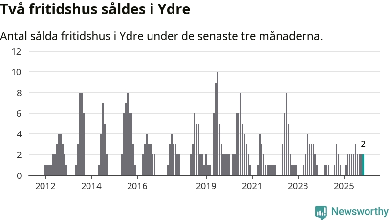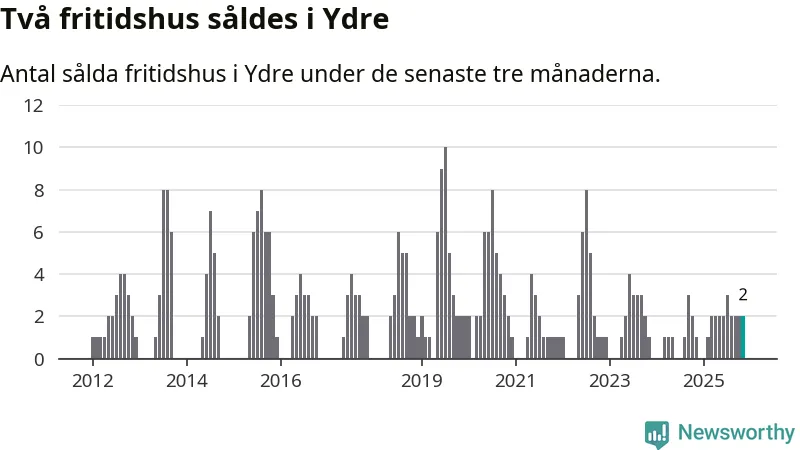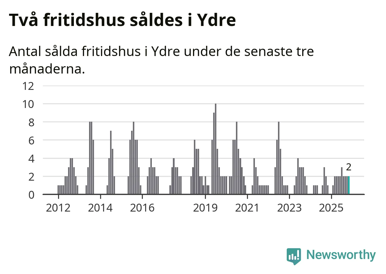 Mellan september och november gjordes sammanlagt två affärer med fritidshus i Ydre kommun. Det kan jämföras med ett vid motsvarande tid i fjol.