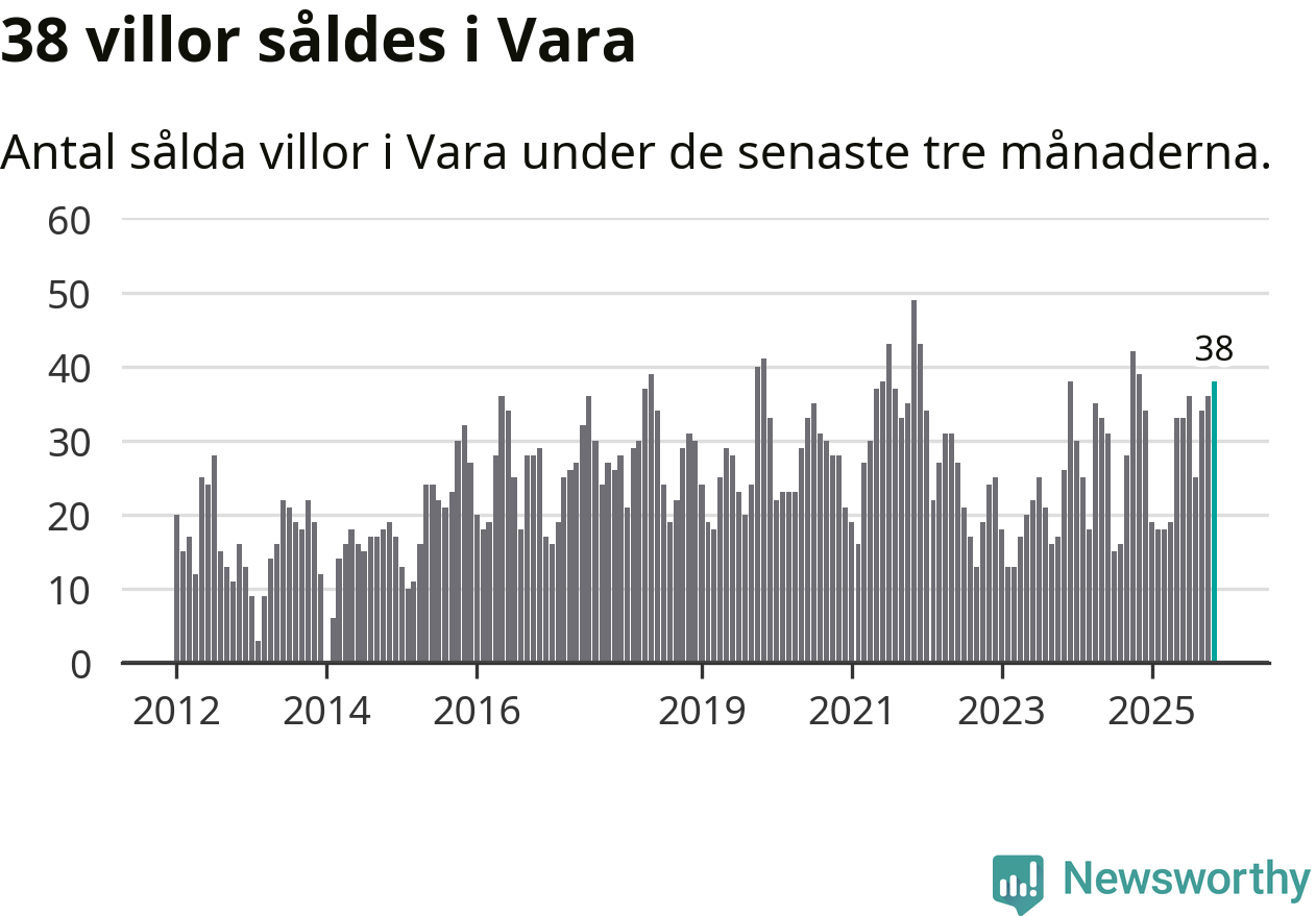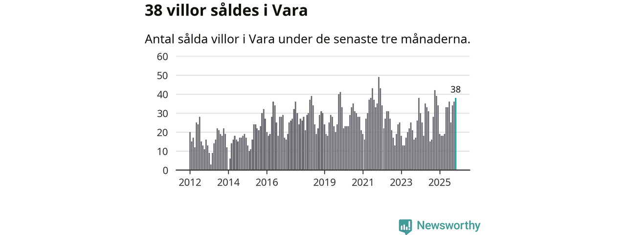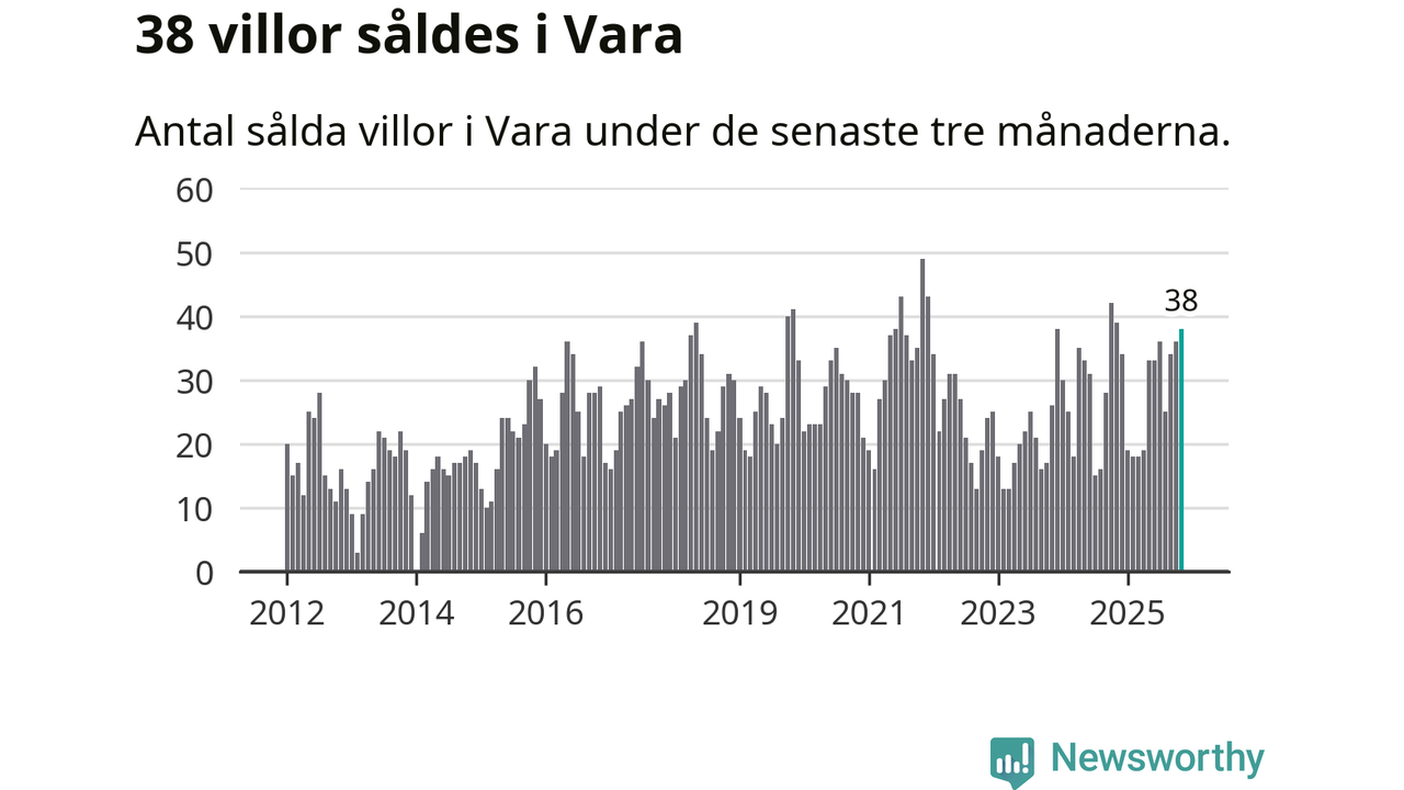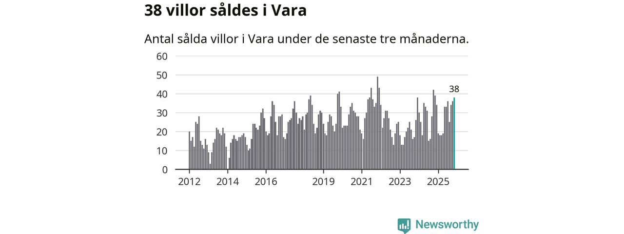 Mellan september och november gjordes sammanlagt 38 affärer med villor i Vara kommun. Det kan jämföras med 39 vid motsvarande tid i fjol.