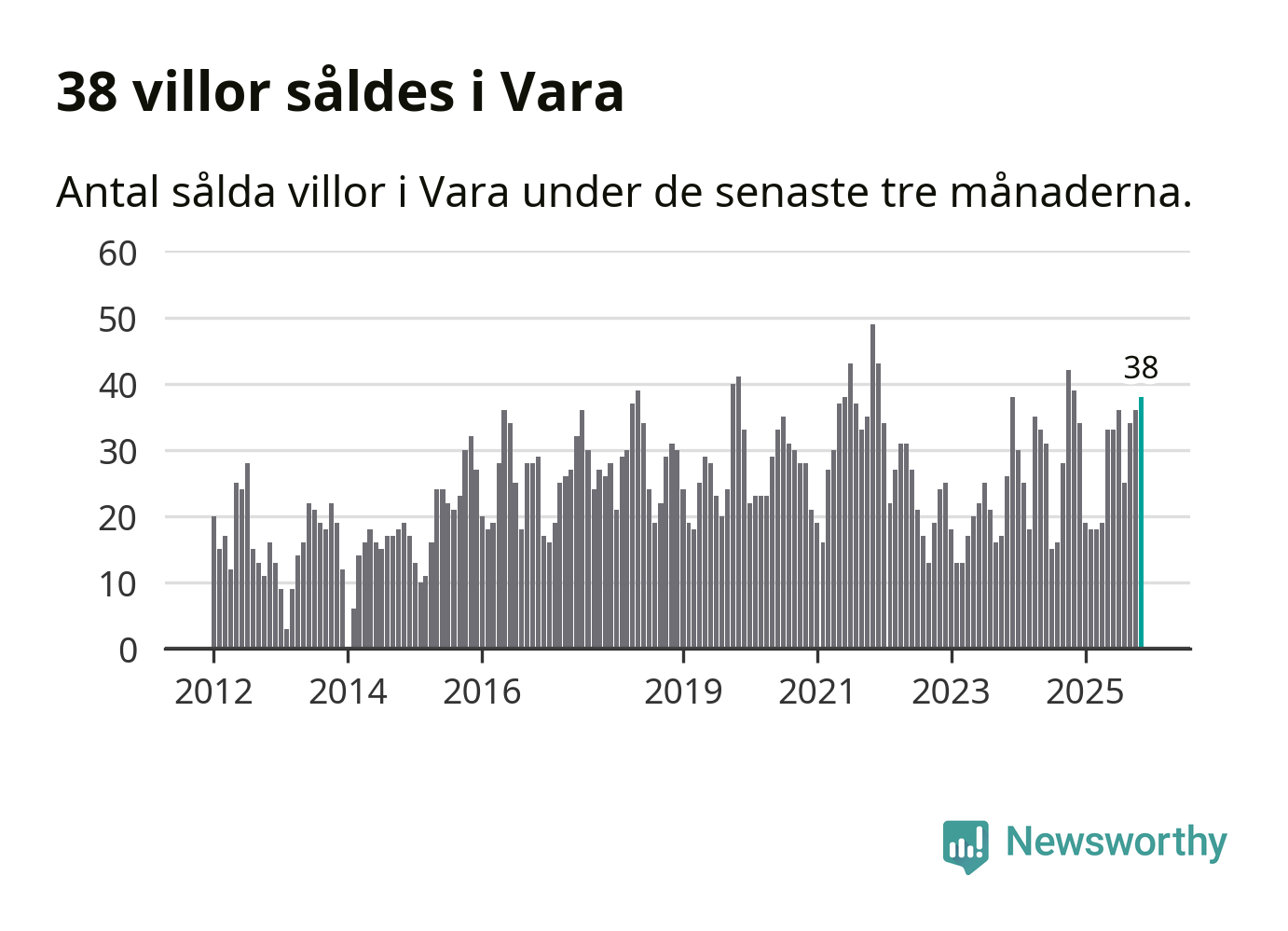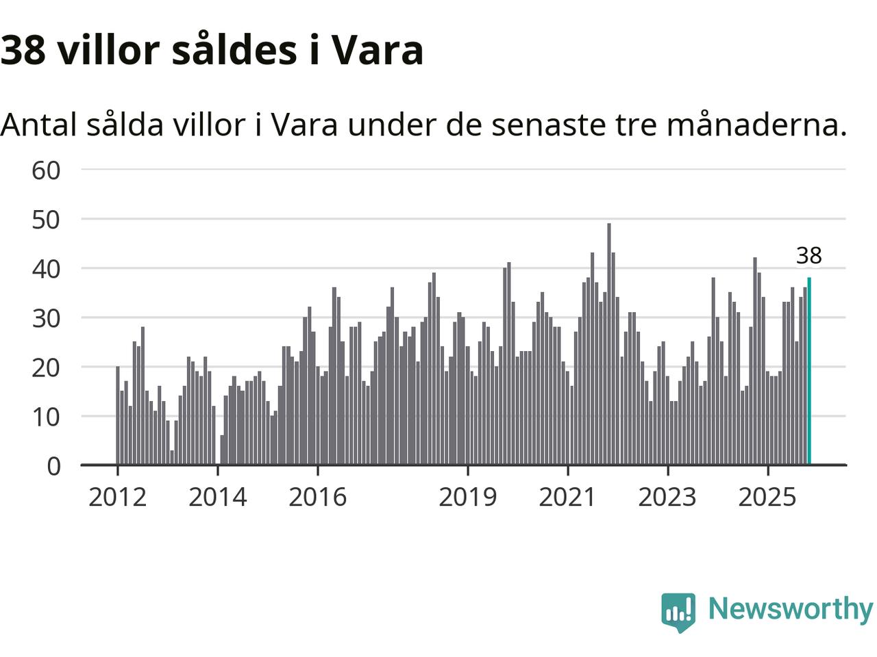 Graf: Antal sålda villor i Vara kommun