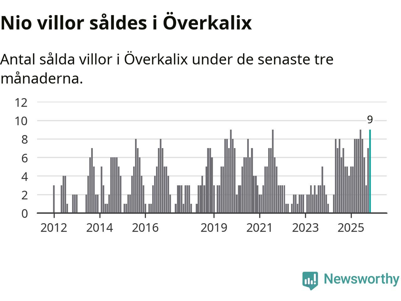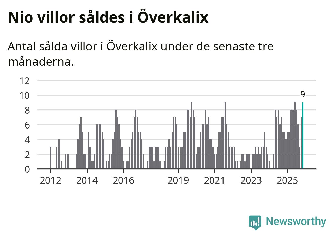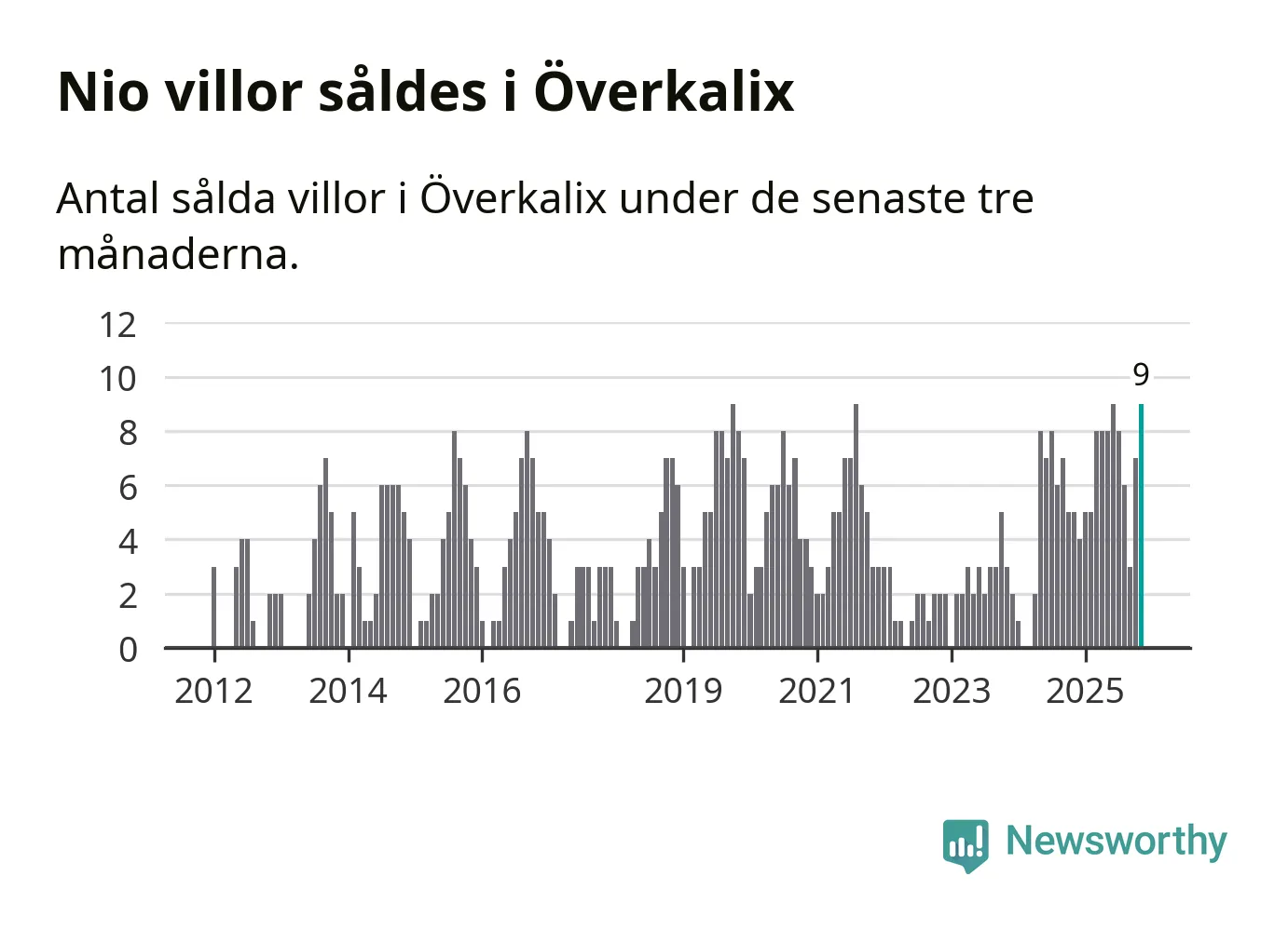 Mellan september och november gjordes sammanlagt nio affärer med villor i Överkalix kommun. Det kan jämföras med fem vid motsvarande tid i fjol.
