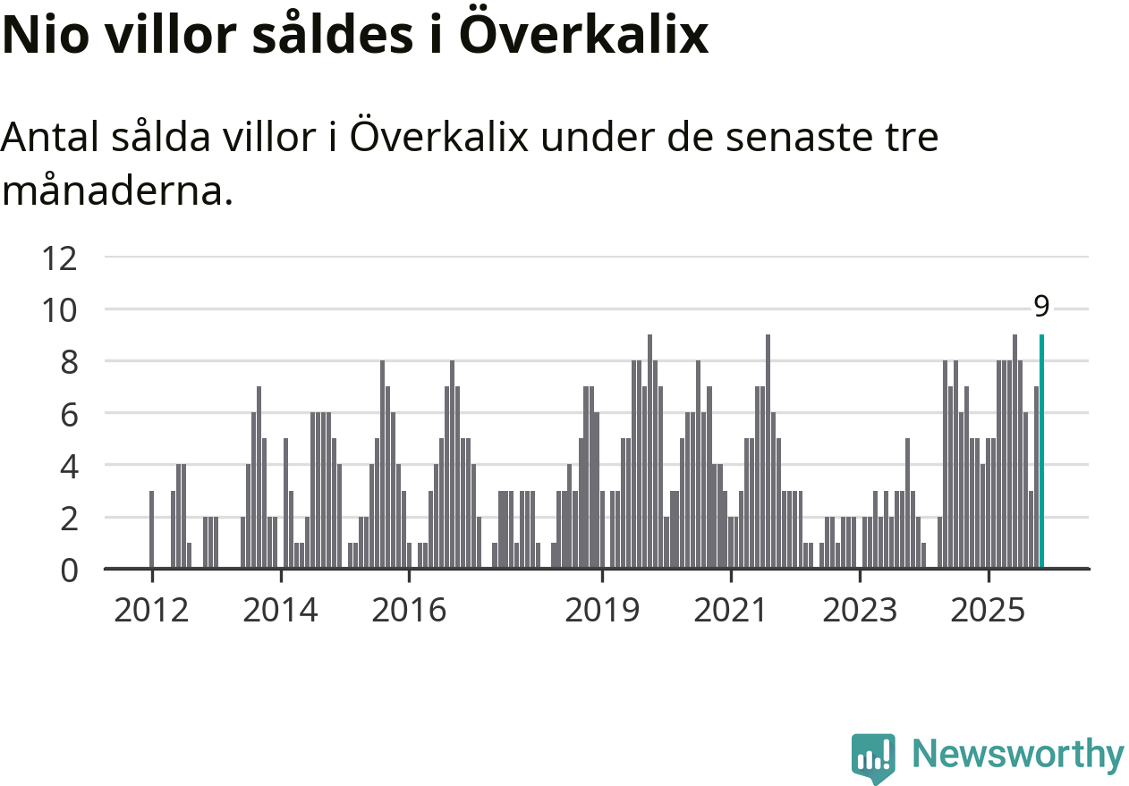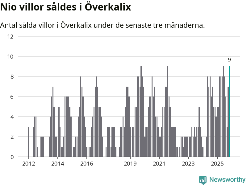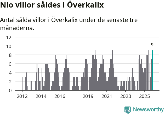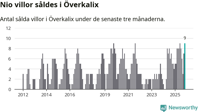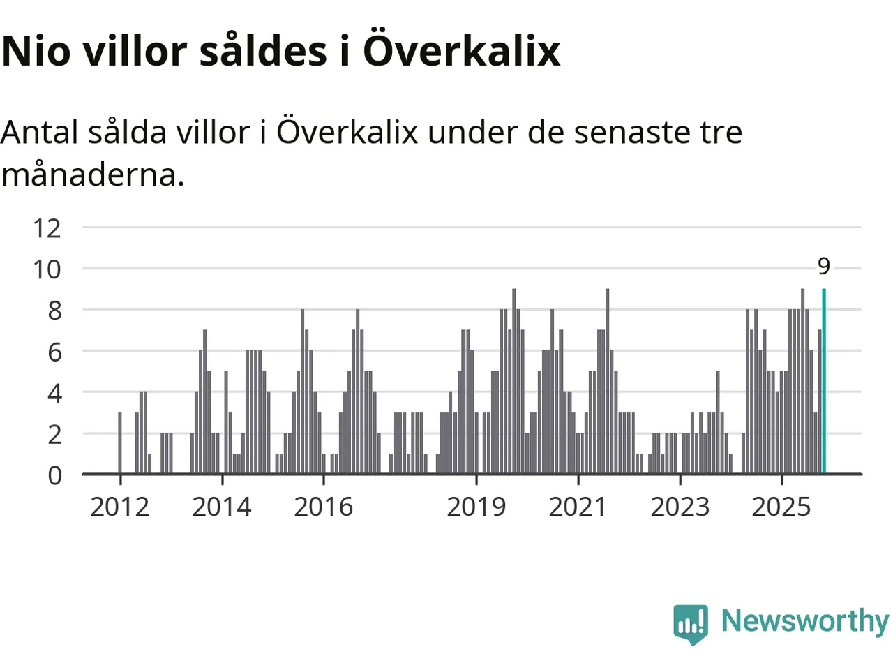Mellan september och november gjordes sammanlagt nio affärer med villor i Överkalix kommun. Det kan jämföras med fem vid motsvarande tid i fjol.