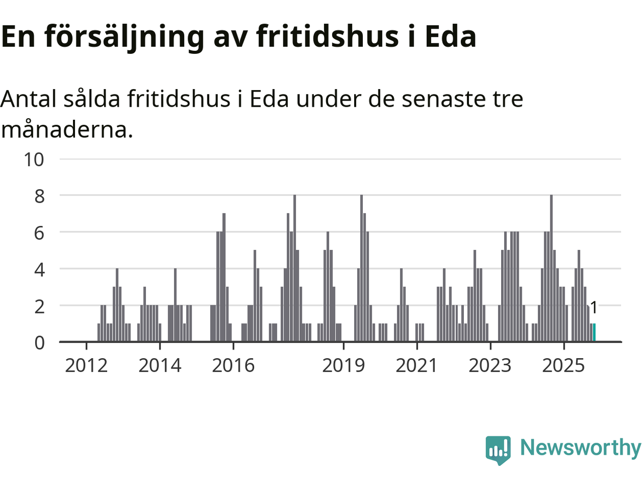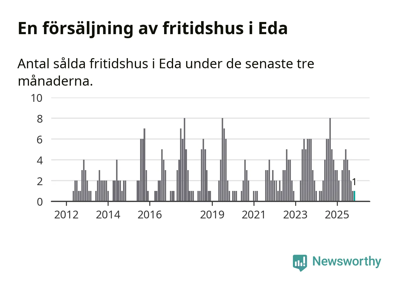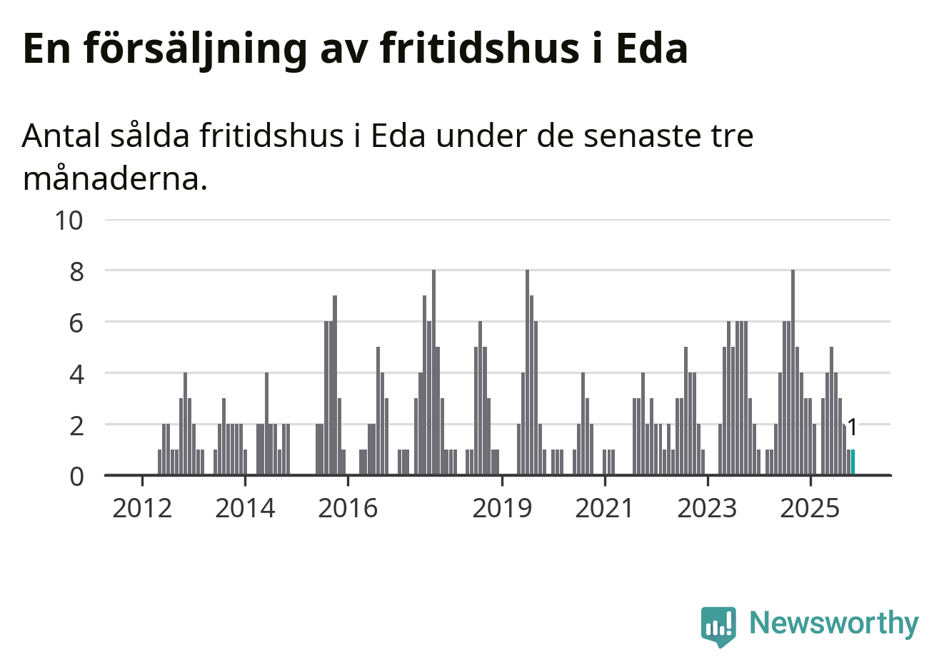 Mellan september och november gjordes sammanlagt en affär med fritidshus i Eda kommun. Det kan jämföras med fyra vid motsvarande tid i fjol.