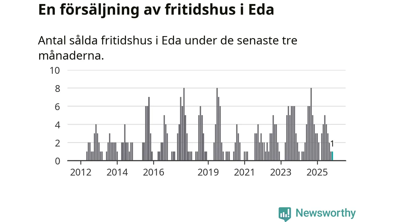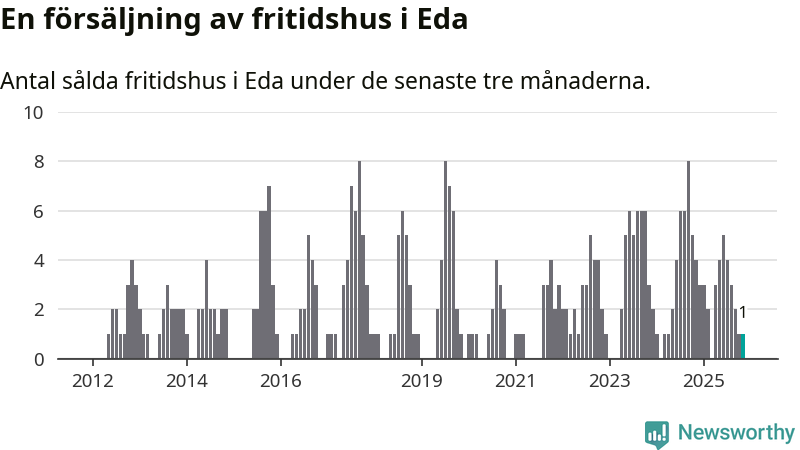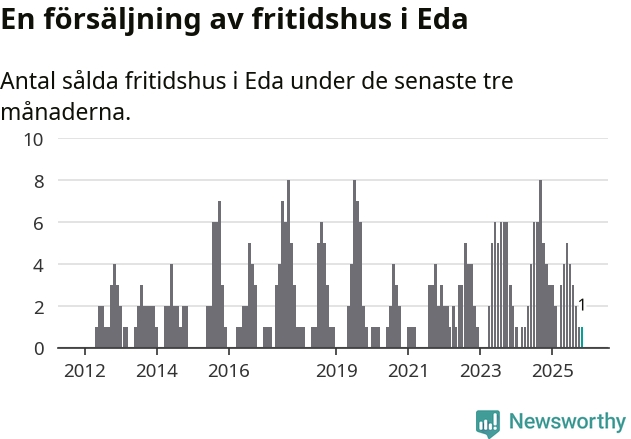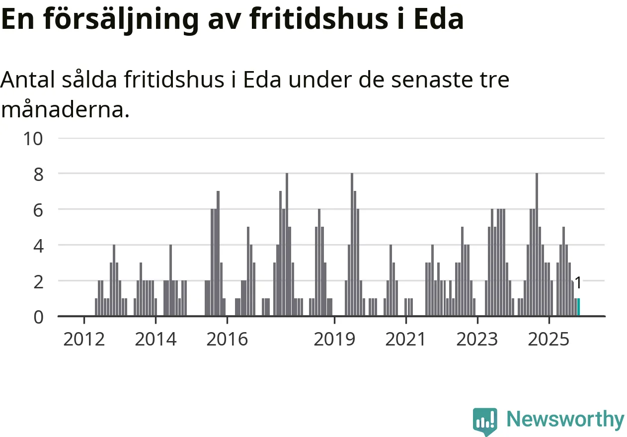 Mellan september och november gjordes sammanlagt en affär med fritidshus i Eda kommun. Det kan jämföras med fyra vid motsvarande tid i fjol.