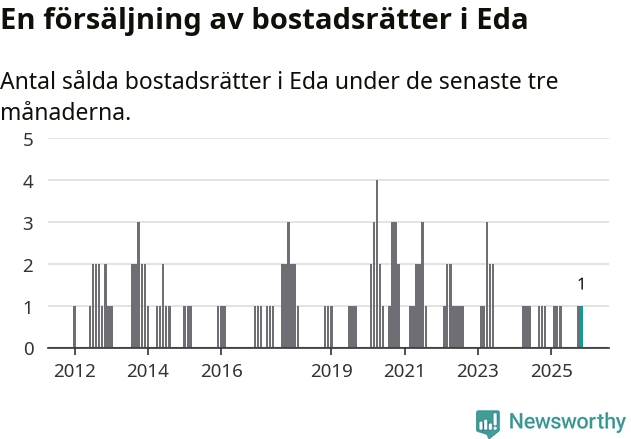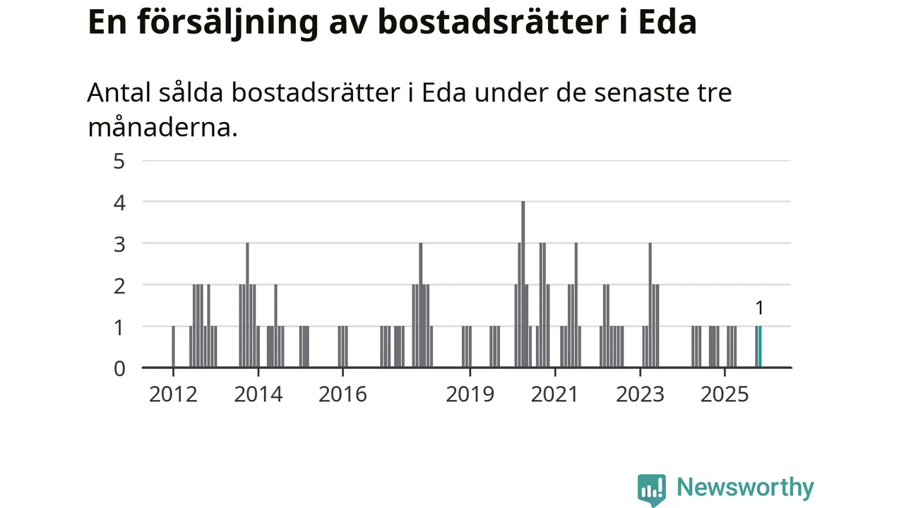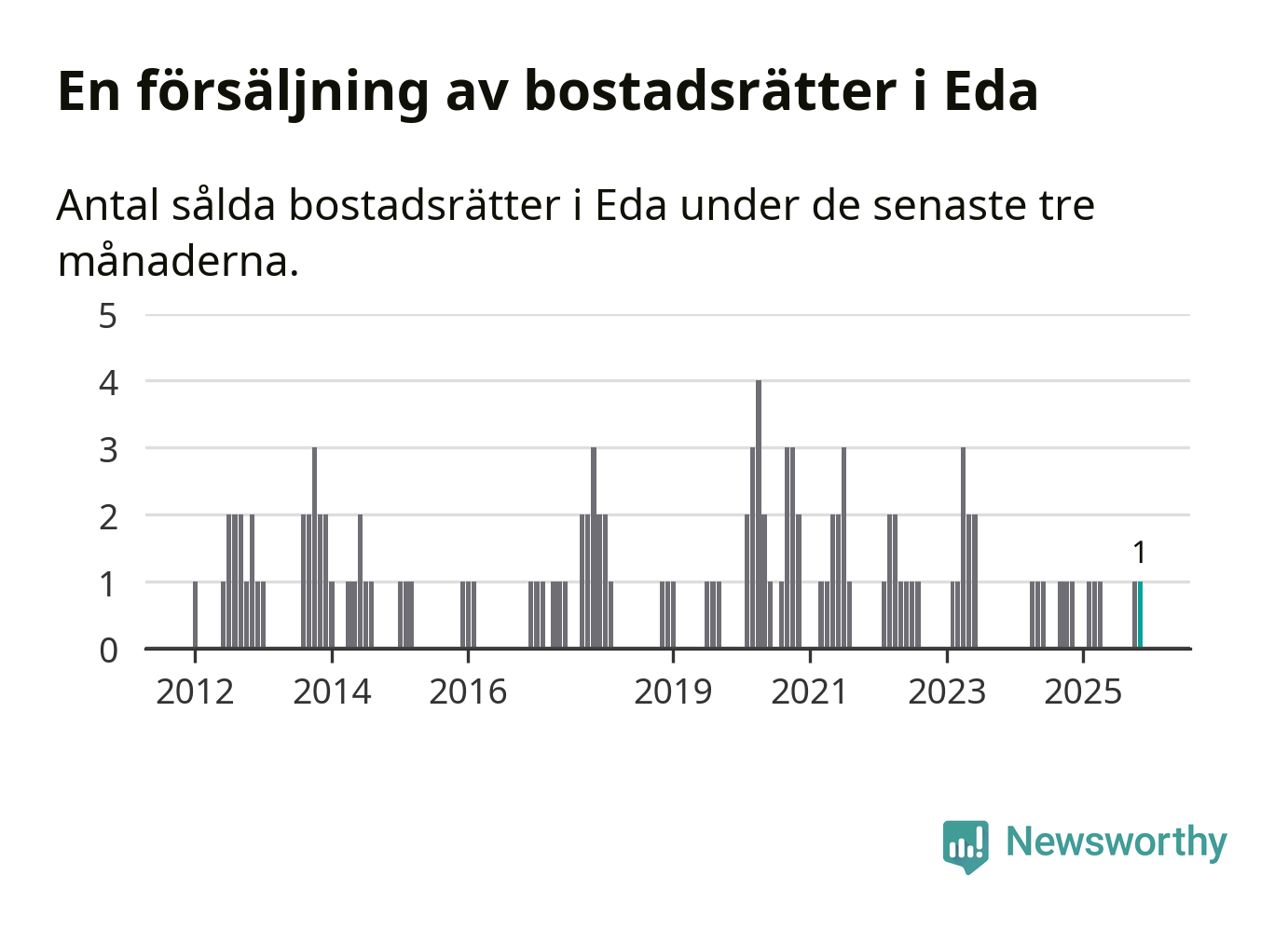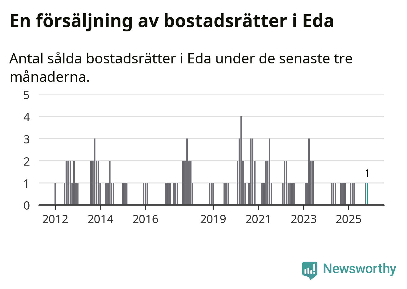 Mellan september och november gjordes sammanlagt en affär med bostadsrätter i Eda kommun. Det är lika många affärer som vid motsvarande tid i fjol.
