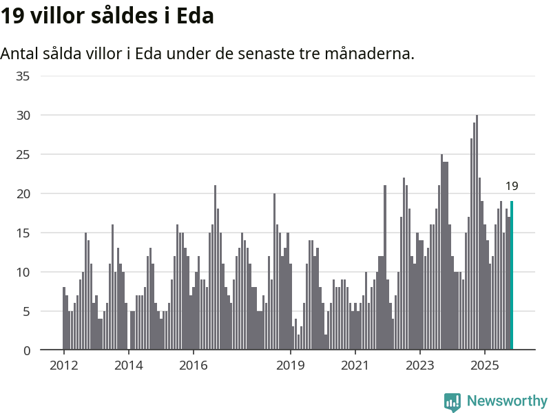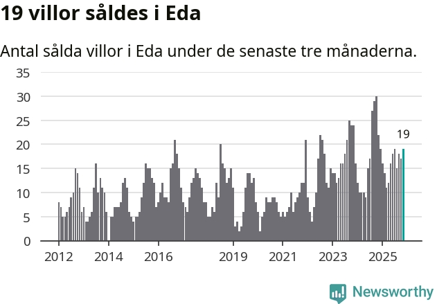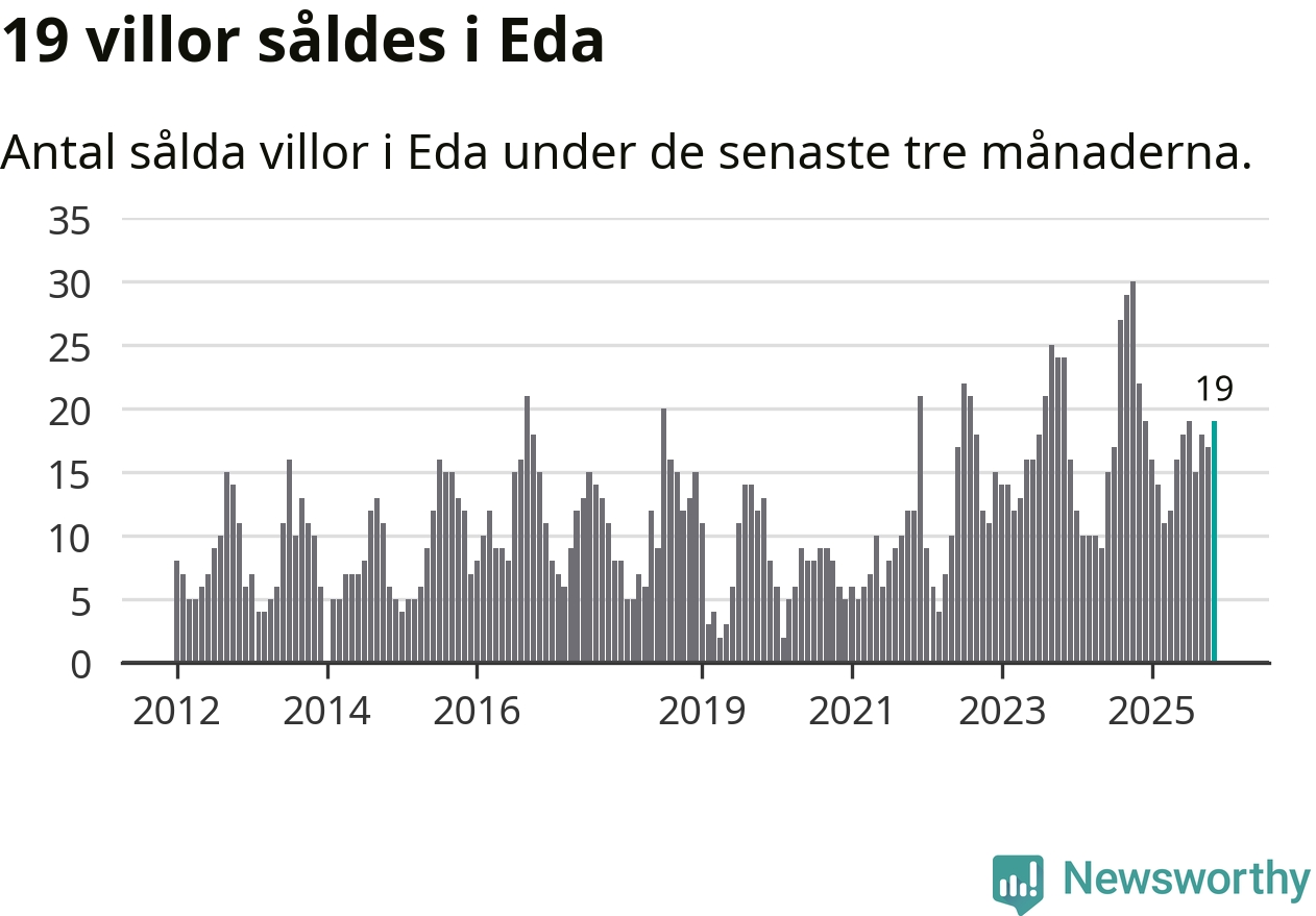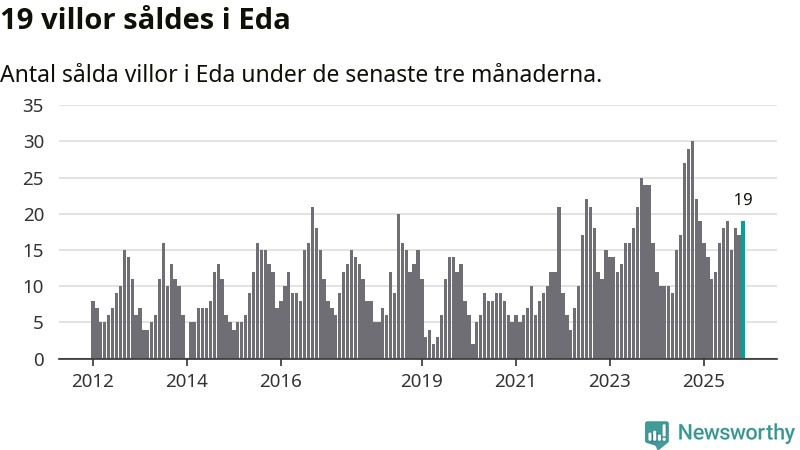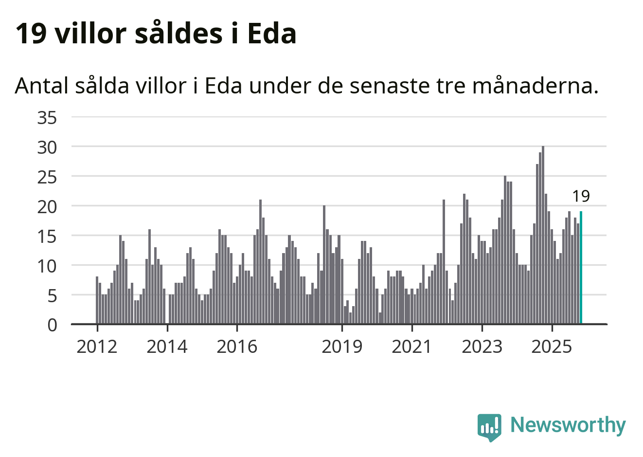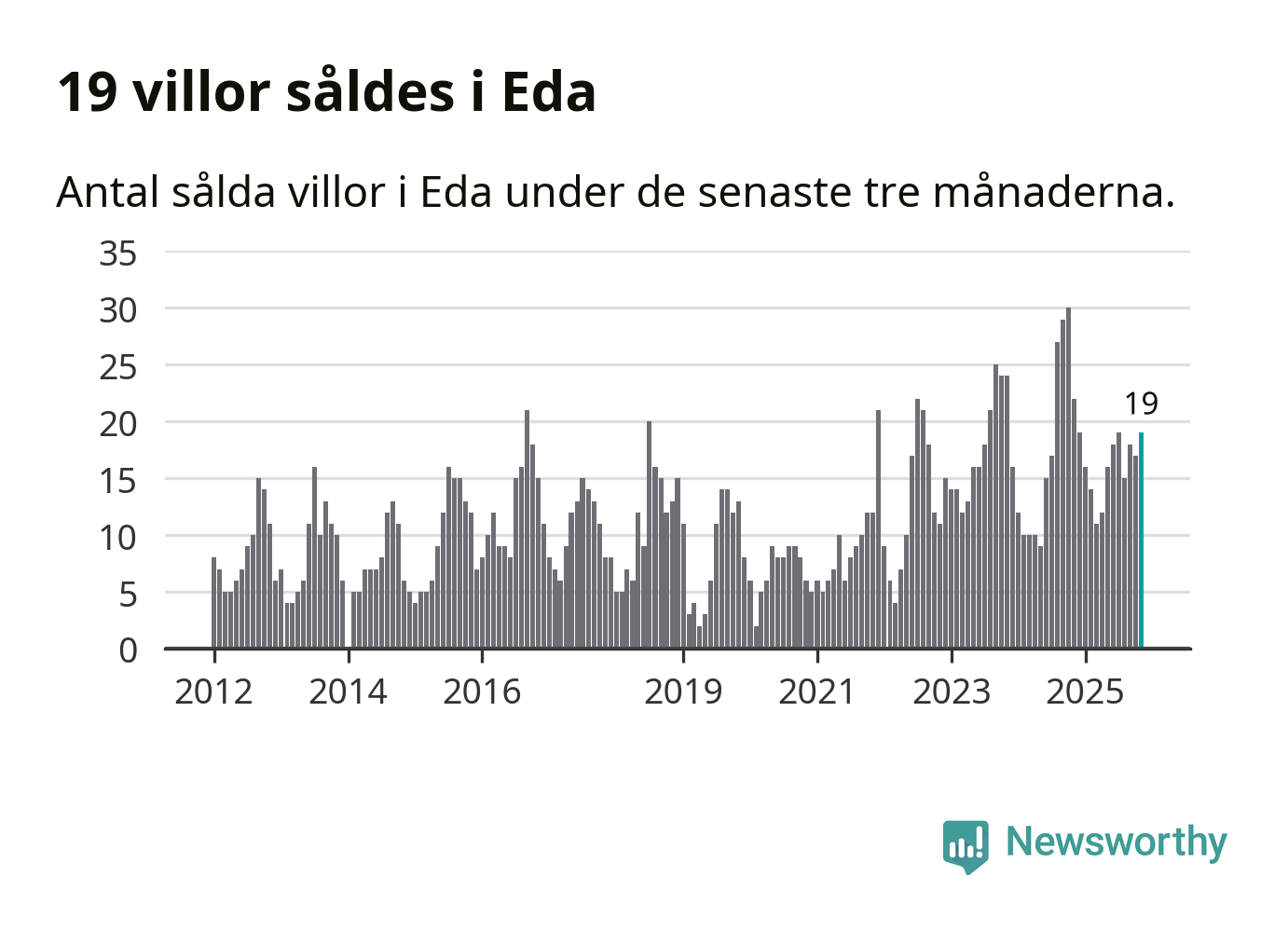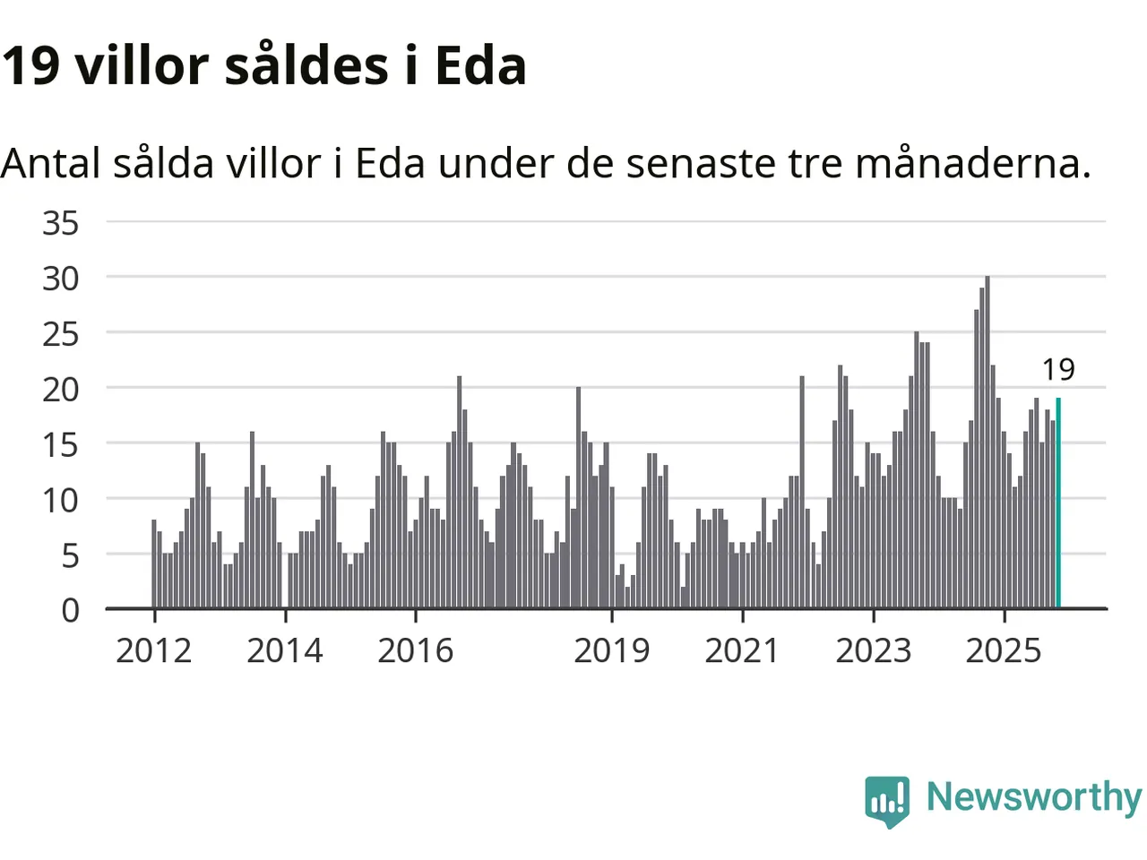 Mellan september och november gjordes sammanlagt 19 affärer med villor i Eda kommun. Det kan jämföras med 22 vid motsvarande tid i fjol.