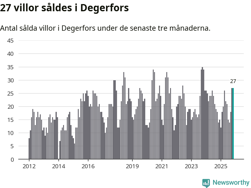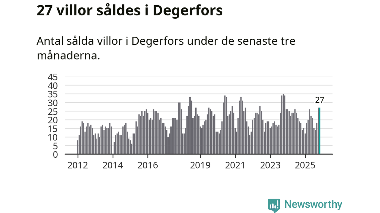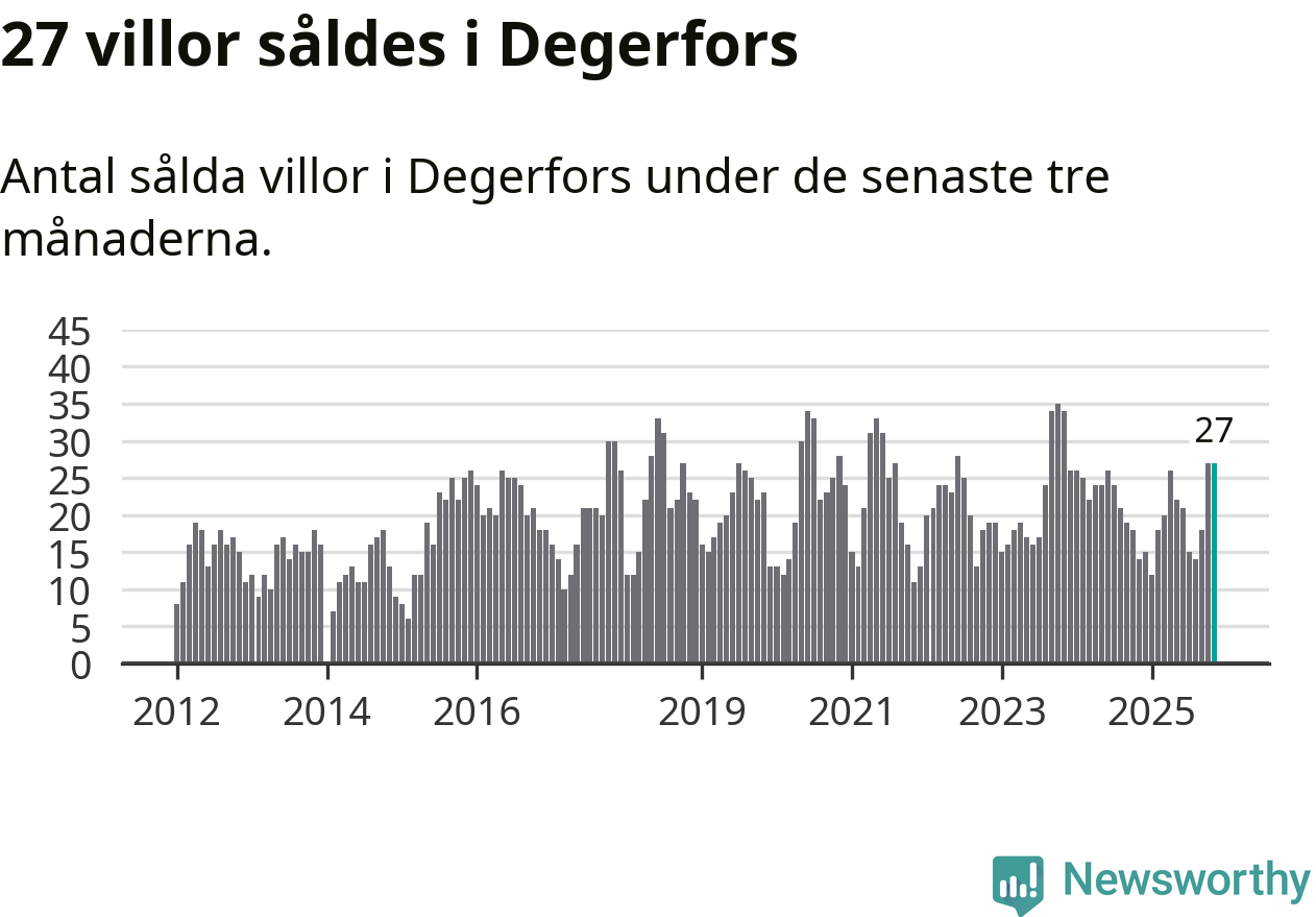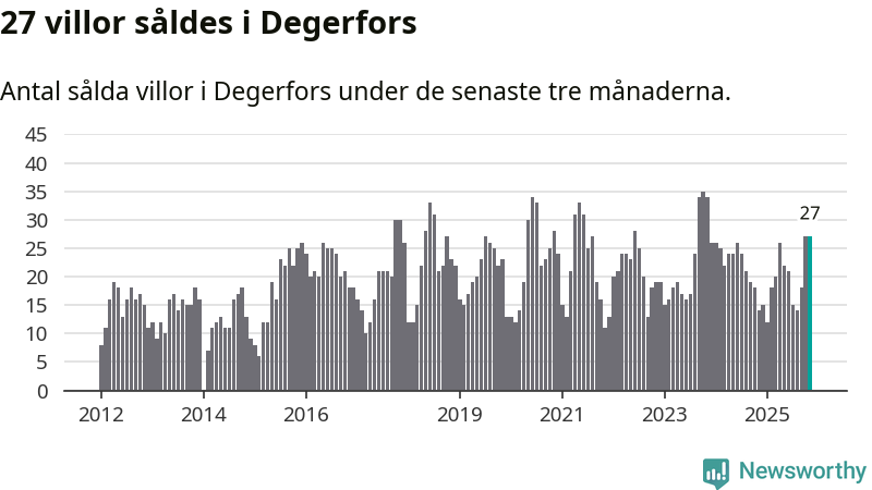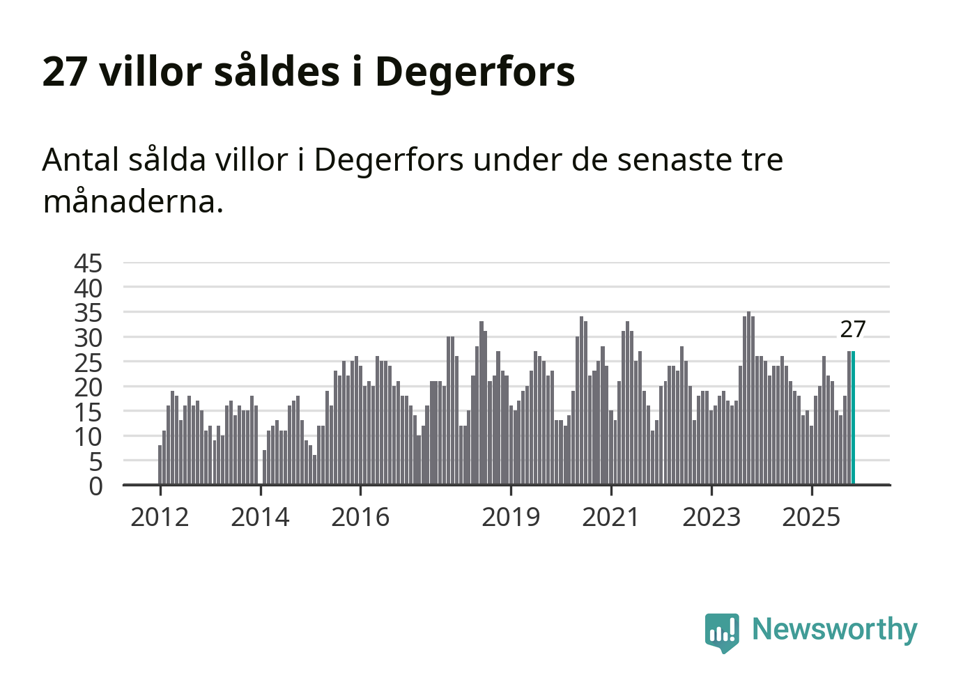 Mellan september och november gjordes sammanlagt 27 affärer med villor i Degerfors kommun. Det kan jämföras med 14 vid motsvarande tid i fjol.