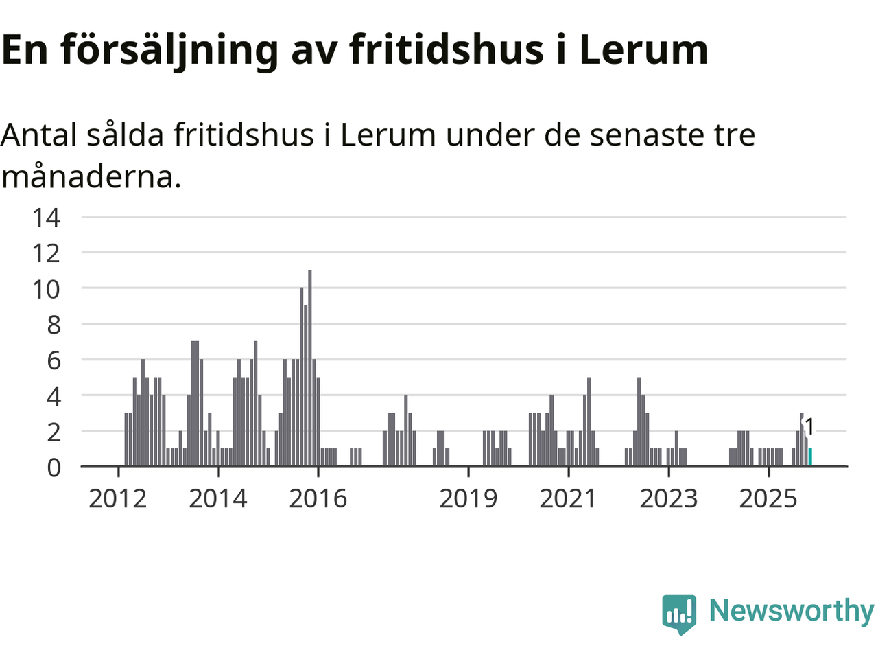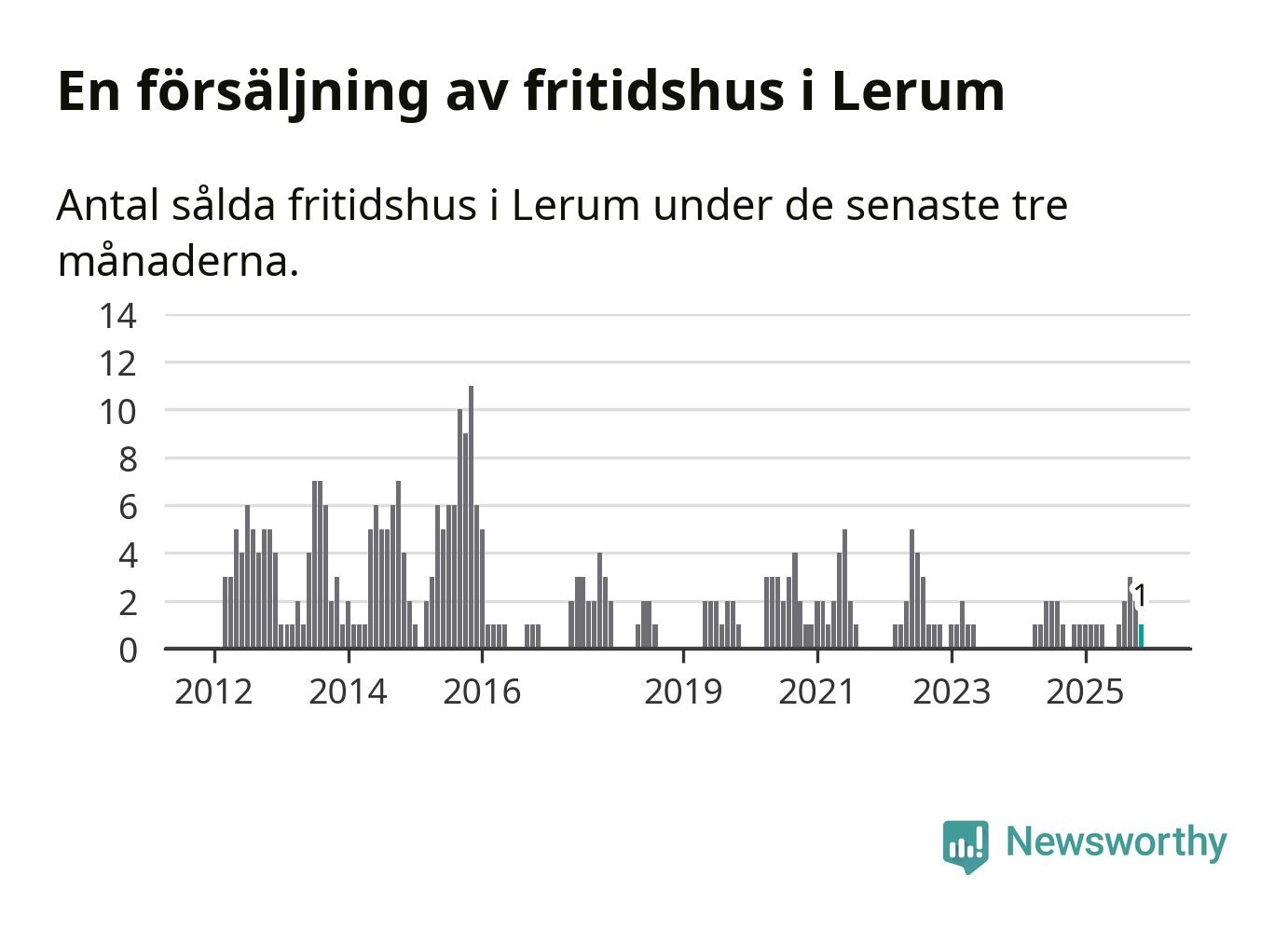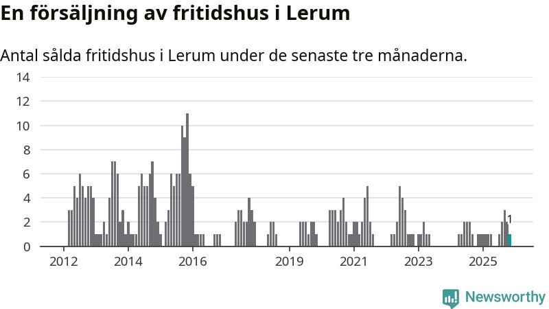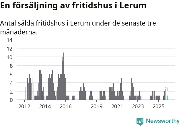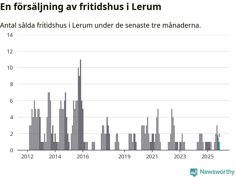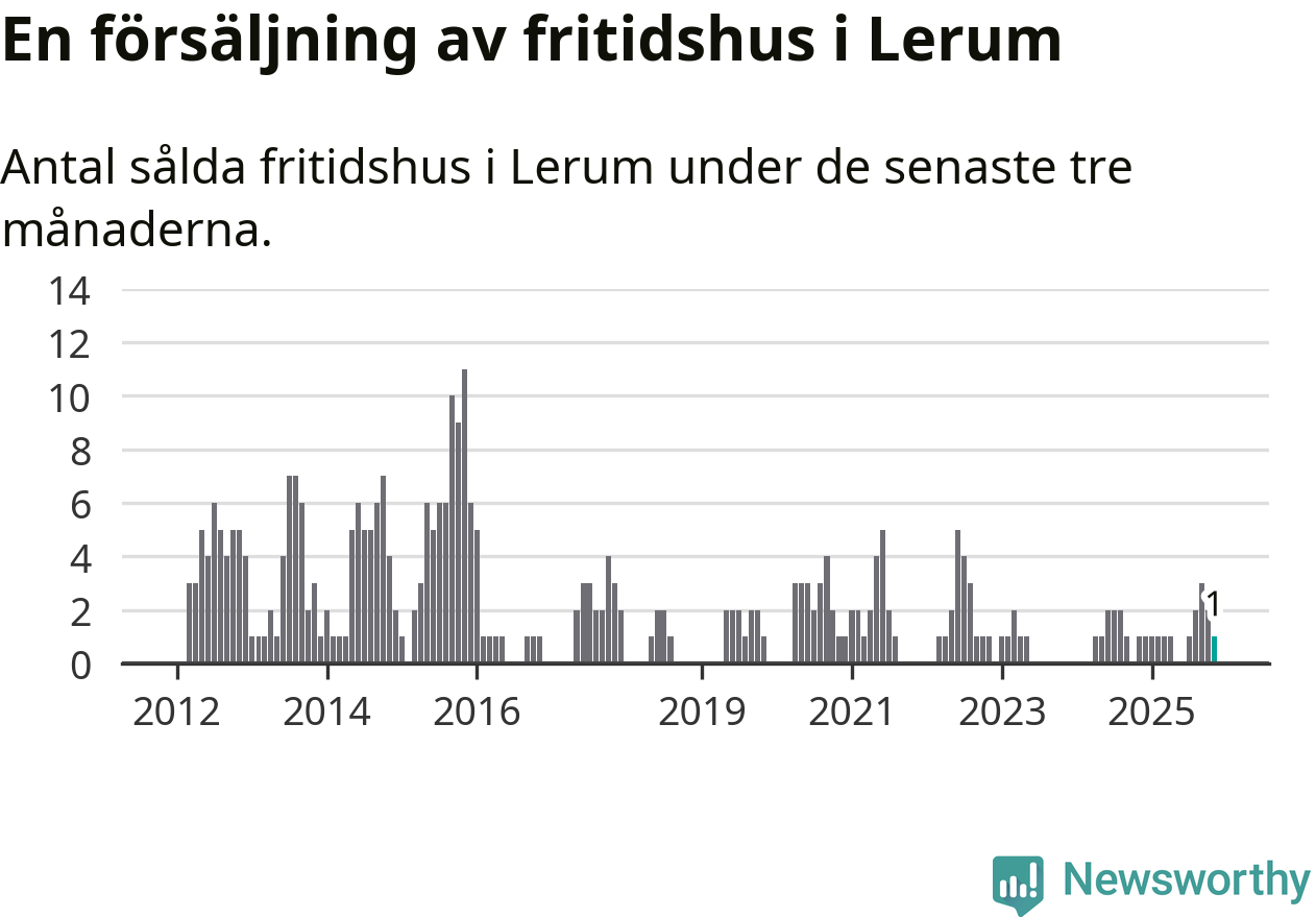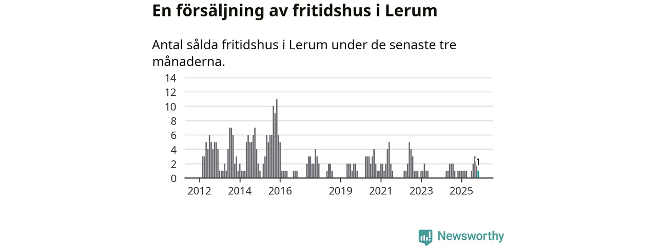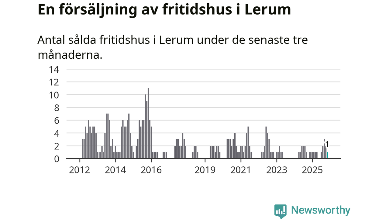 Mellan september och november gjordes sammanlagt en affär med fritidshus i Lerums kommun. Det är lika många affärer som vid motsvarande tid i fjol.