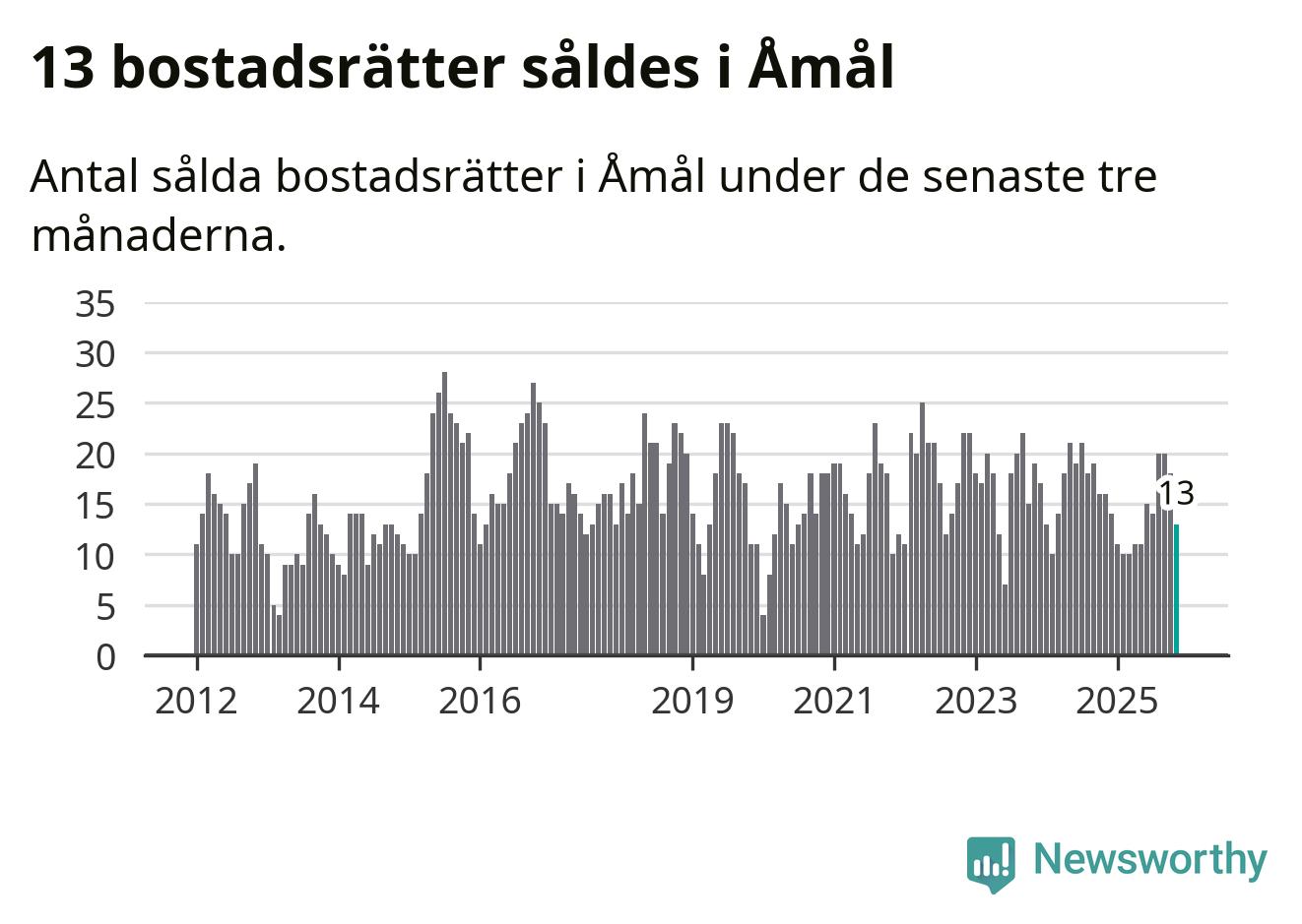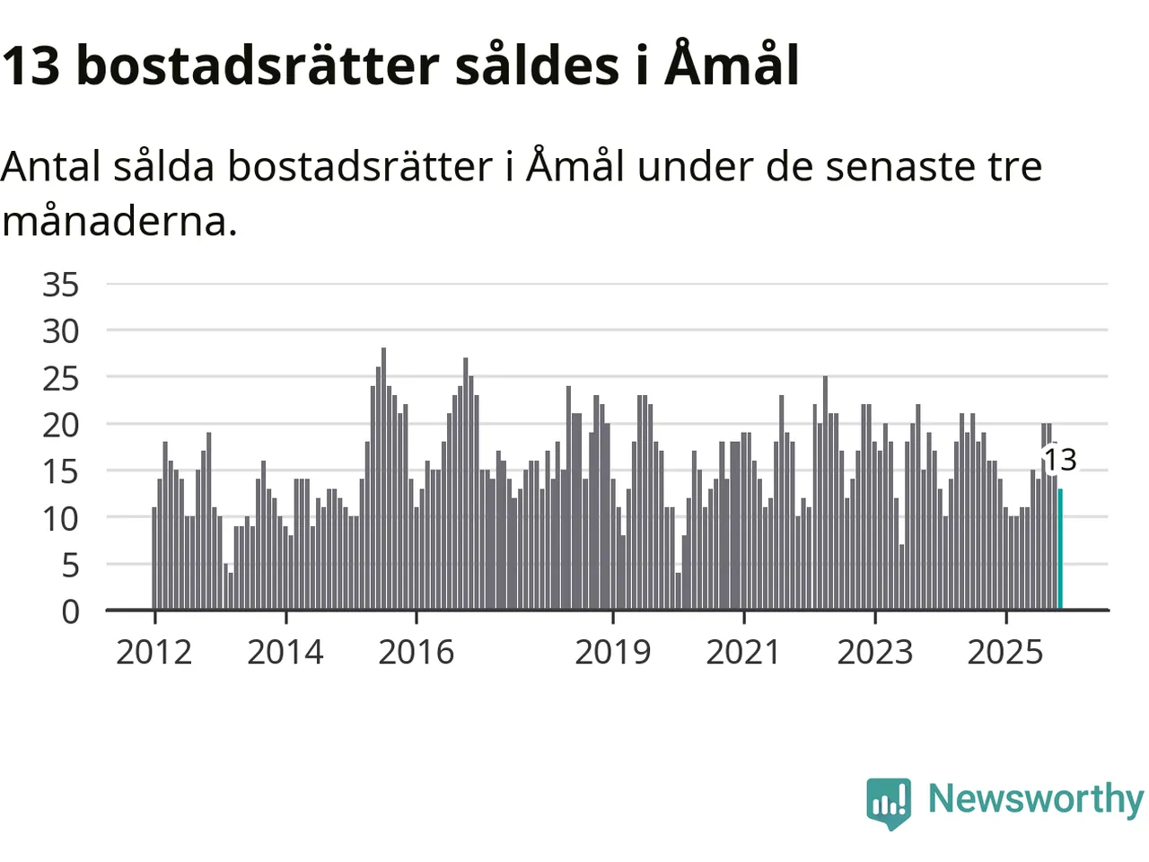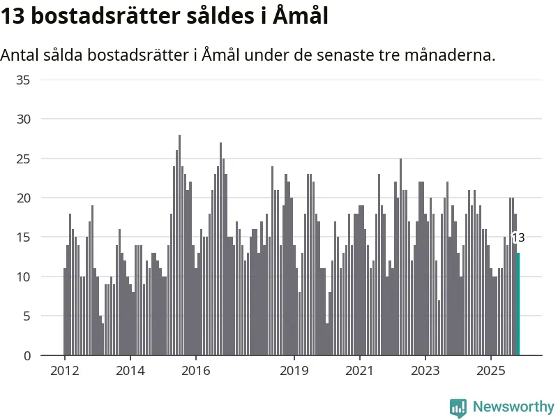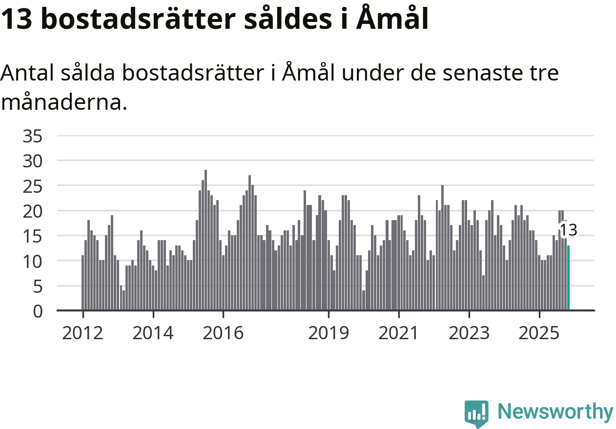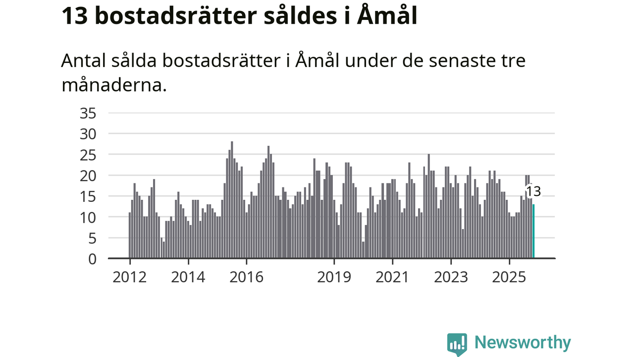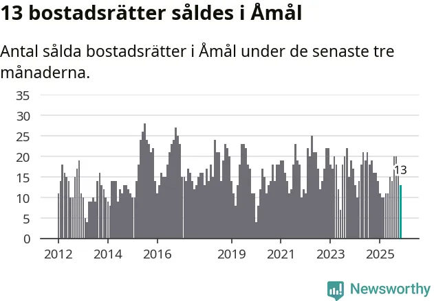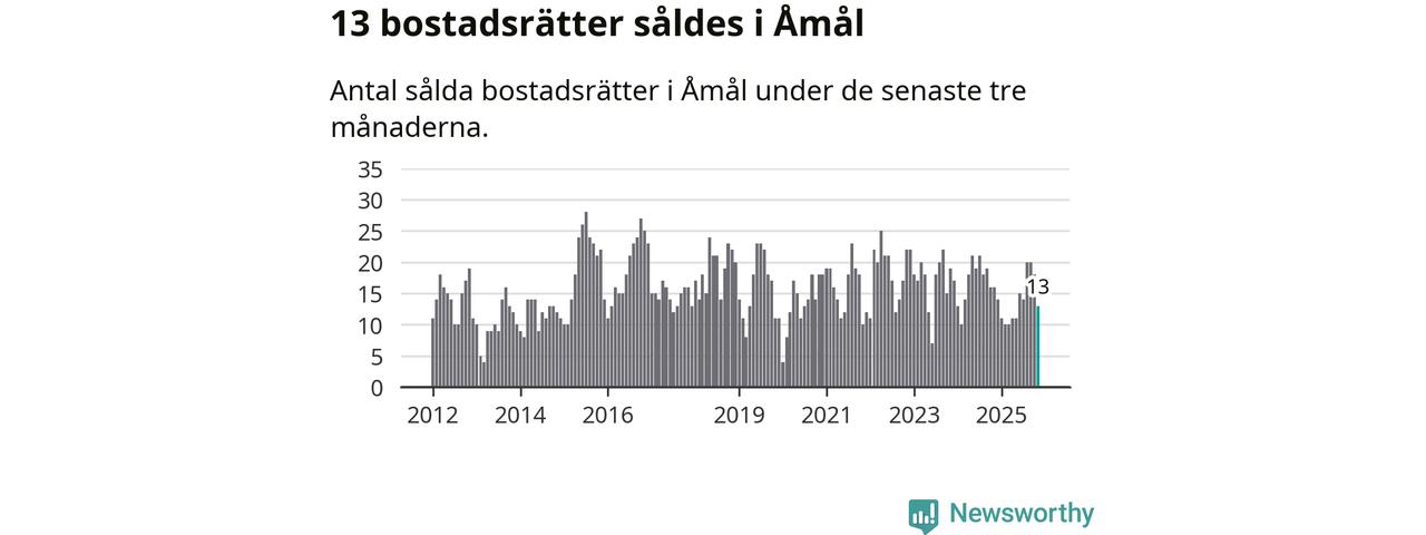 Mellan september och november gjordes sammanlagt 13 affärer med bostadsrätter i Åmåls kommun. Det kan jämföras med 16 vid motsvarande tid i fjol.