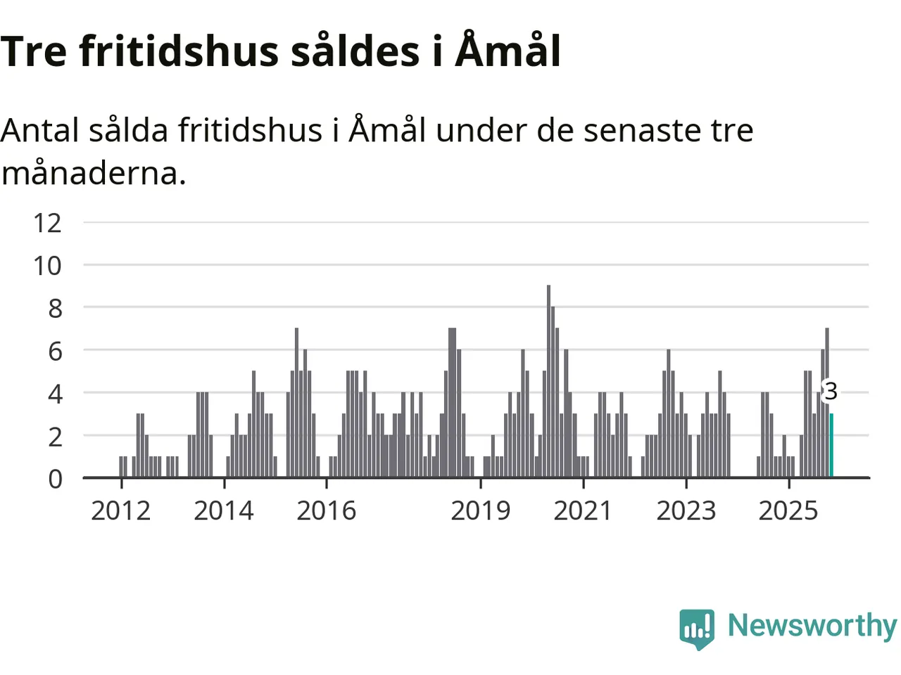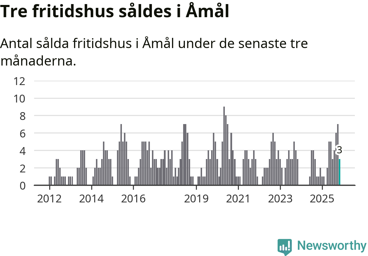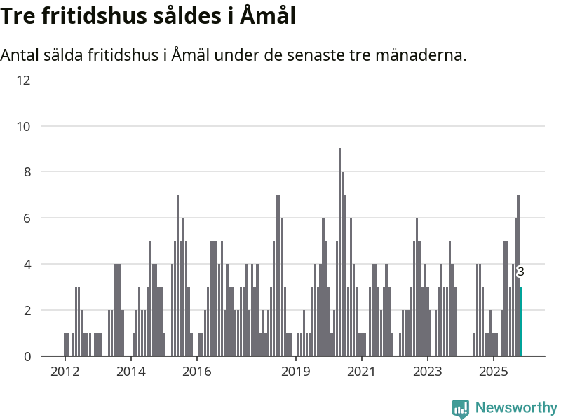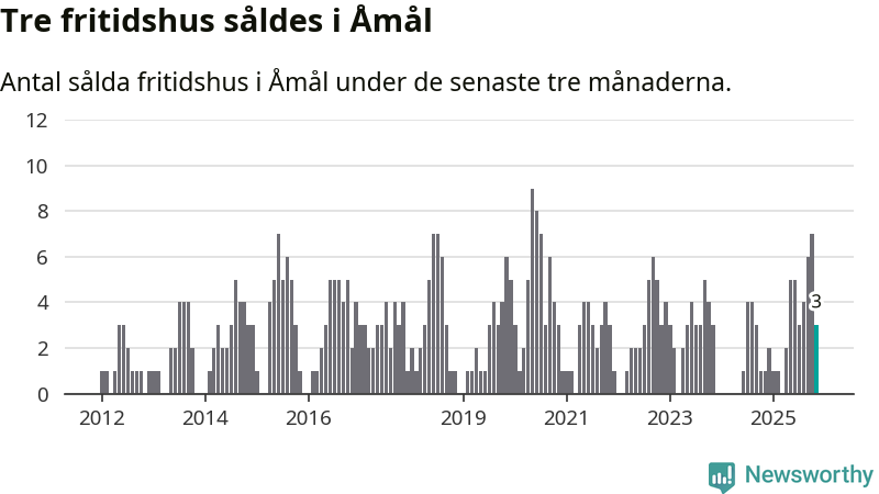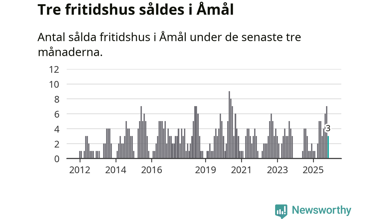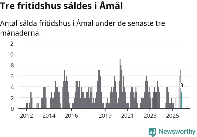 Mellan september och november gjordes sammanlagt tre affärer med fritidshus i Åmåls kommun. Det kan jämföras med ett vid motsvarande tid i fjol.