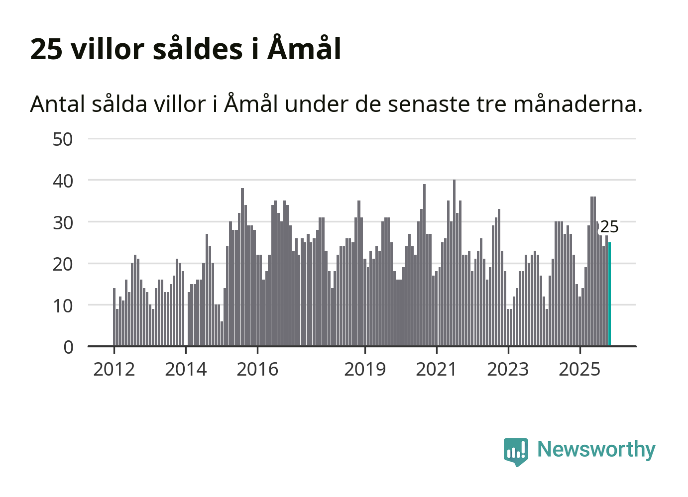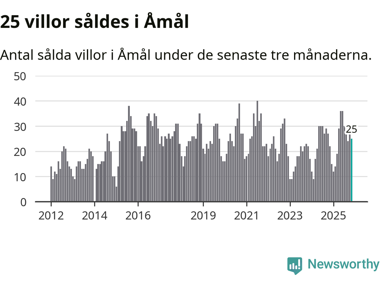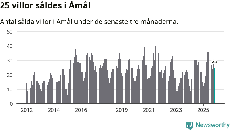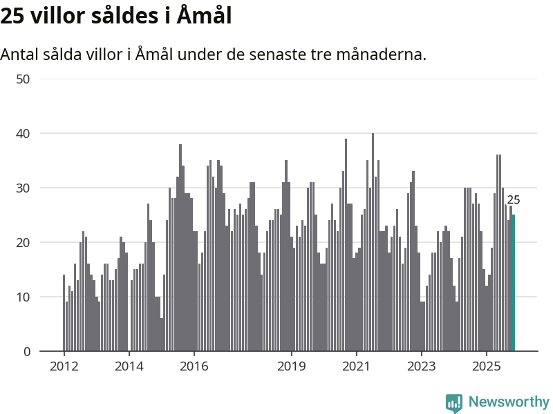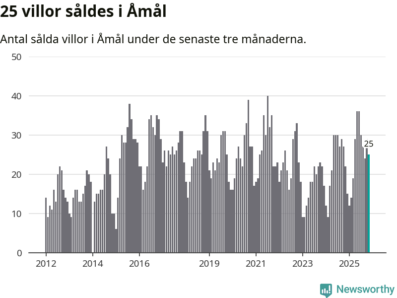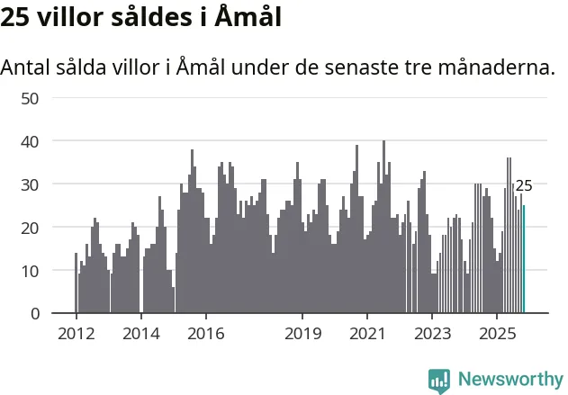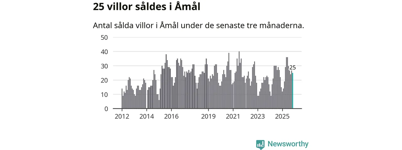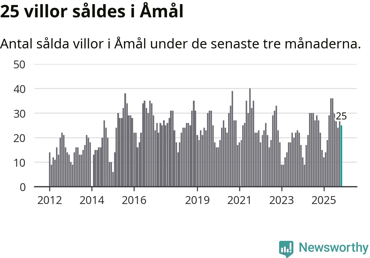 Mellan september och november gjordes sammanlagt 25 affärer med villor i Åmåls kommun. Det kan jämföras med 22 vid motsvarande tid i fjol.