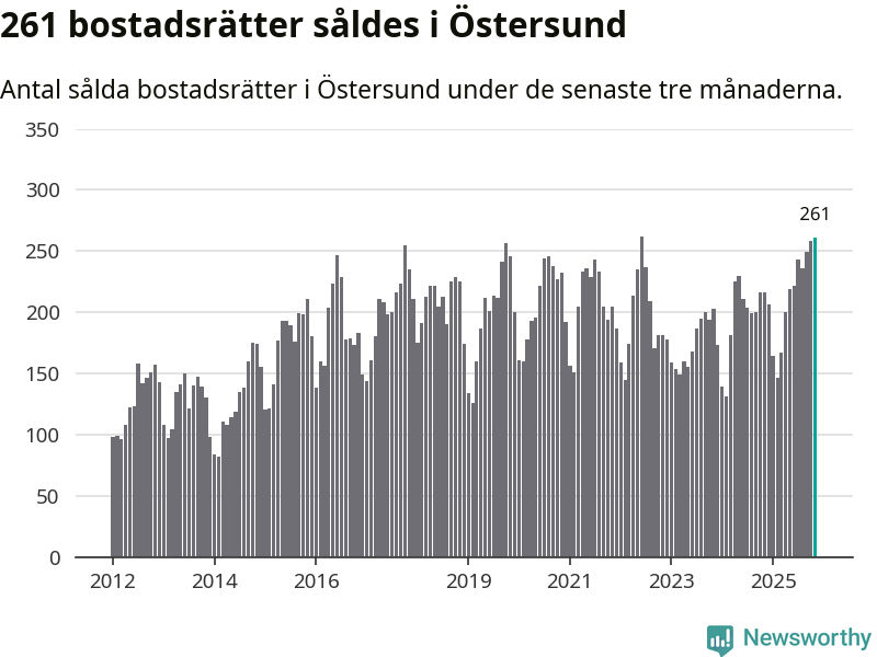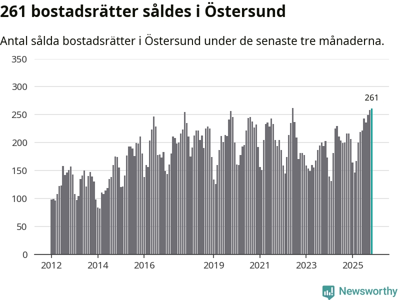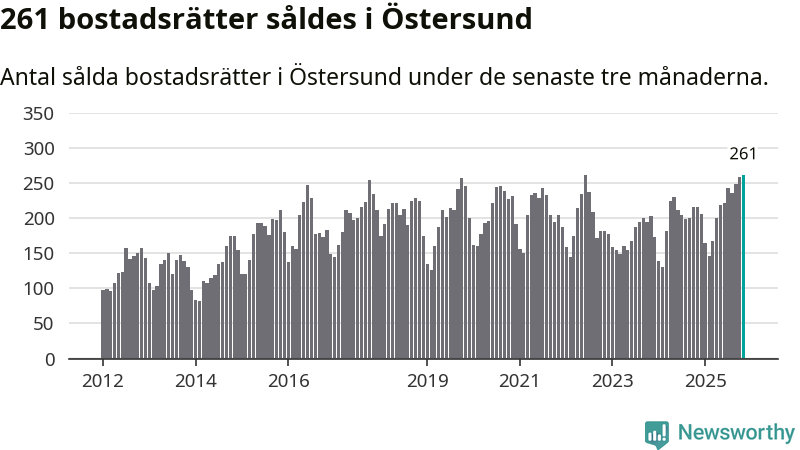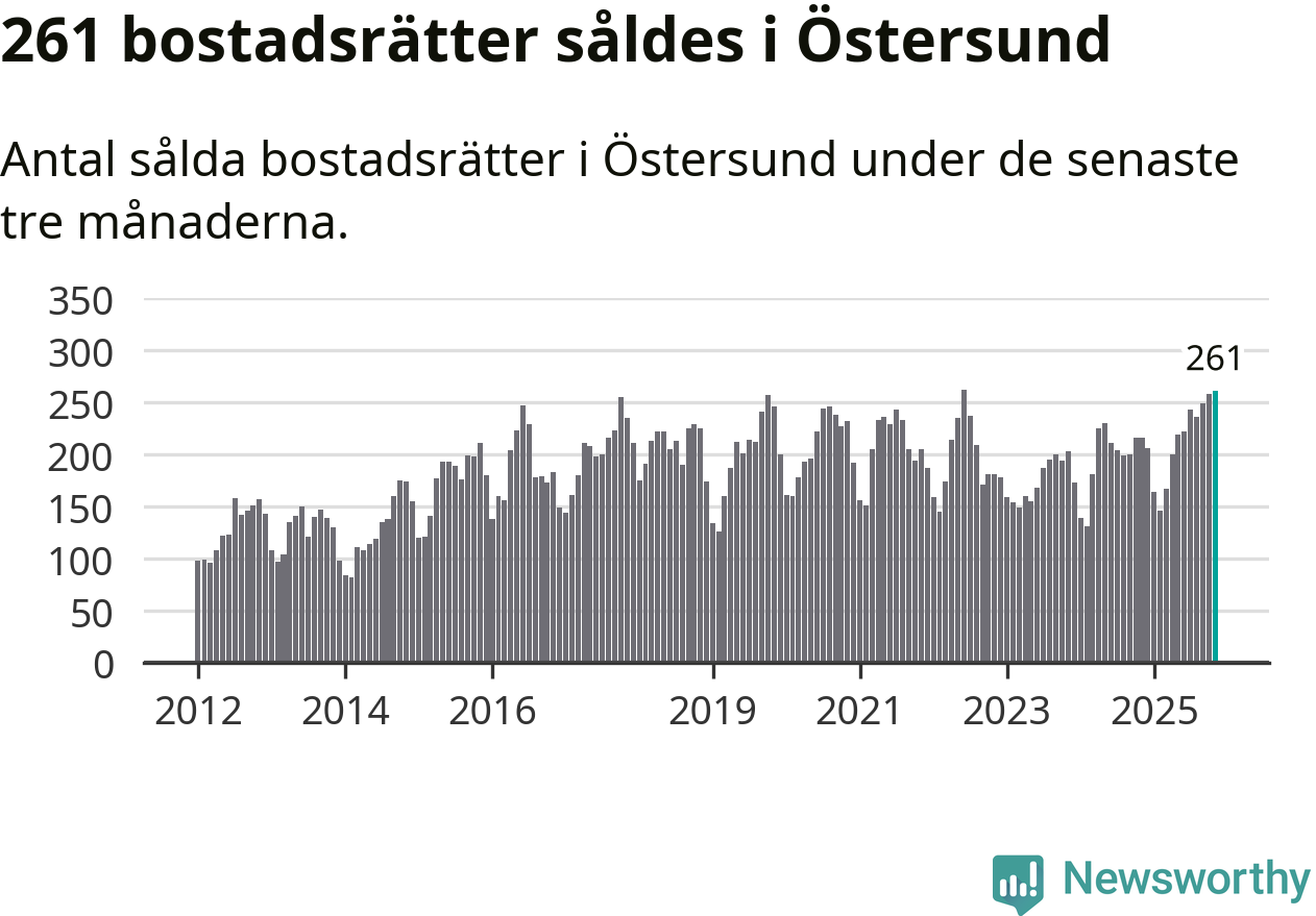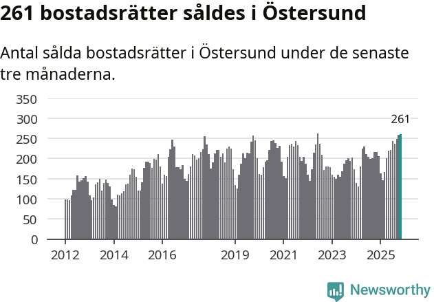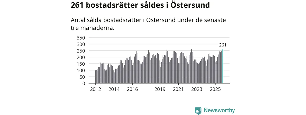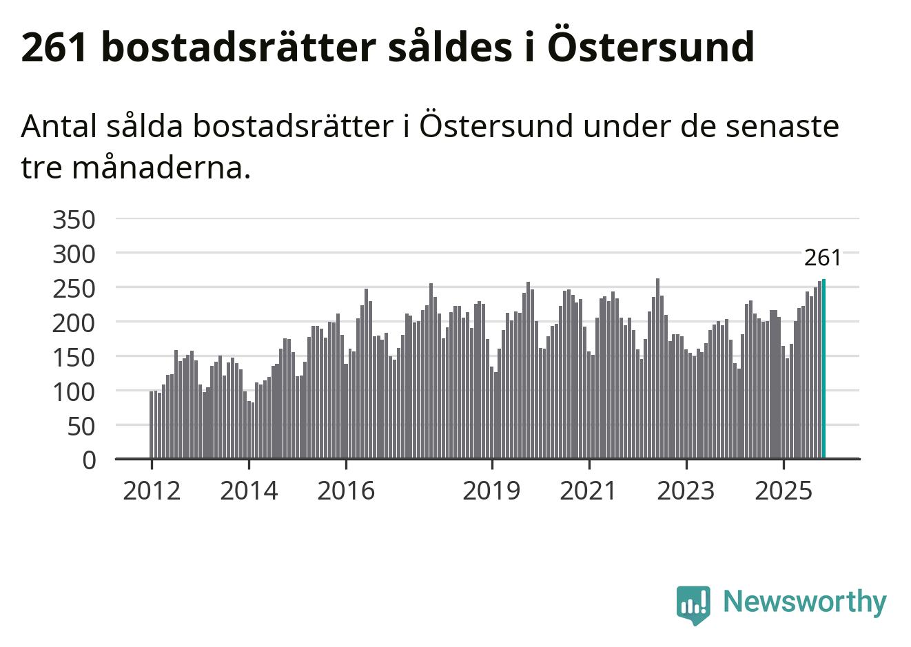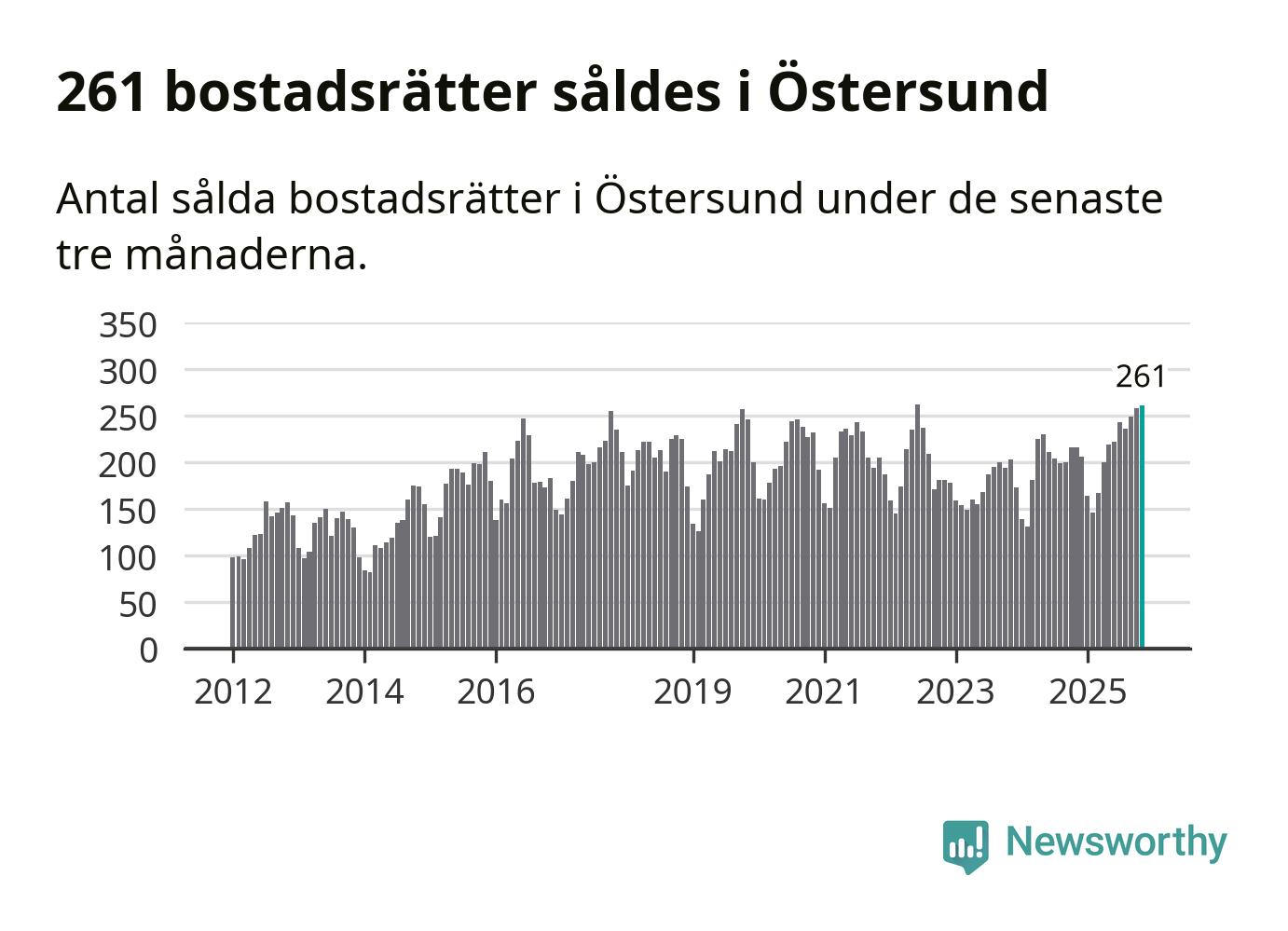 Mellan september och november såldes 261 bostadsrätter i Östersunds kommun. Det är fler än någon tremånadersperiod sedan 2022.