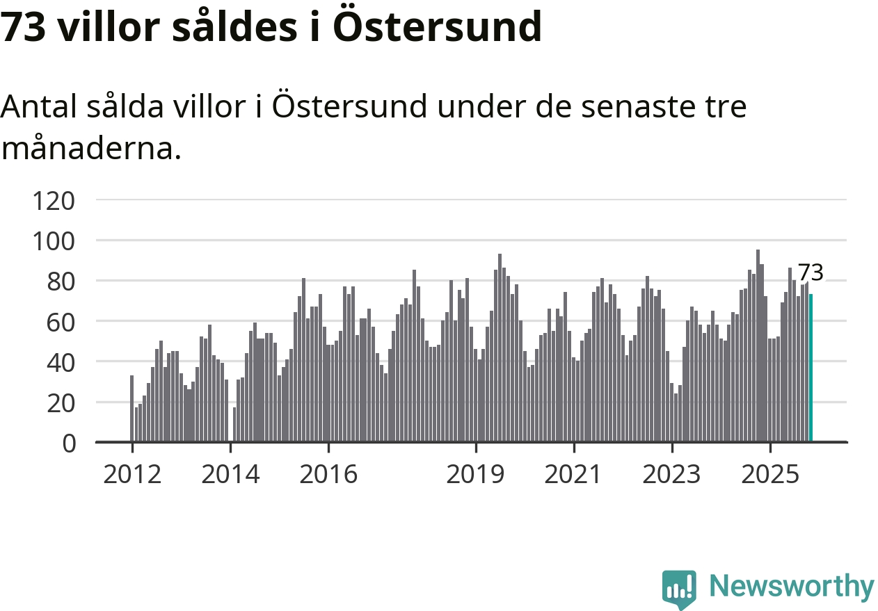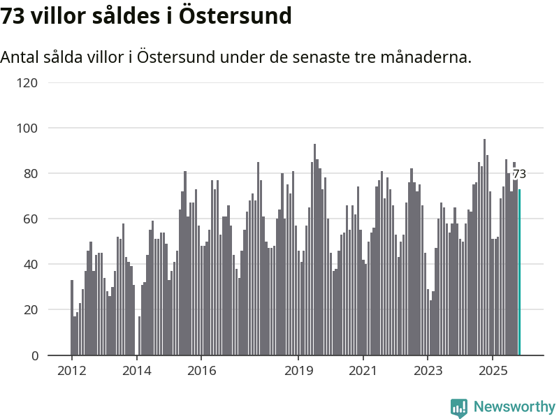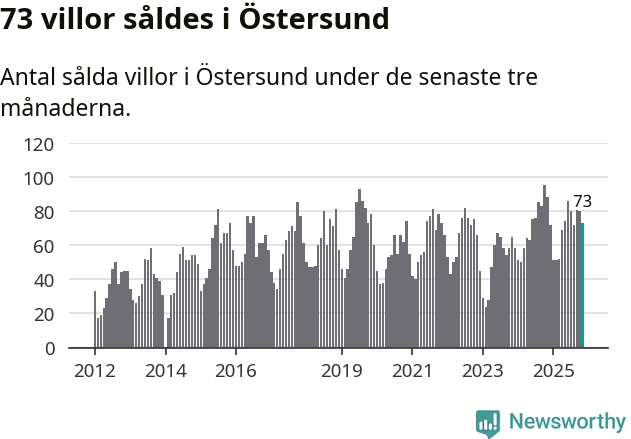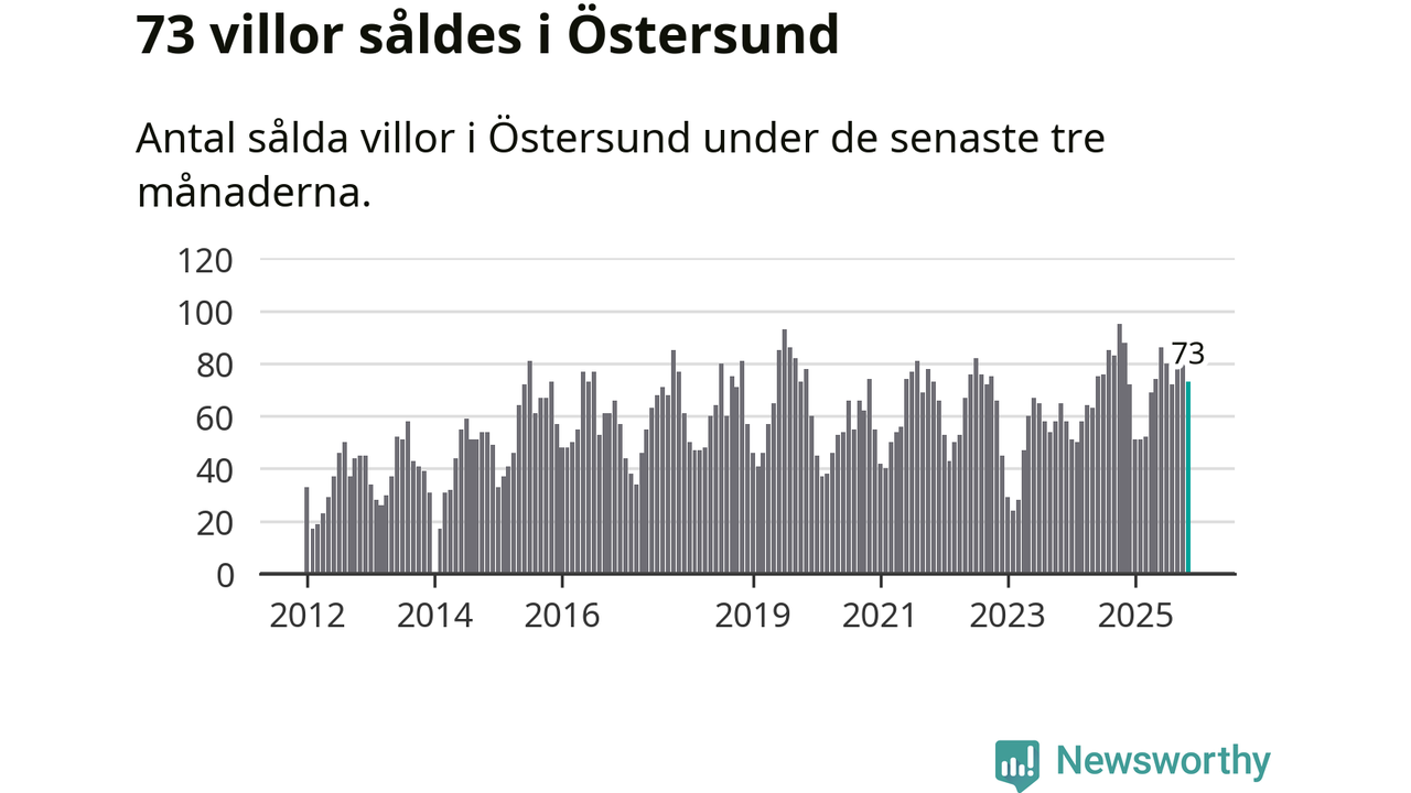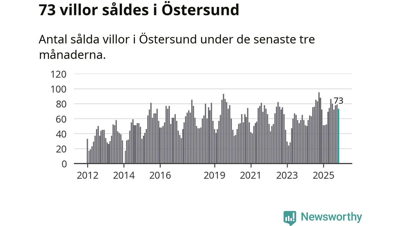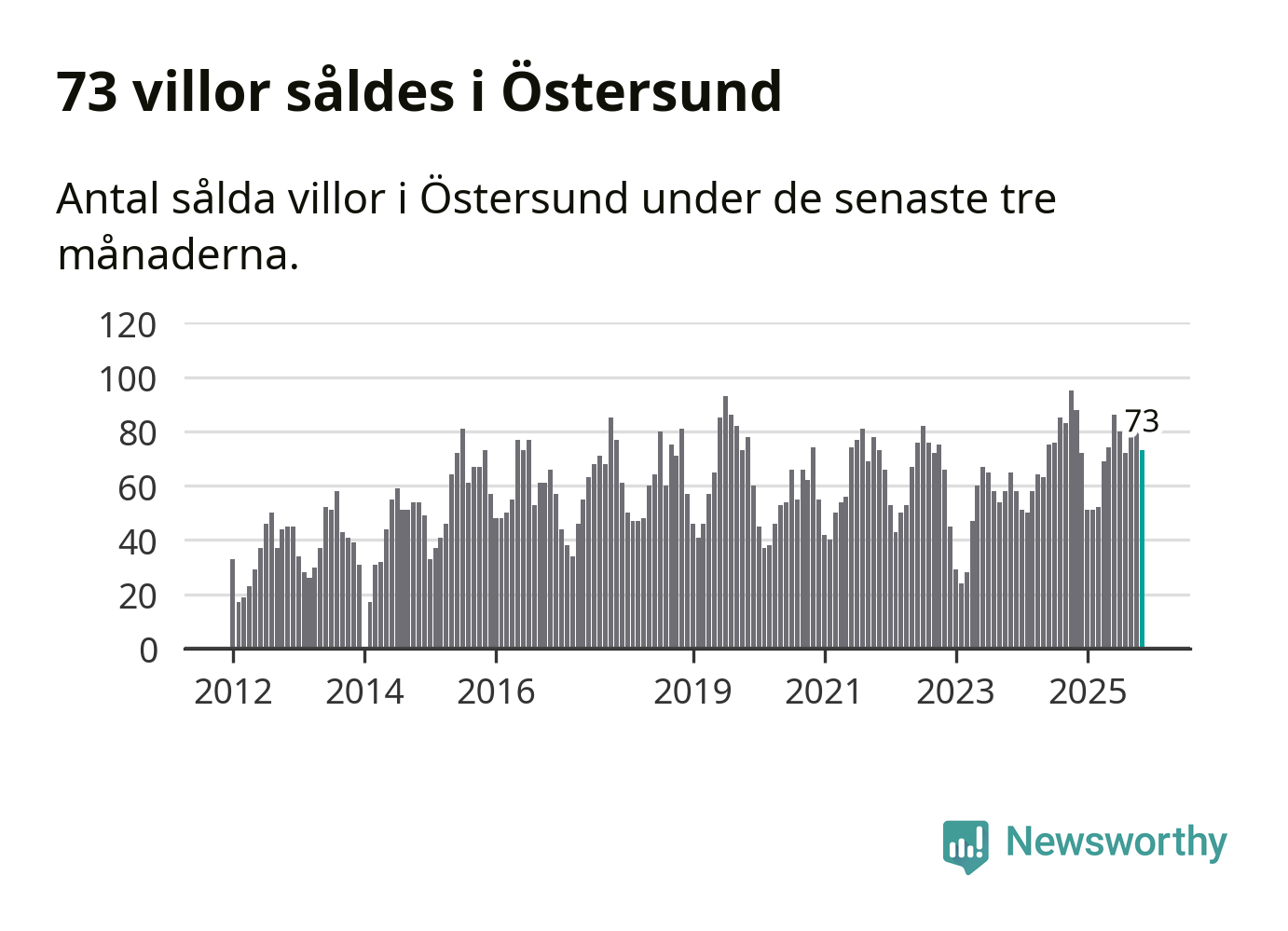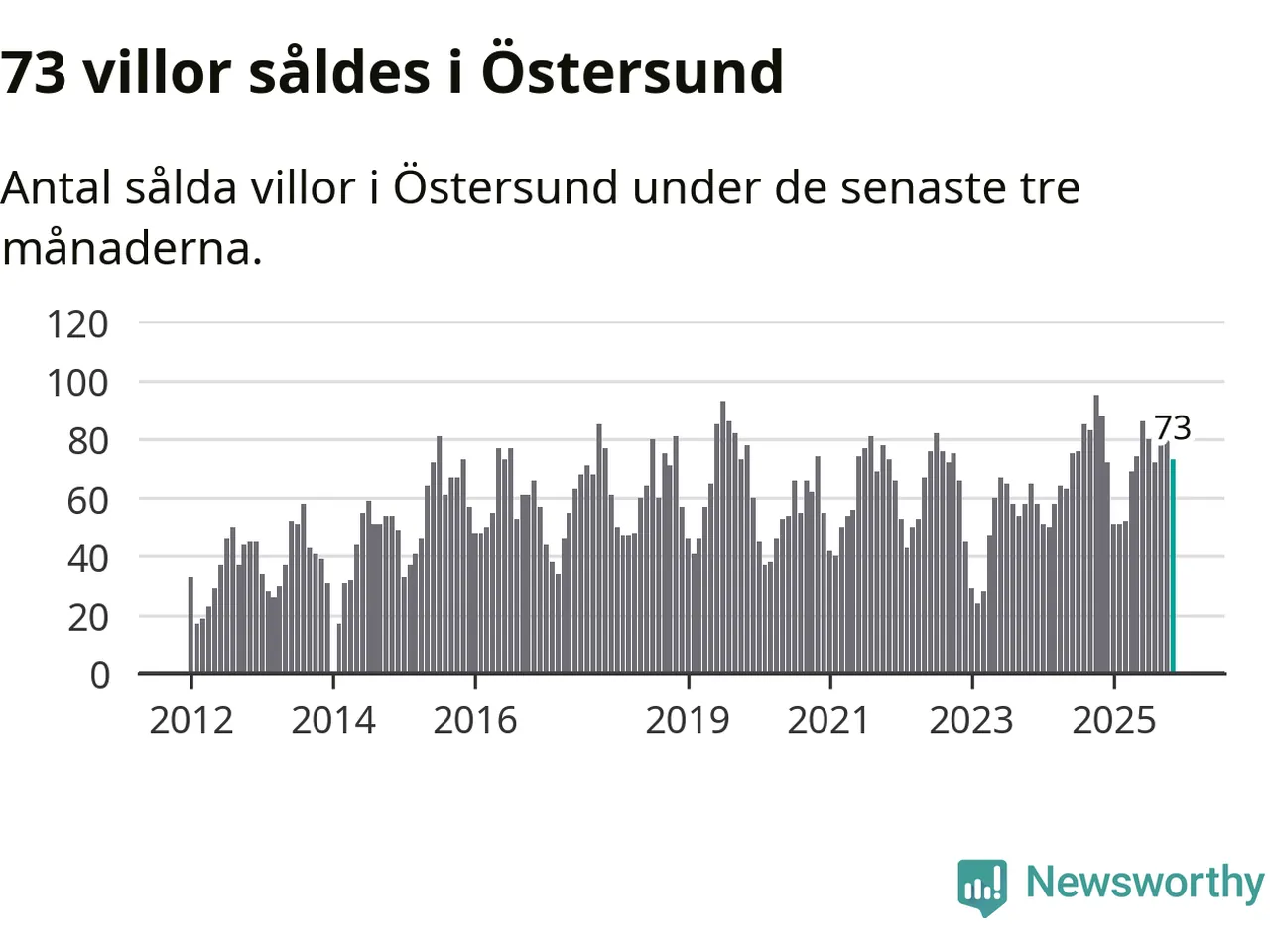 Mellan september och november såldes 73 villor i Östersunds kommun. Det är relativt få sett till aktiviteten på bostadsmarknaden i kommunen under de senaste tolv månaderna, samt det historiska snittet för den här tiden på året.